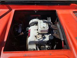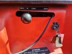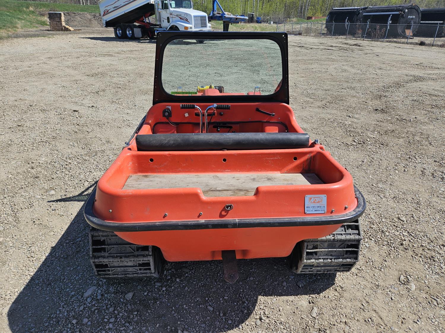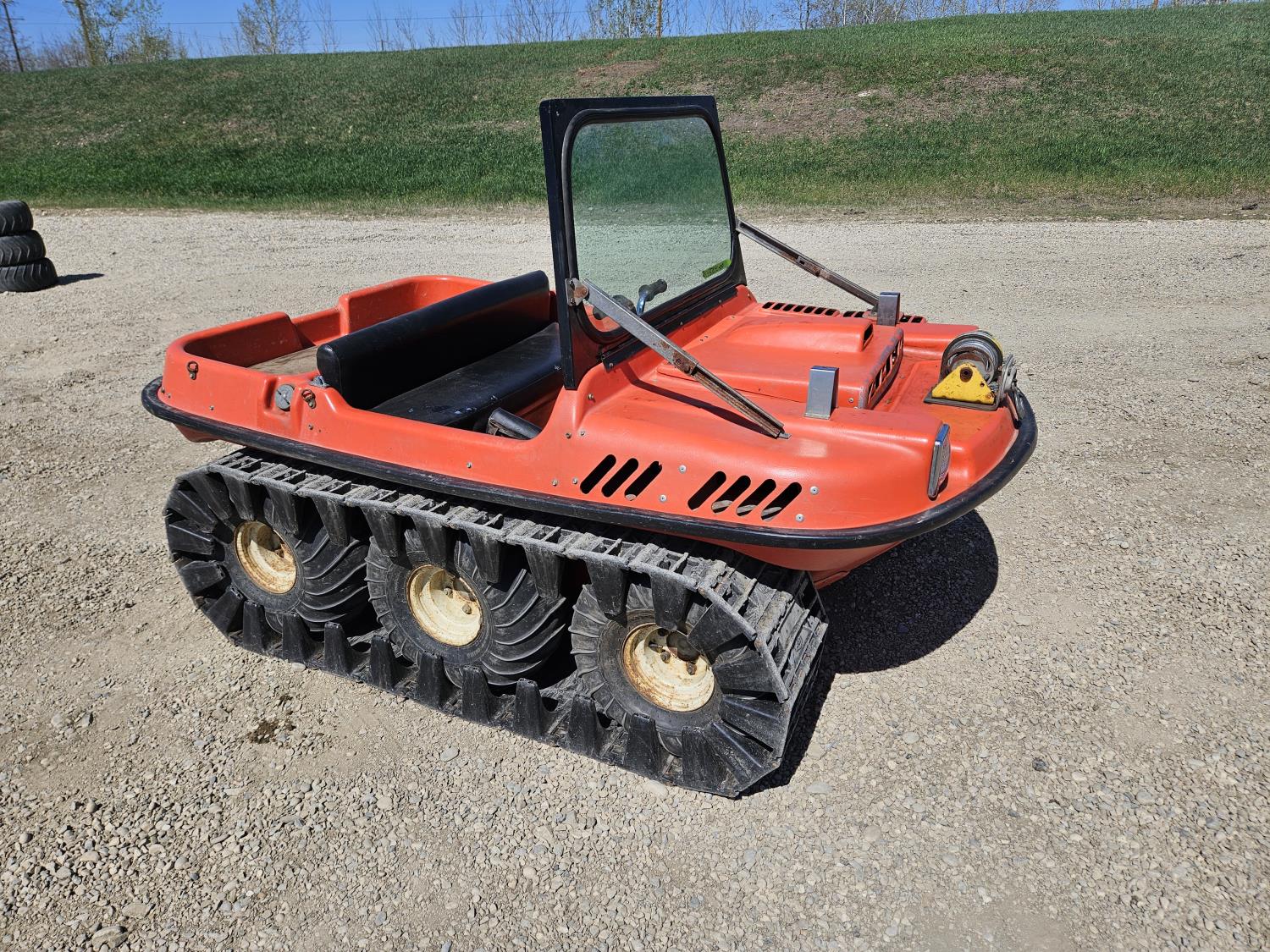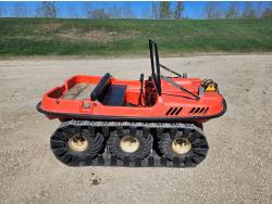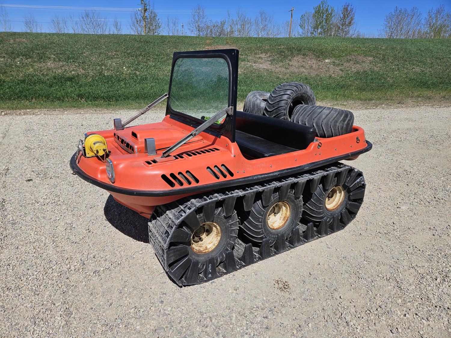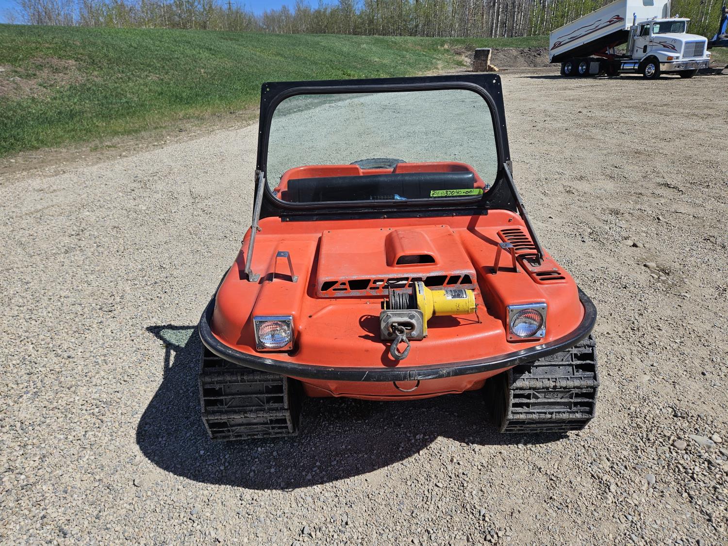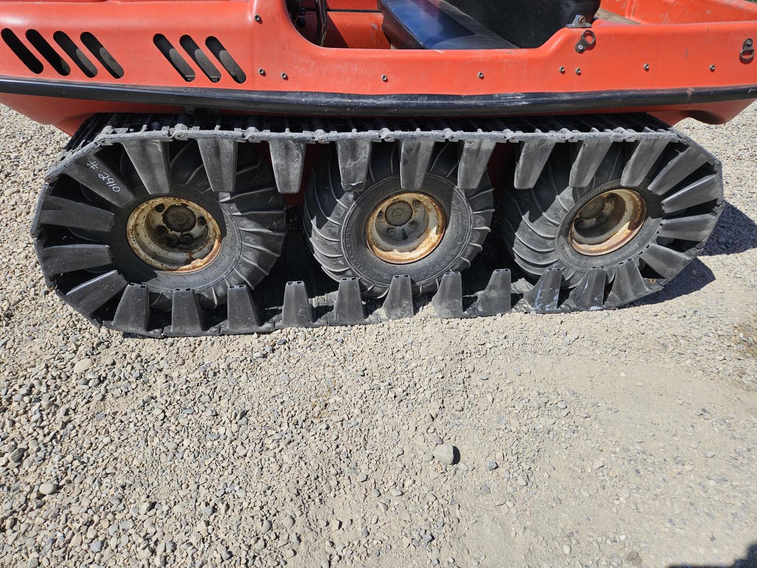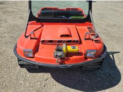 16 HP Tecumseh single cylinder OHV gas engine, hi/low reverse CVT transmission, 6 wheeled w/tracks, 3 spare 20x11.00-8 tires, windshield, electric start 1500 lb front mount winch
