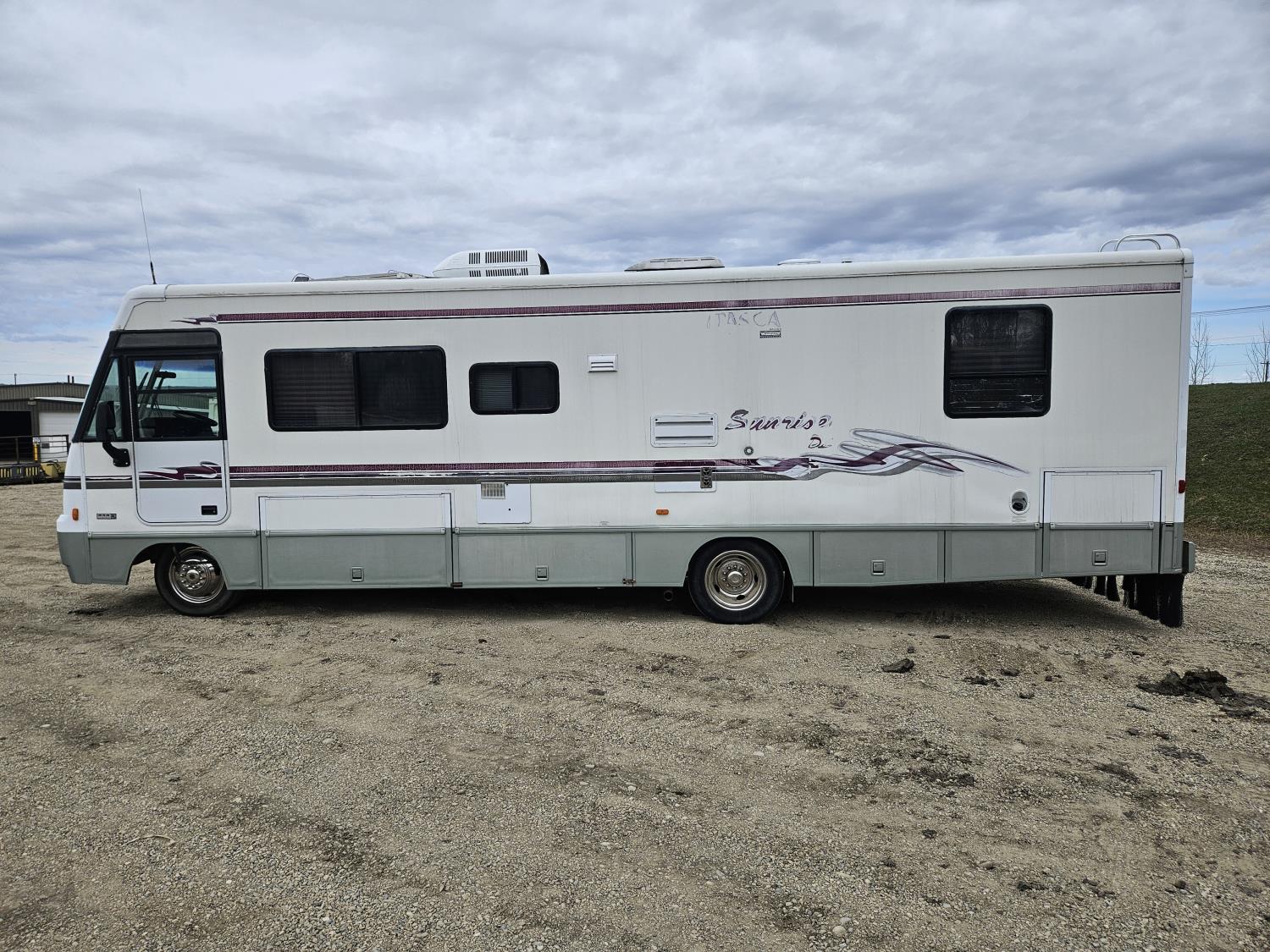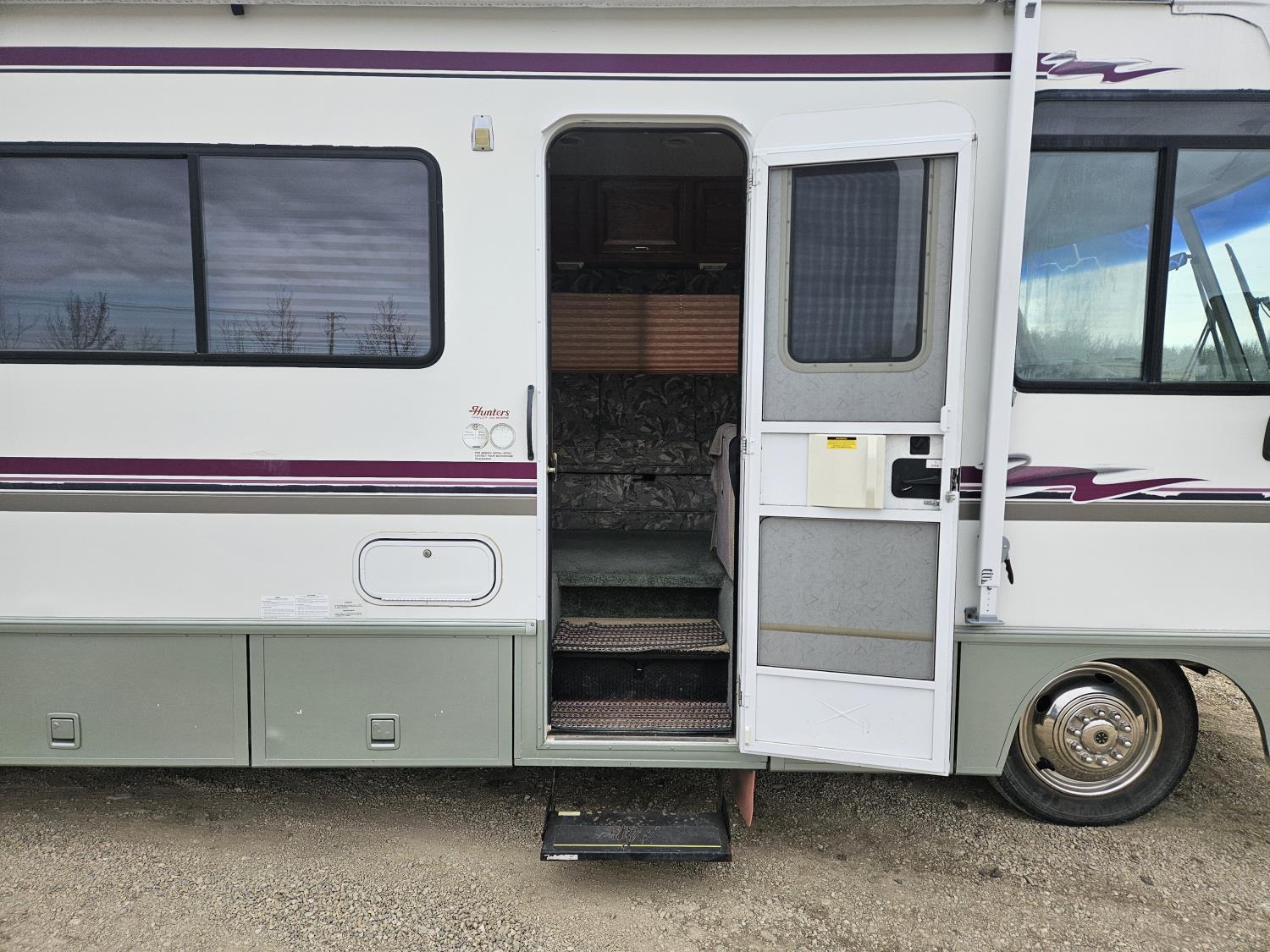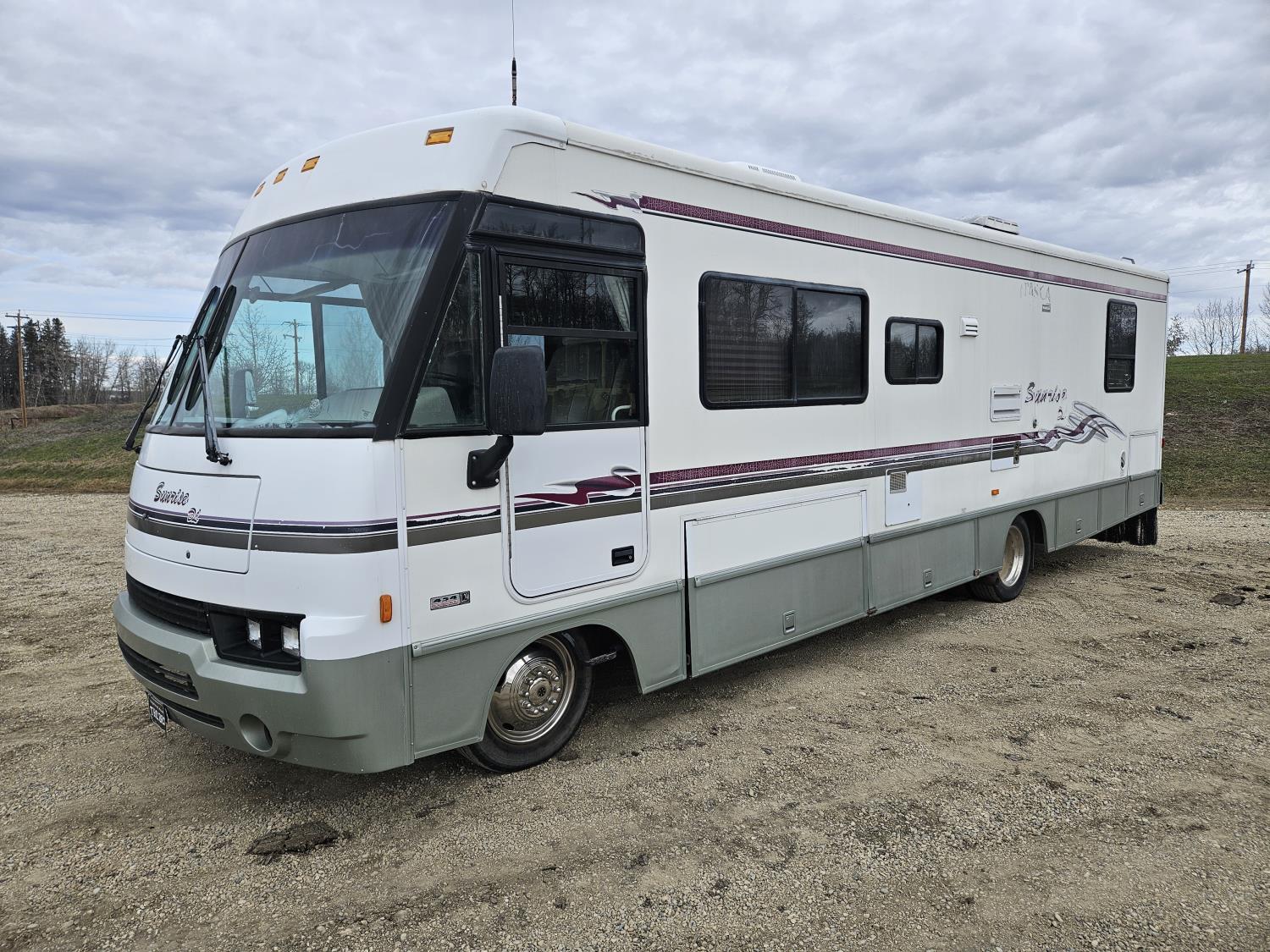 Chevrolet 454 7.4L V8 gas engine, automatic transmission, rear bed room, fridge, stove, oven, microwave, dinette, sofa, chair, full bathroom, A/C, Onan 4000 watt genset, power step, storage compartment, 225/70R19.5 tires