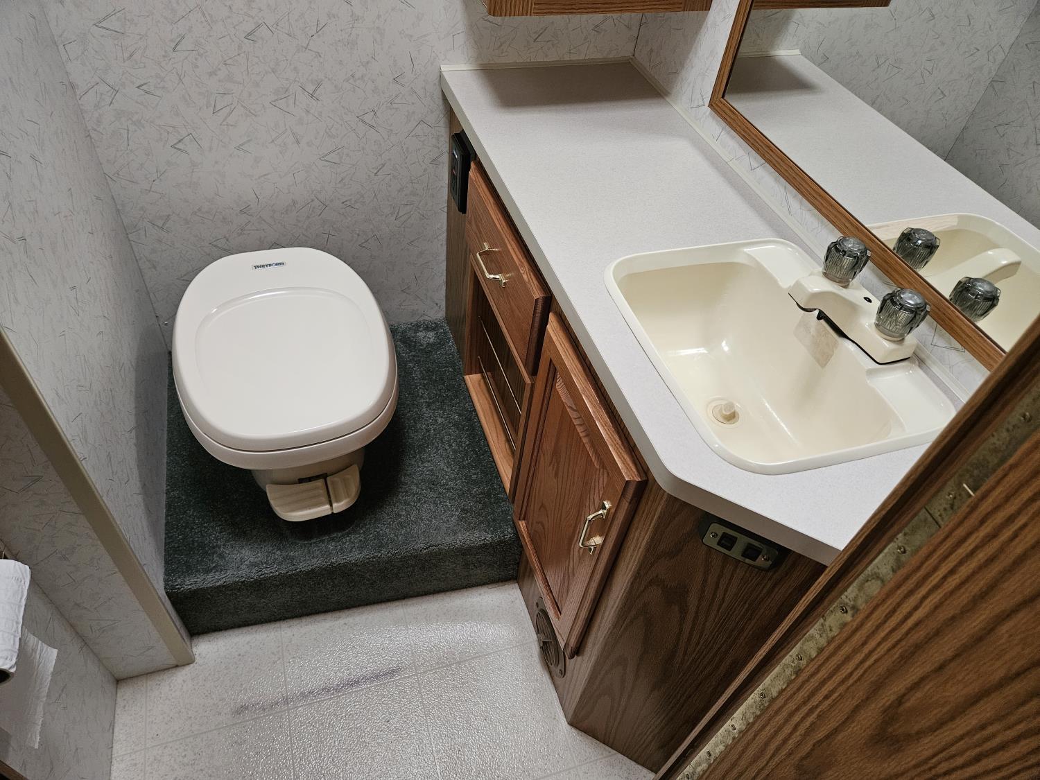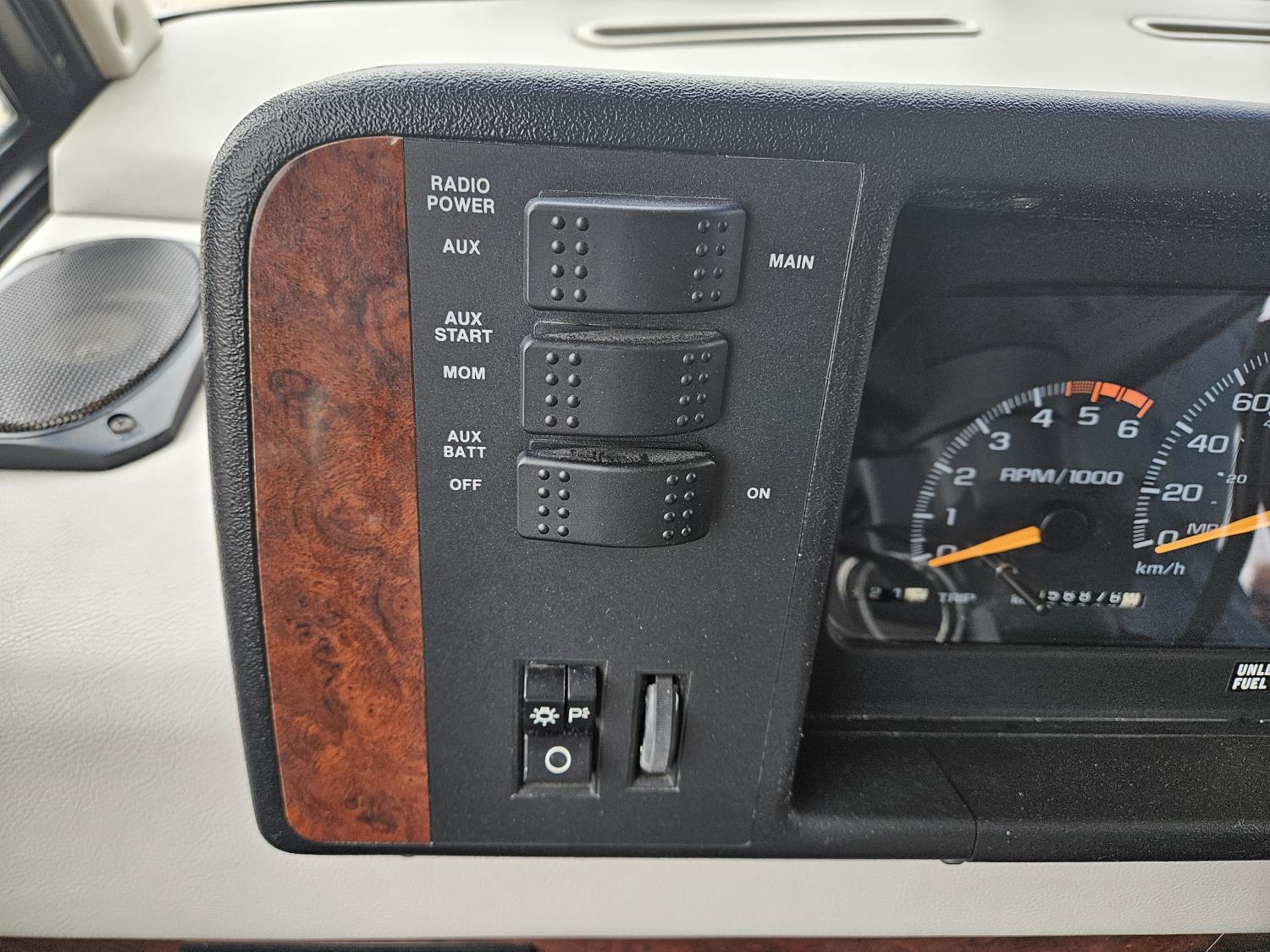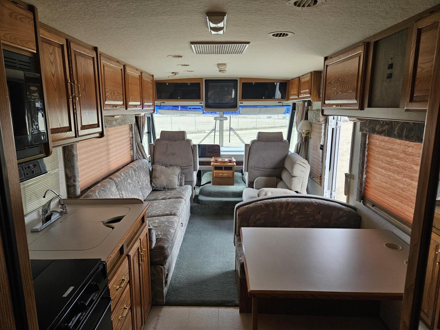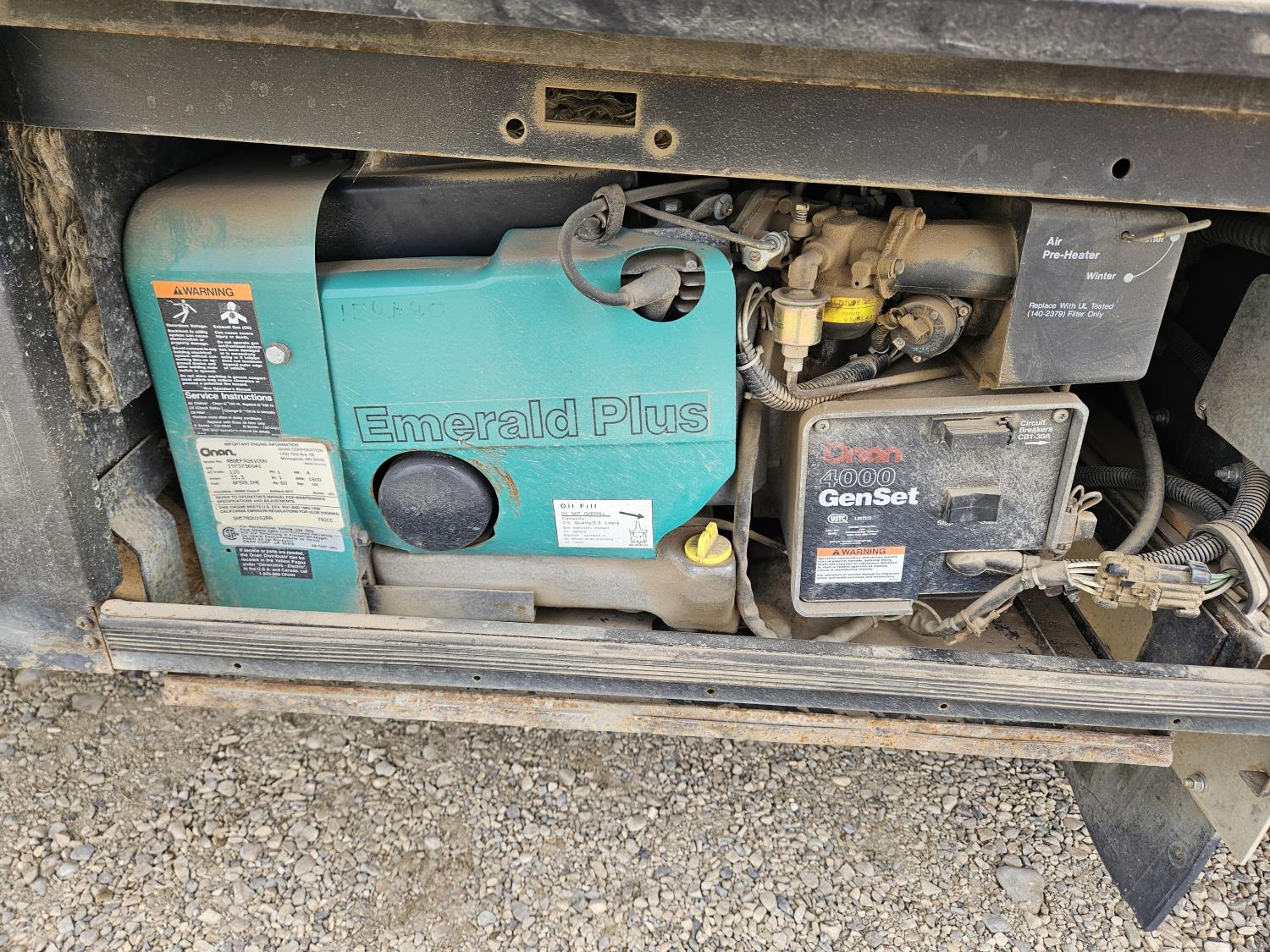 Chevrolet 454 7.4L V8 gas engine, automatic transmission, rear bed room, fridge, stove, oven, microwave, dinette, sofa, chair, full bathroom, A/C, Onan 4000 watt genset, power step, storage compartment, 225/70R19.5 tires
