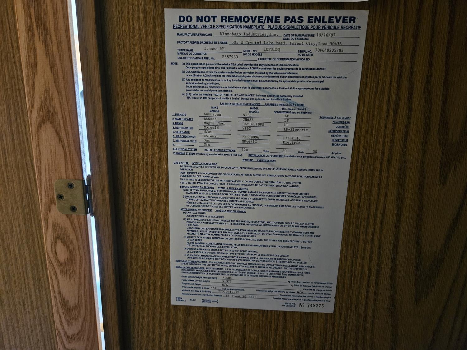 222 1998 Itasca ICF31DQ 31 Ft Motorhome