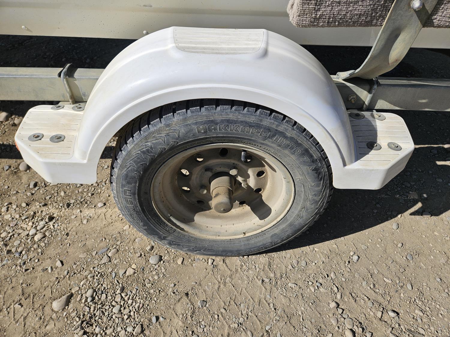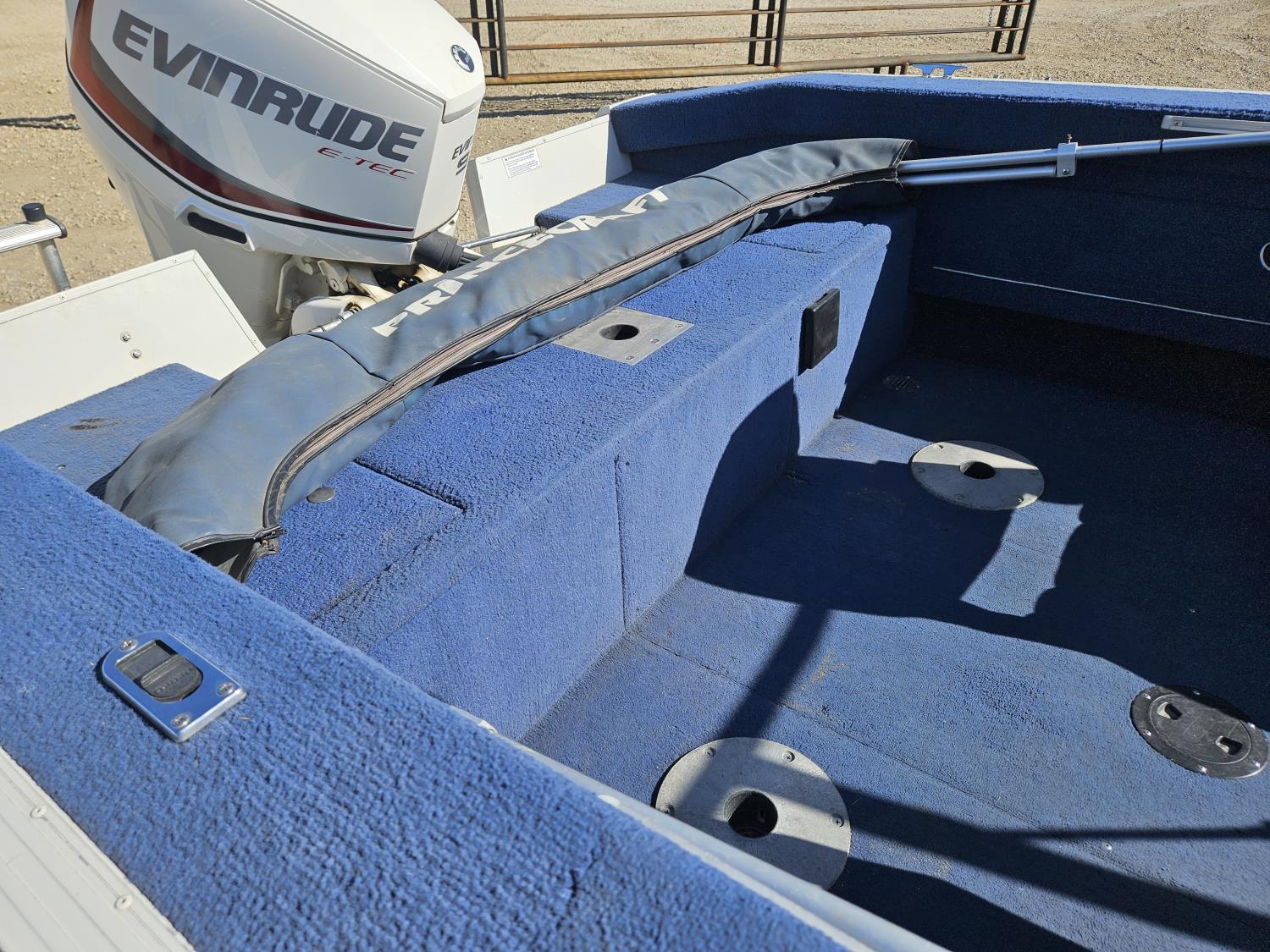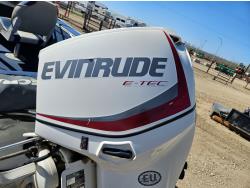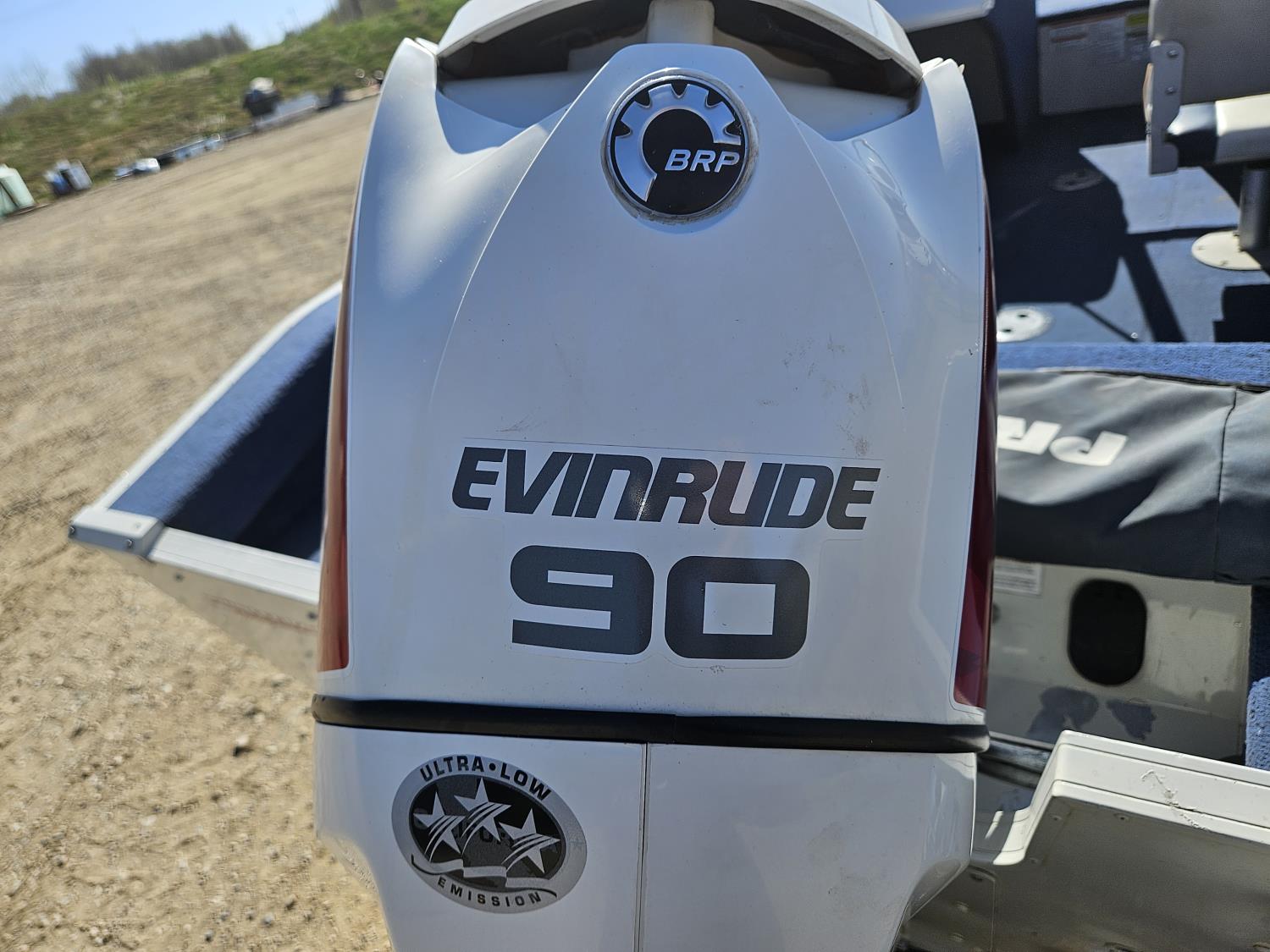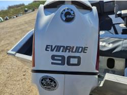 2019 Evinrude E-Tec 90 HP outboard gas engine, open bow, bi-mini top, steering wheel, stainless prop, 2 chairs, spring suspension, 155/80R13 tires