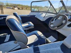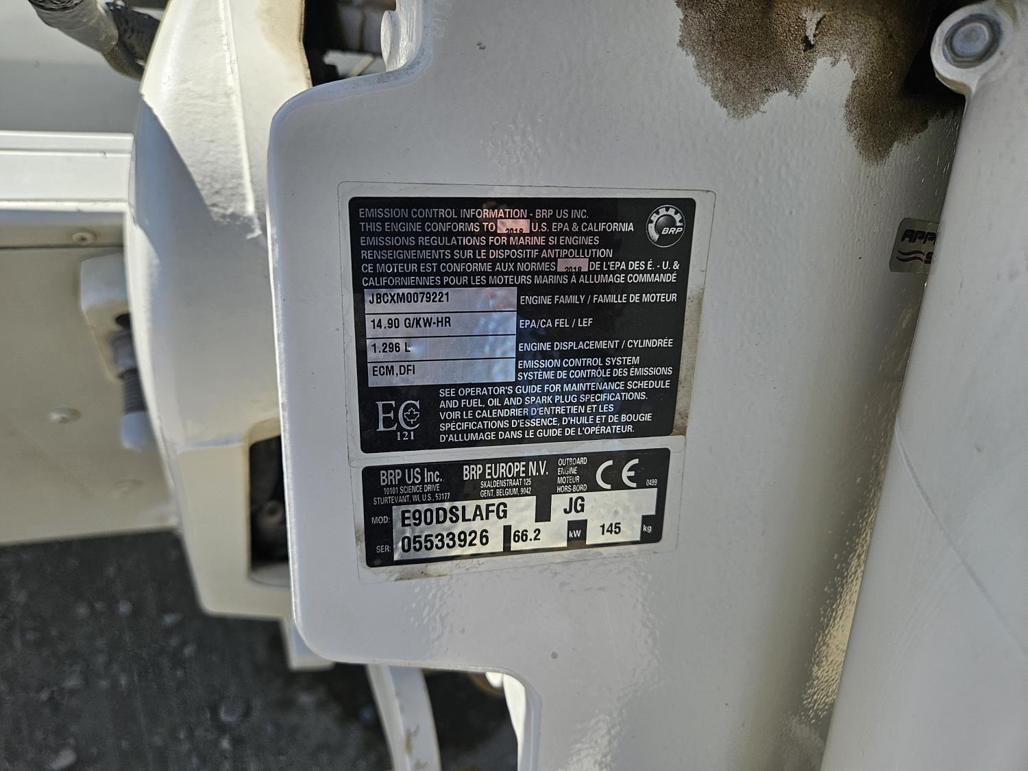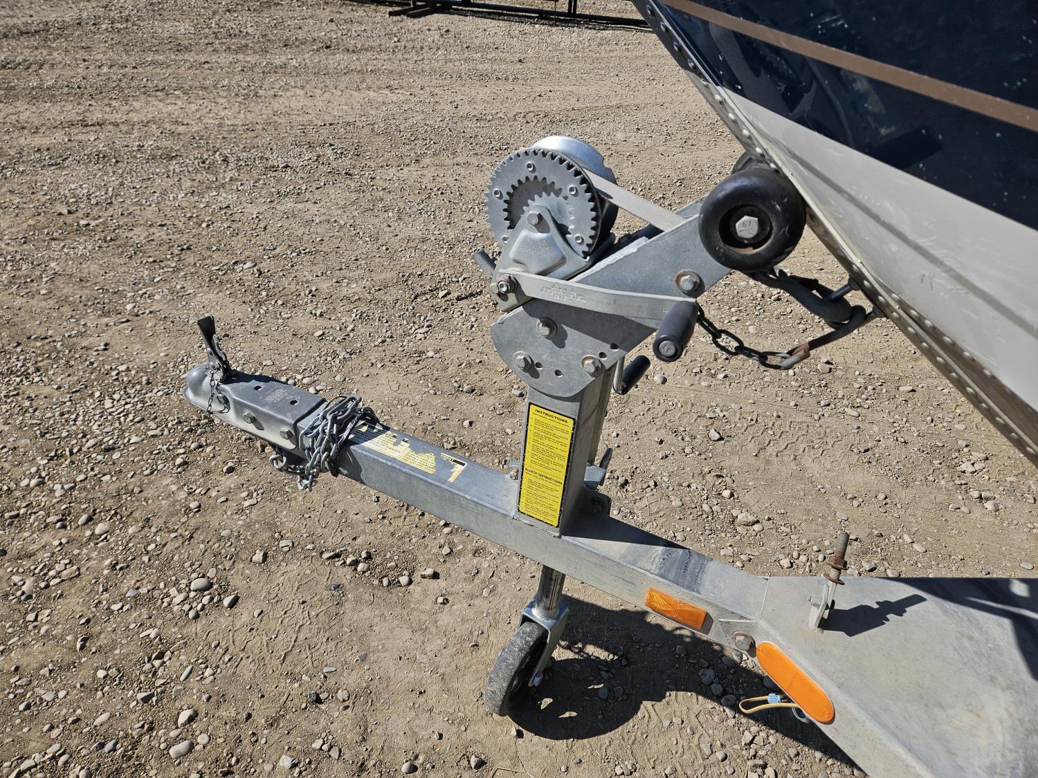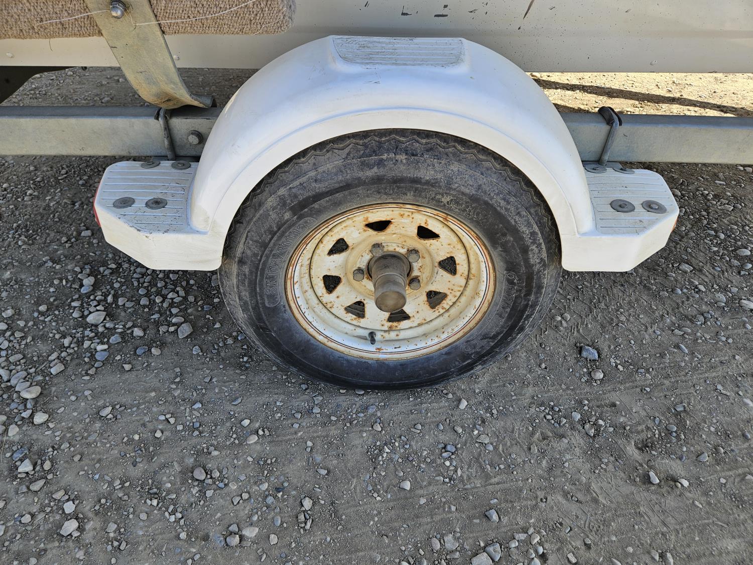 2019 Evinrude E-Tec 90 HP outboard gas engine, open bow, bi-mini top, steering wheel, stainless prop, 2 chairs, spring suspension, 155/80R13 tires