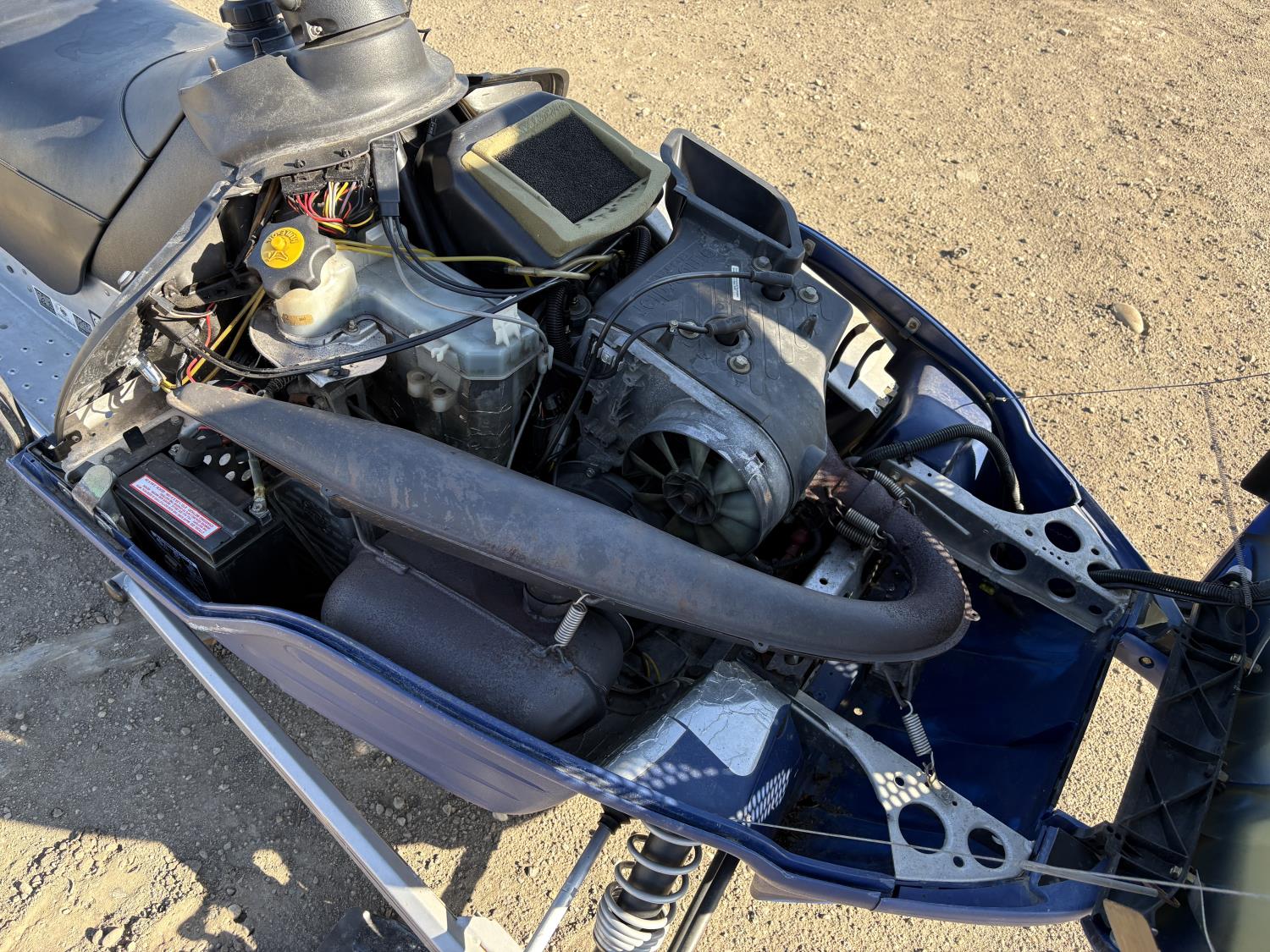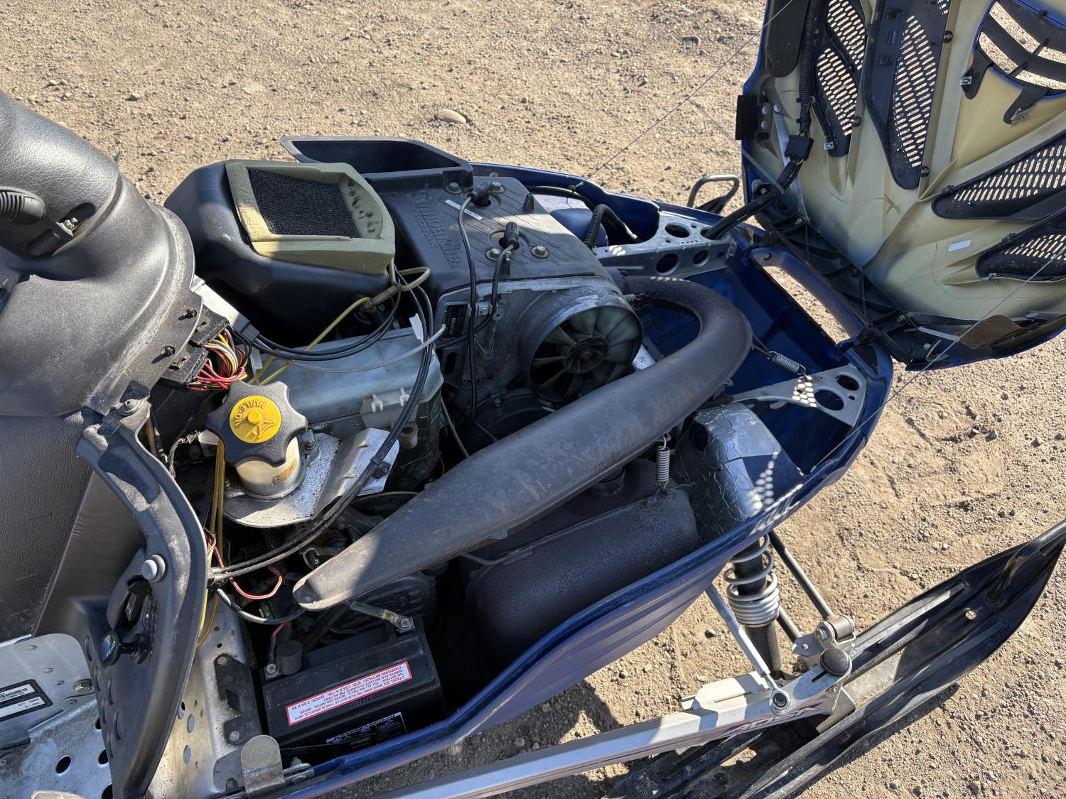 380 cc 2 cylinder 2 stroke Fan cooled engine, electric start, reverse, windshield, hand and thumb warmers, 121 inch long track, 15 inch wide track, .75 inch paddles