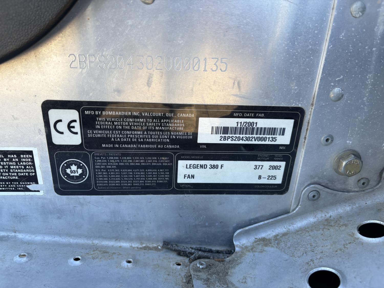 127 2002 Ski-doo Legend Snowmobile