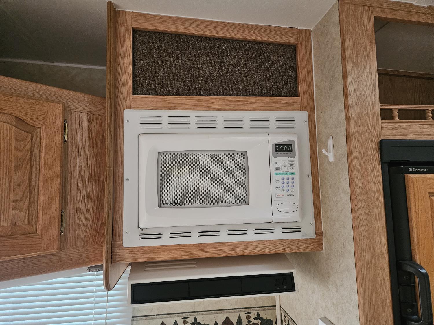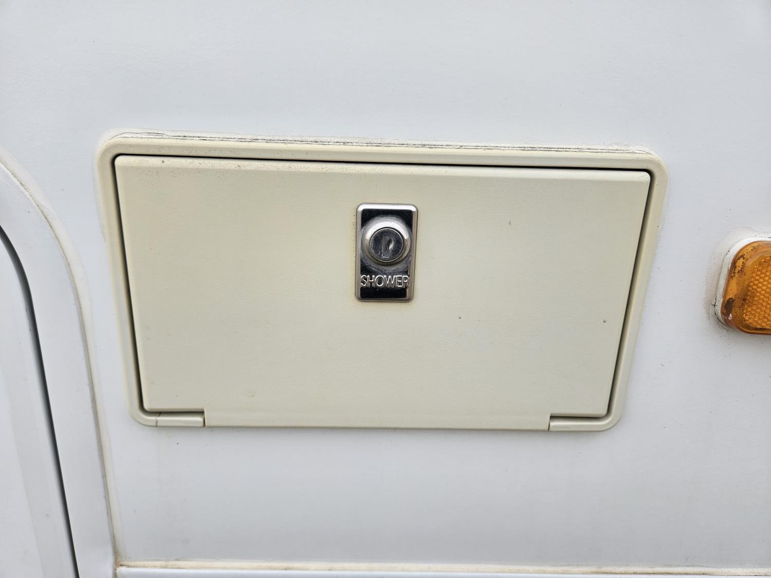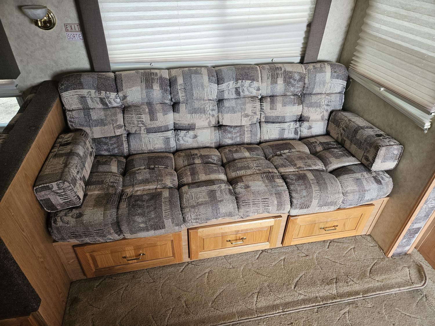 Sleeps 8, stove, fridge, microwave, full bath, A/C, outdoor shower, 1 slide, manual awning, power levelling jacks, spring suspension, electric brakes, quad bunks, solar panels, bike rack, 225/75R16 tires
