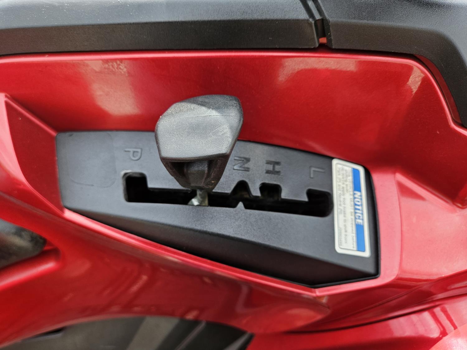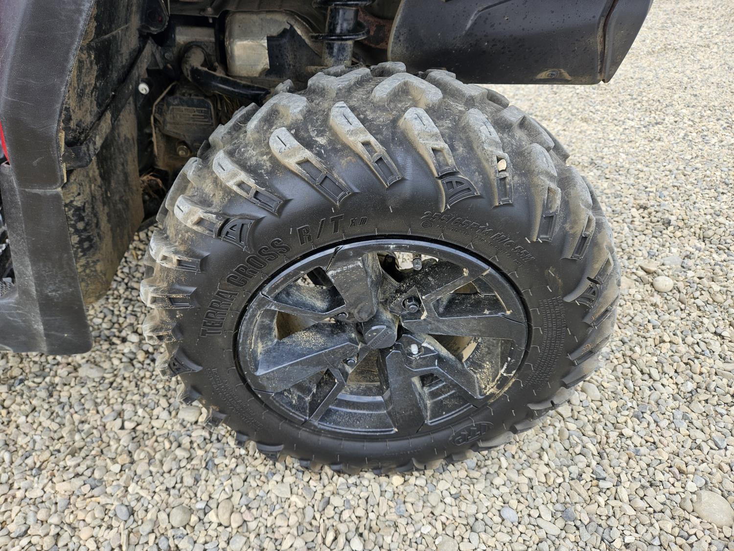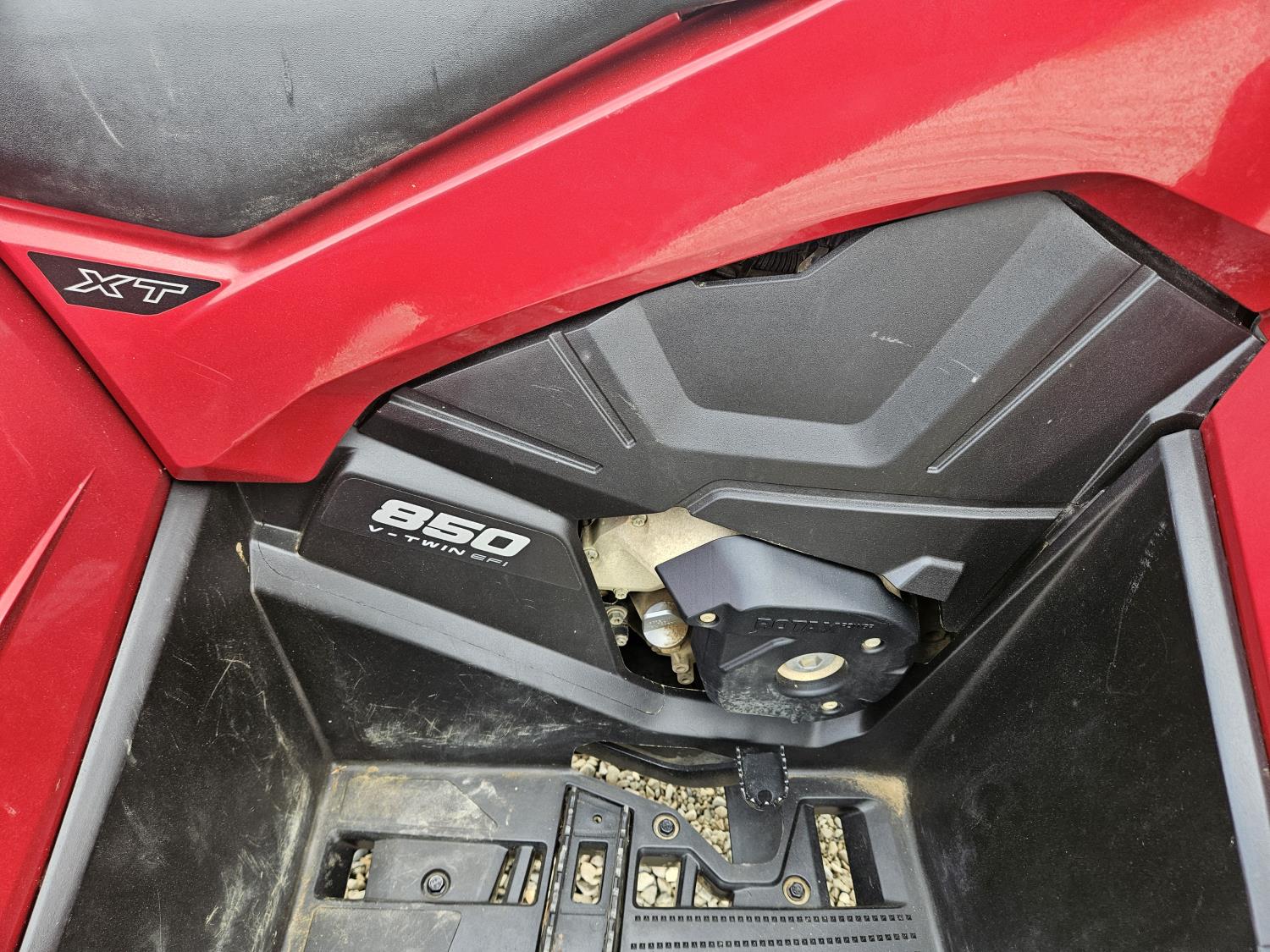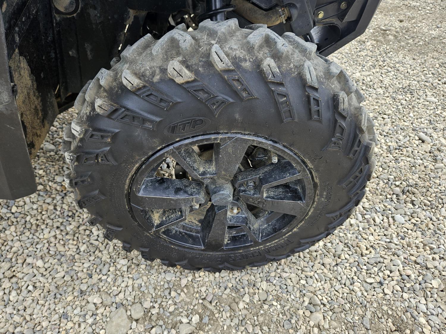 850 cc fuel injected water cooled engine, automatic transmission, Hi/Lo range, reverse, receiver hitch, front and rear racks, front winch, 255/65R14 tires