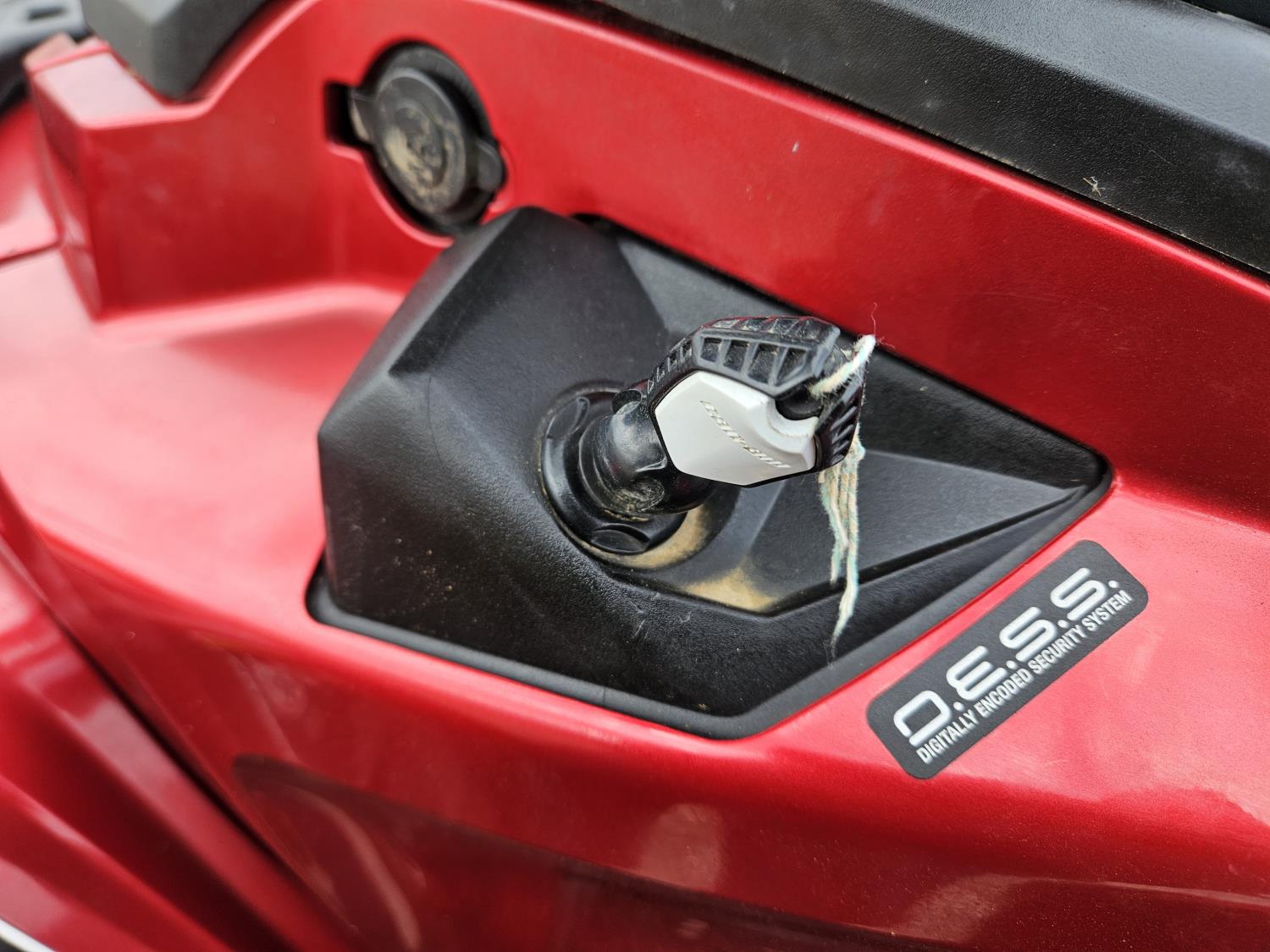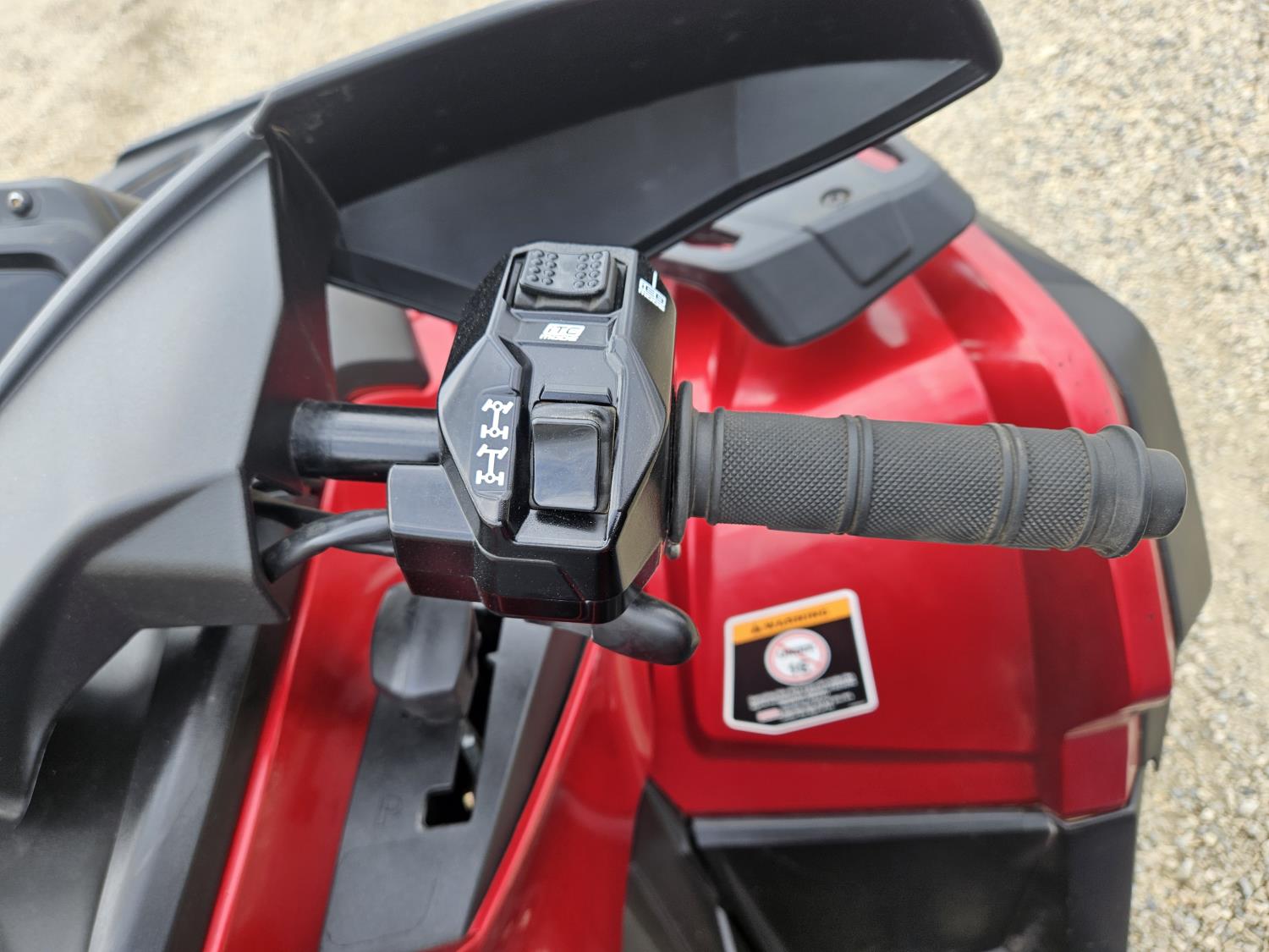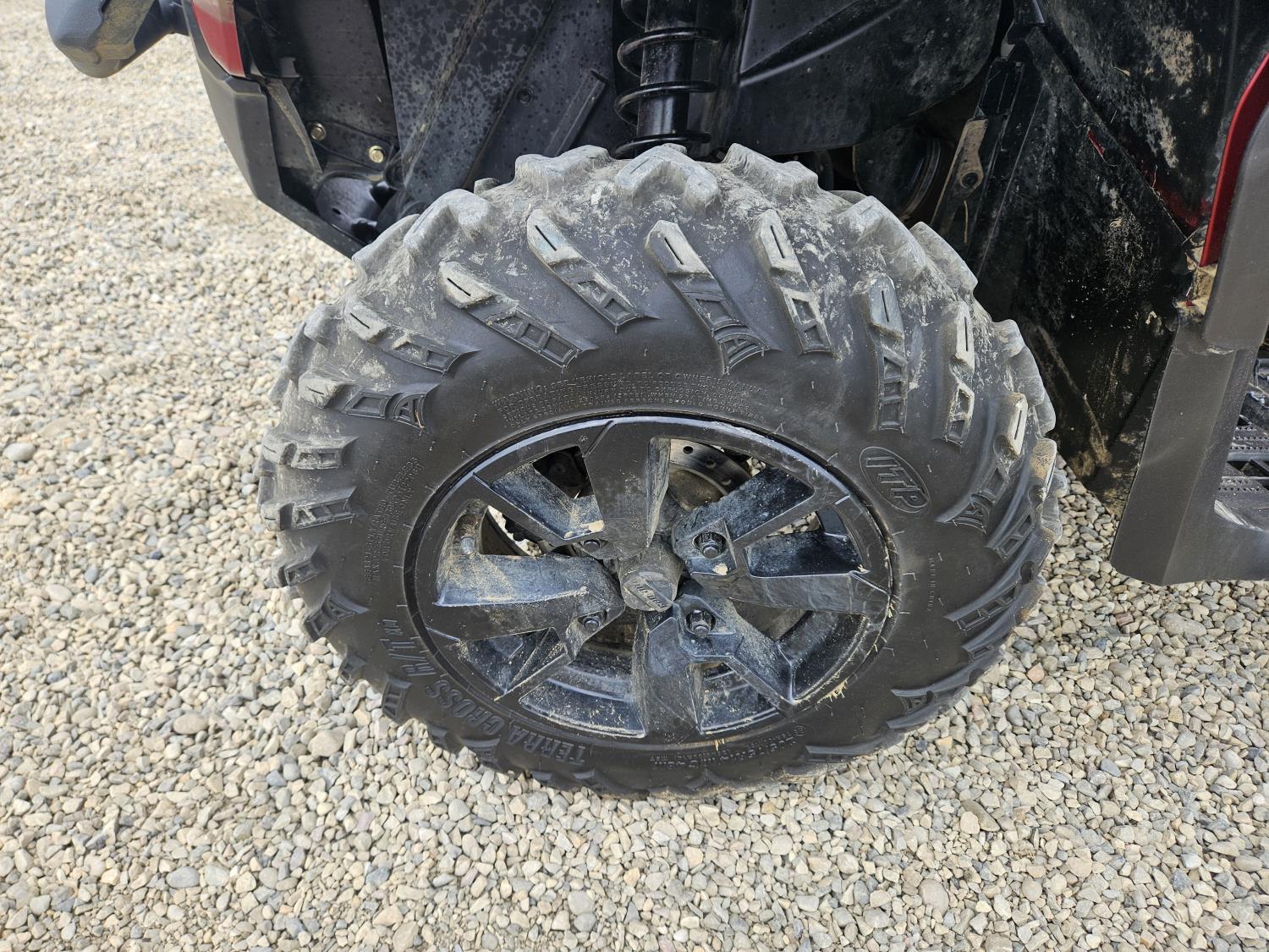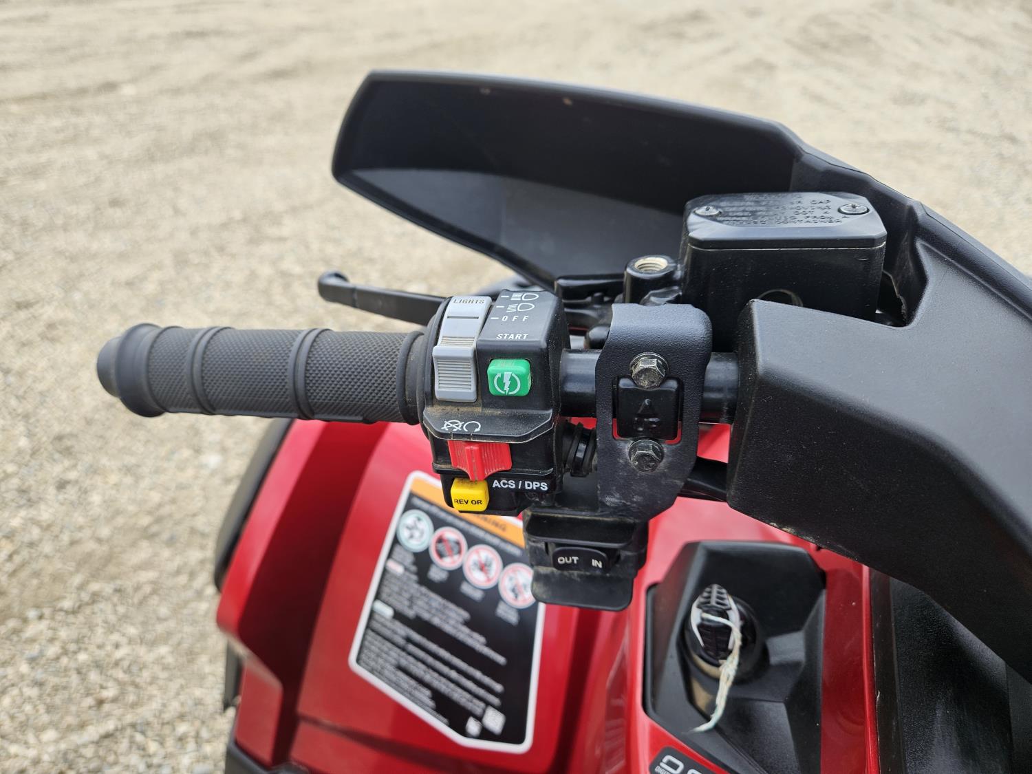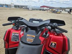 850 cc fuel injected water cooled engine, automatic transmission, Hi/Lo range, reverse, receiver hitch, front and rear racks, front winch, 255/65R14 tires
