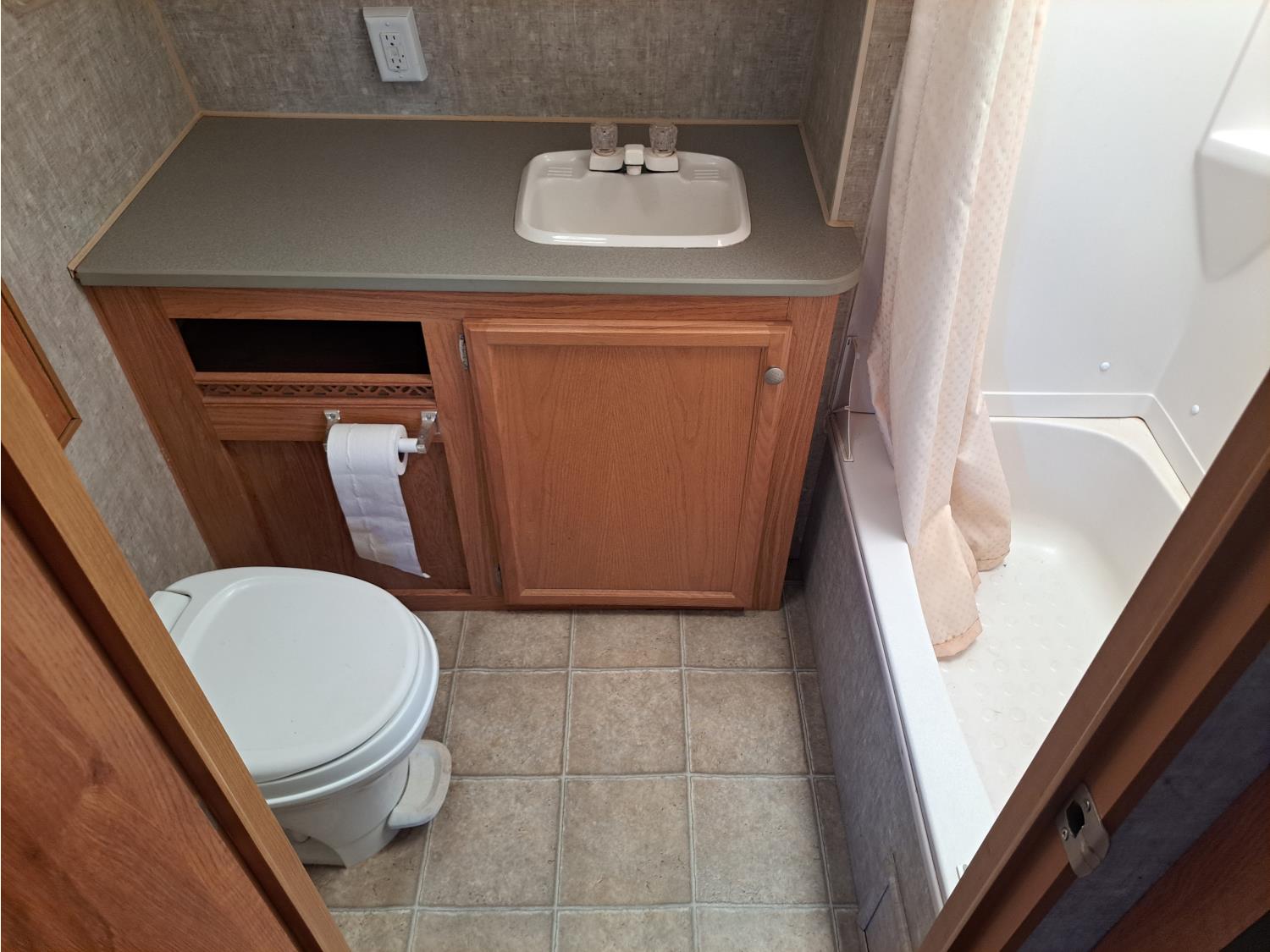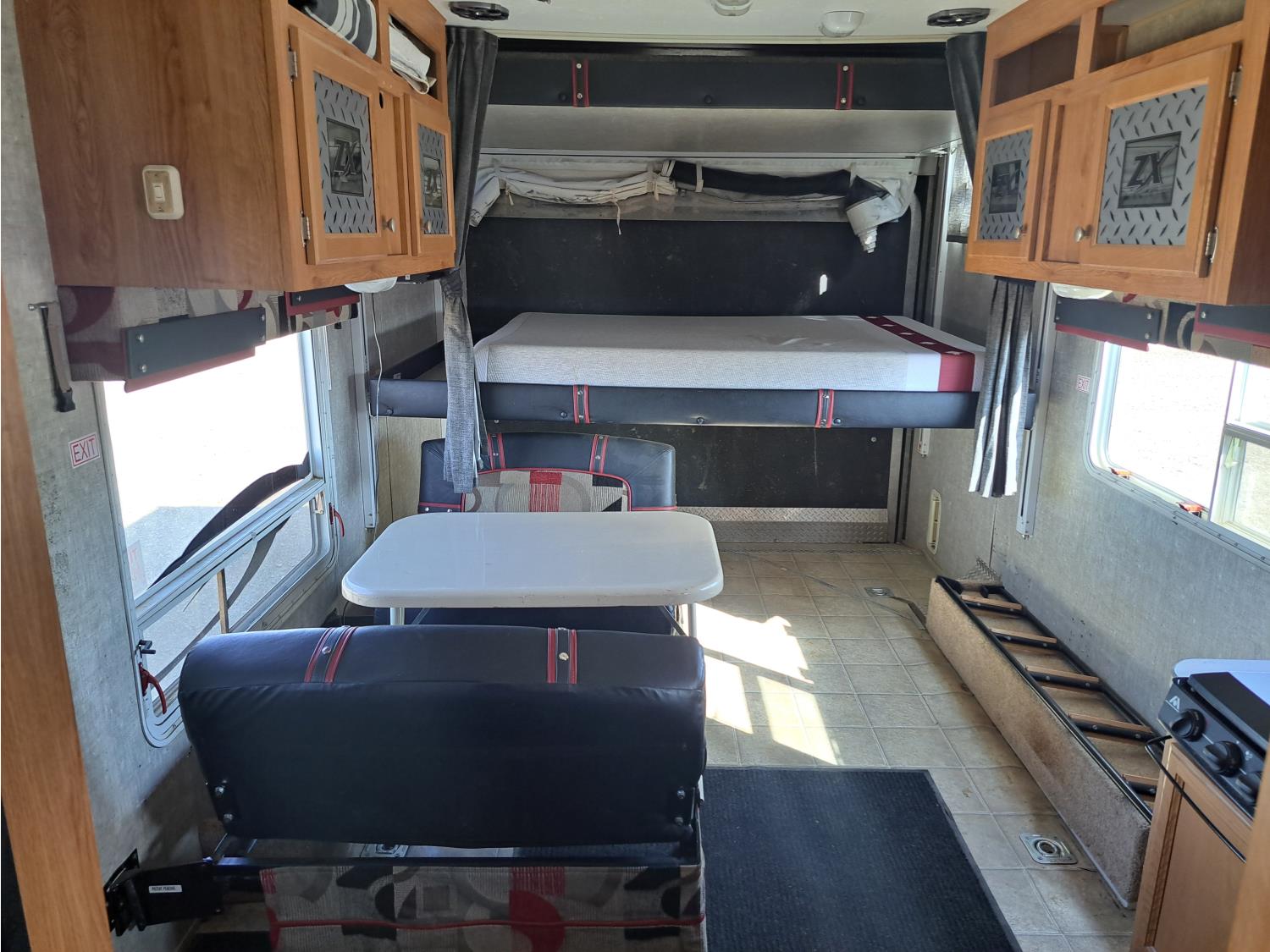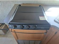 Sleeps 6, stove, fridge, microwave, full bath, bunk beds, outdoor shower, manual awning, spring suspension, 225/75R15 tires