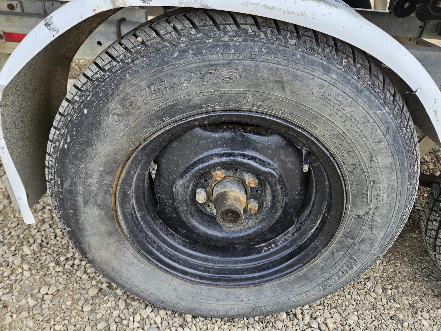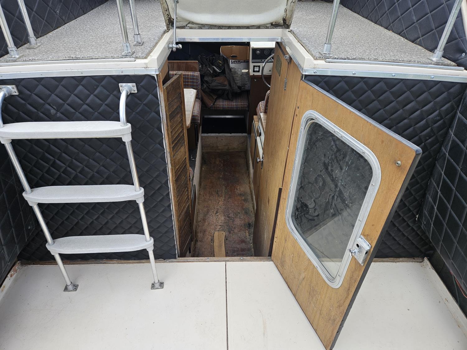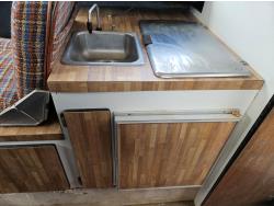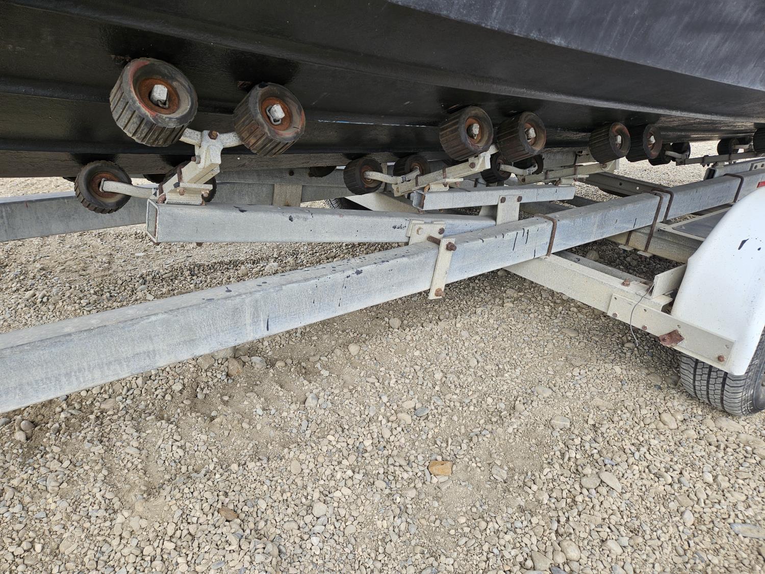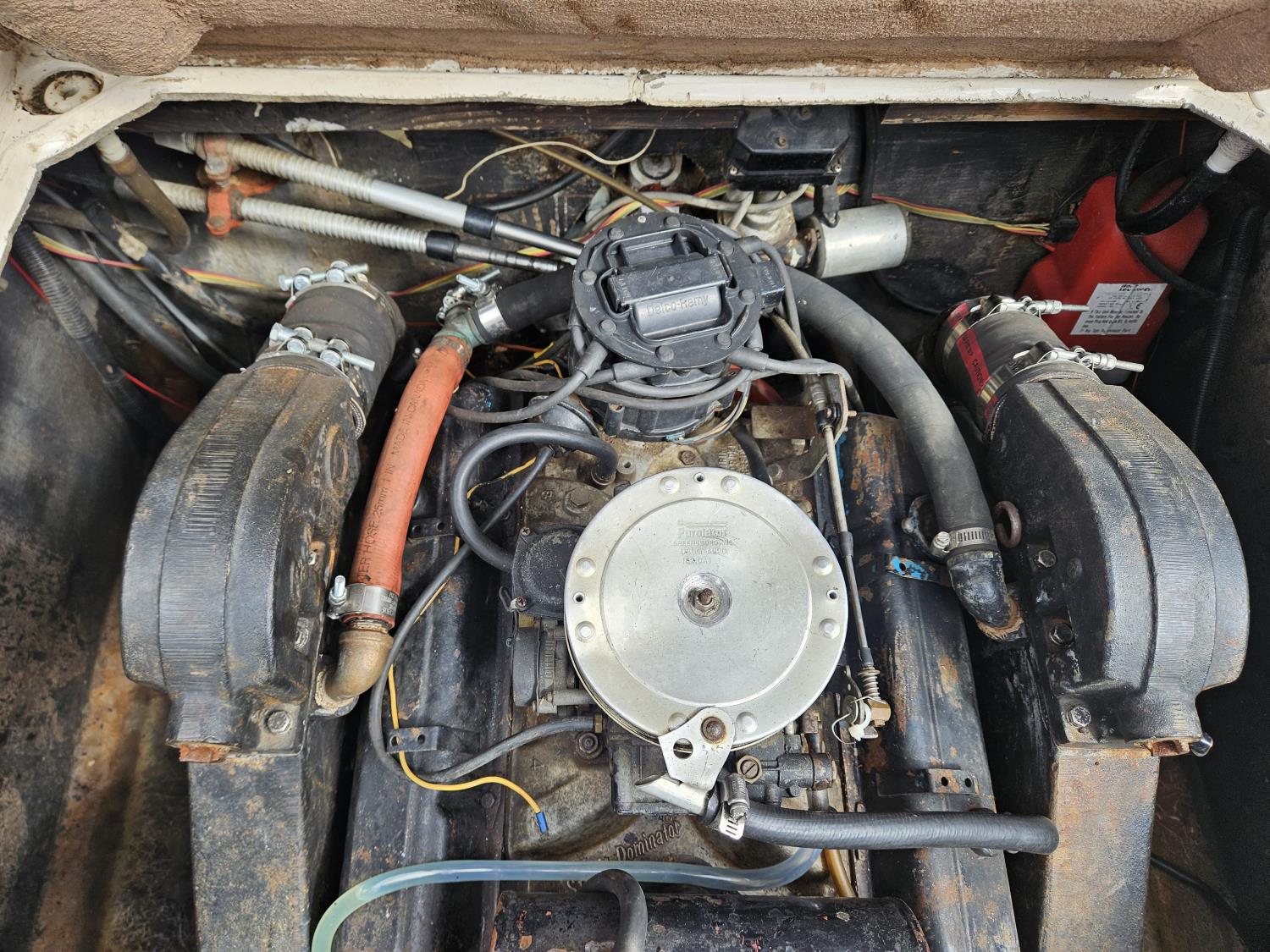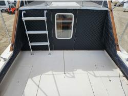 Chevrolet 350 V8 gas inboard engine, 2 steering wheels, storage compartments, toilet, dinette, sink stove top, fridge, 215/70R15 tires