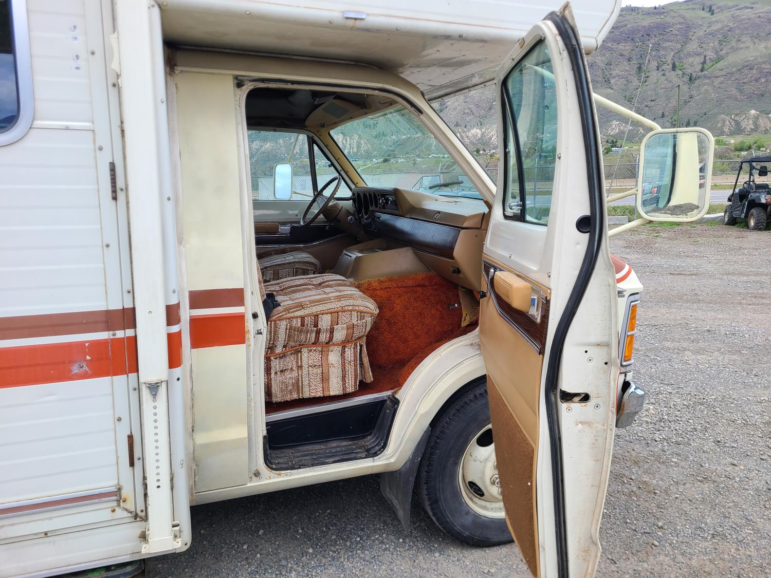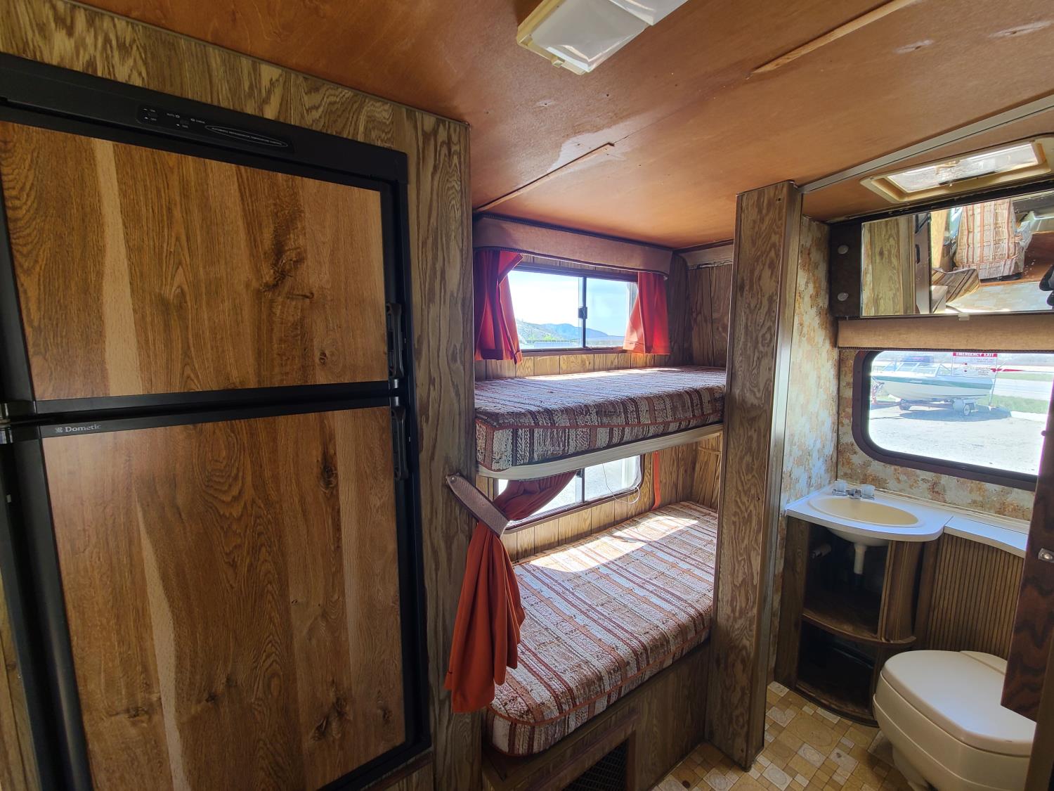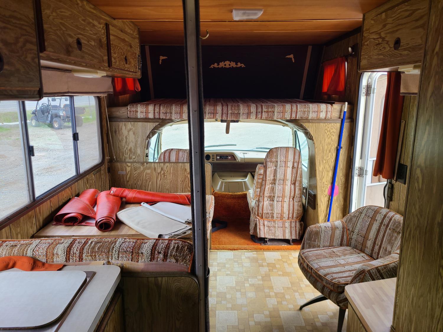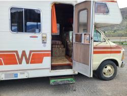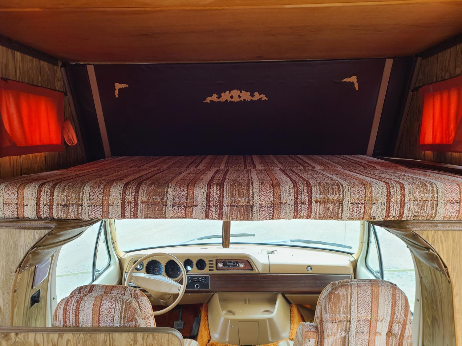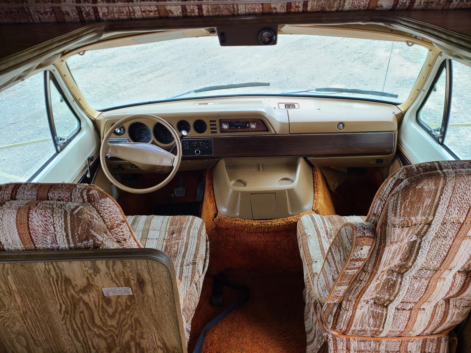 Includes snap on blackout blinds, awning has water stains but no rips or tears, engine is a 440 V8, auto transmission