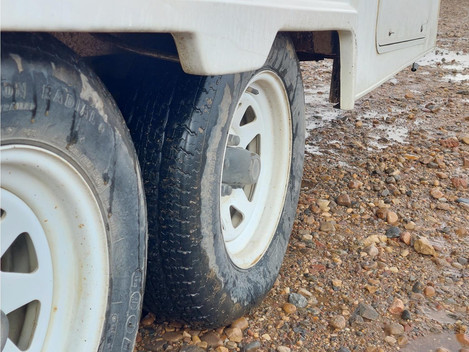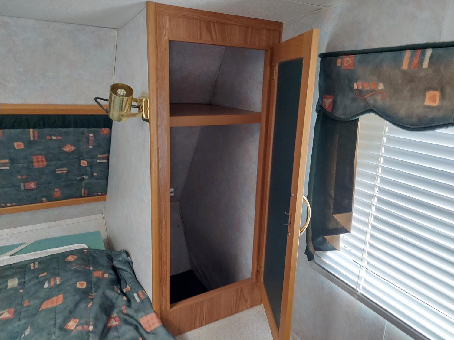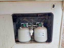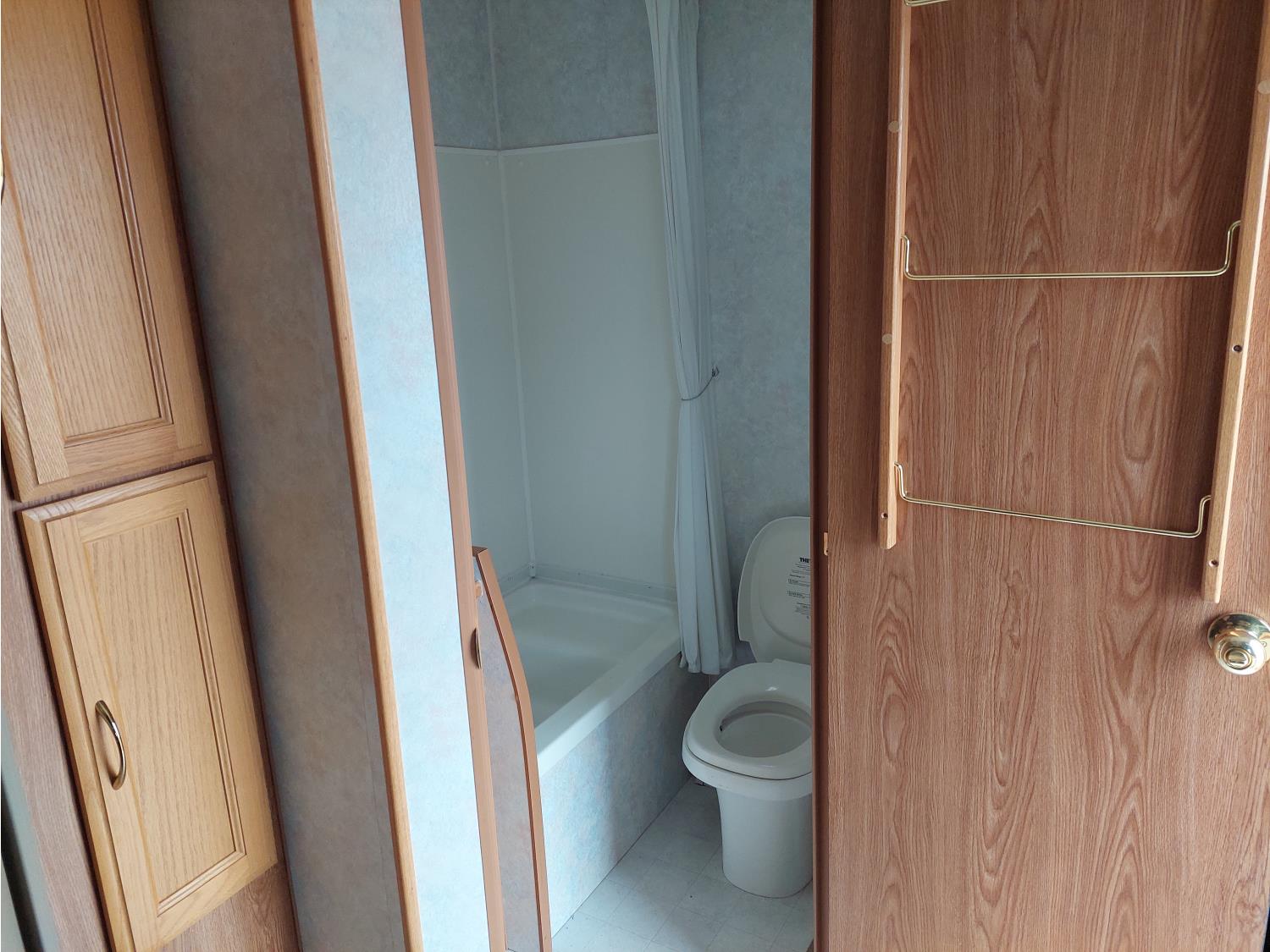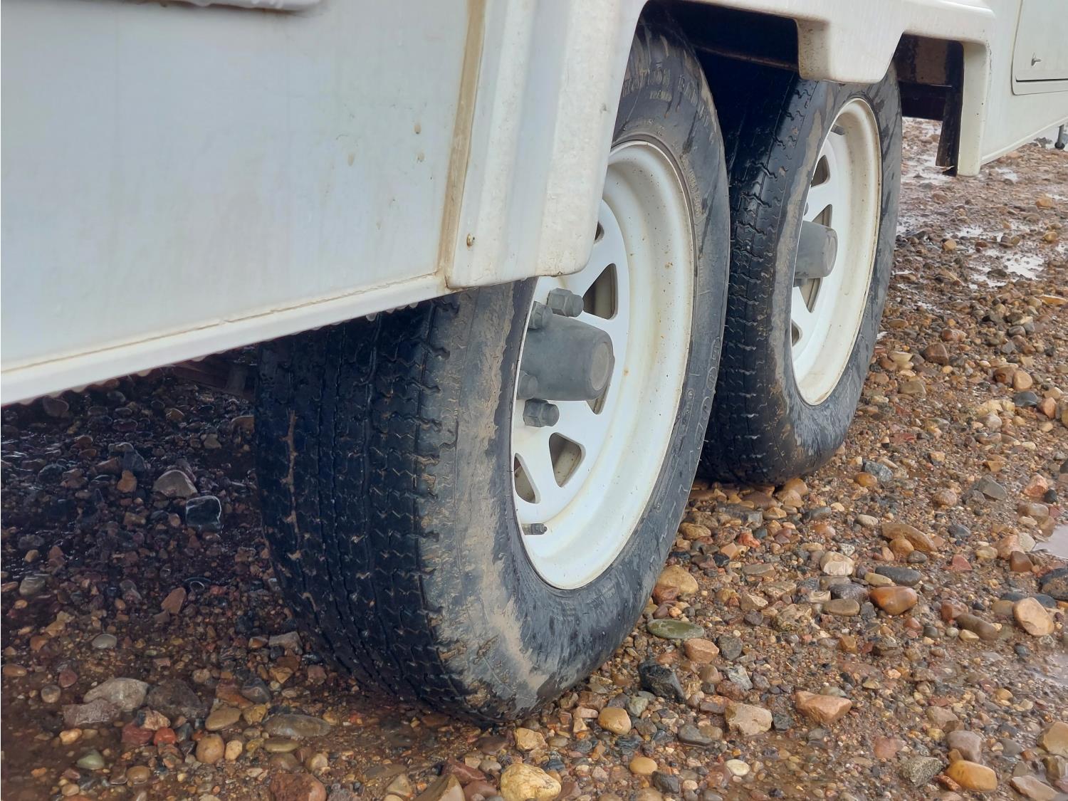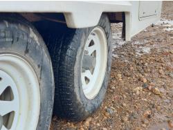 Sleeps 6, stove, fridge, full bath, master bedroom, A/C, outdoor shower, manual awning, spring suspension, electric brakes, solar panel, 205/75R15 tires