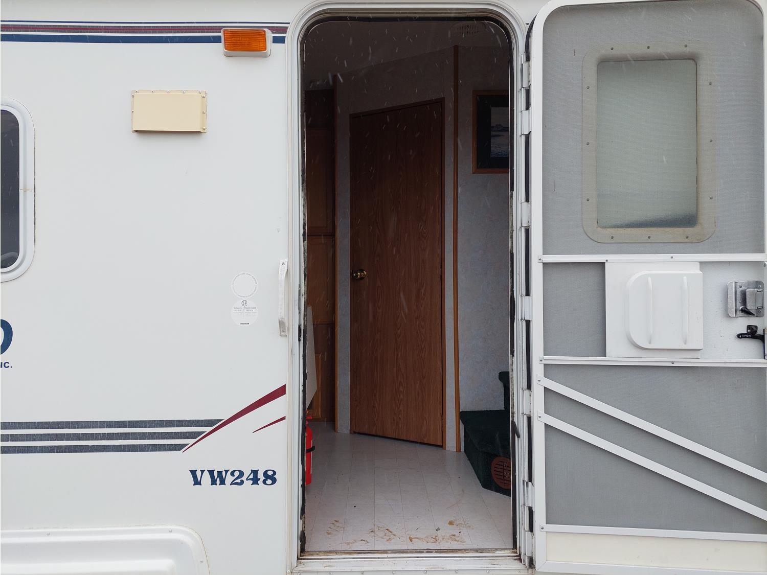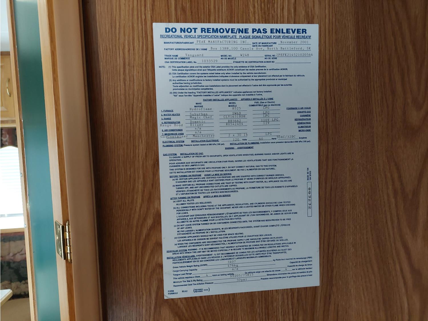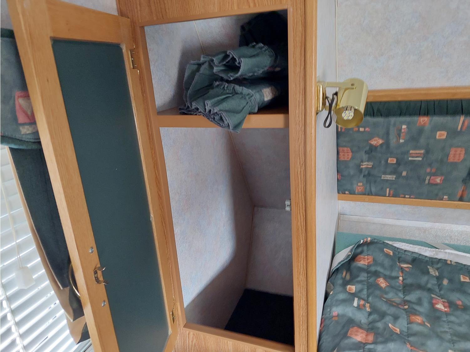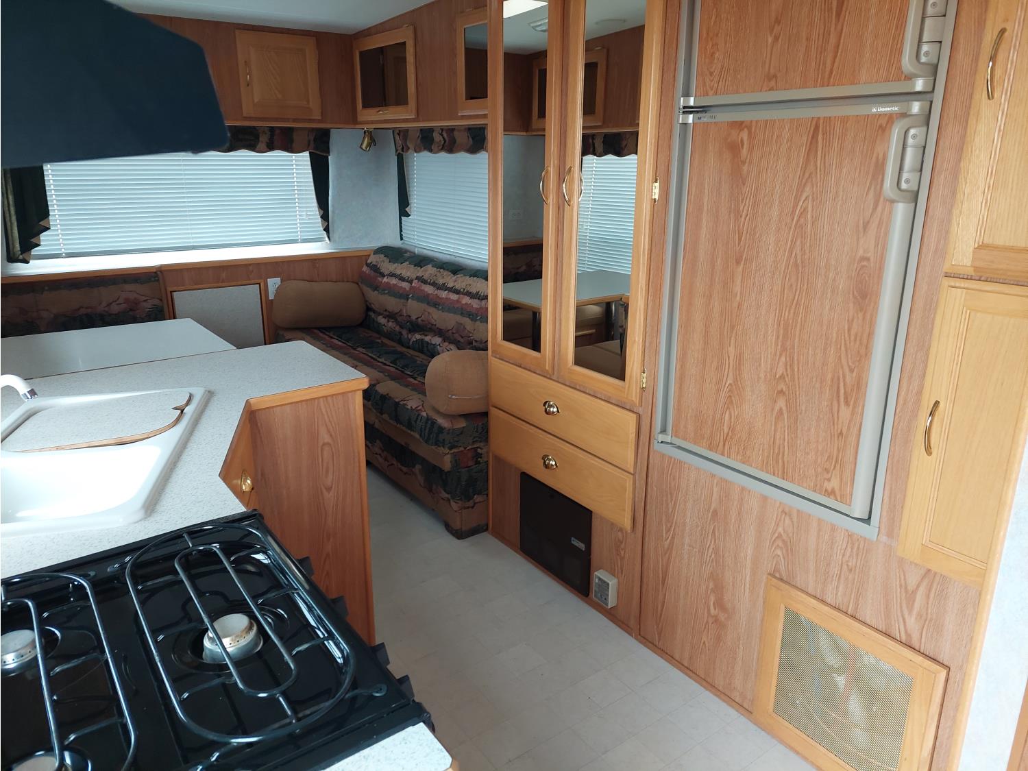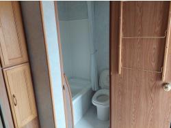 Sleeps 6, stove, fridge, full bath, master bedroom, A/C, outdoor shower, manual awning, spring suspension, electric brakes, solar panel, 205/75R15 tires