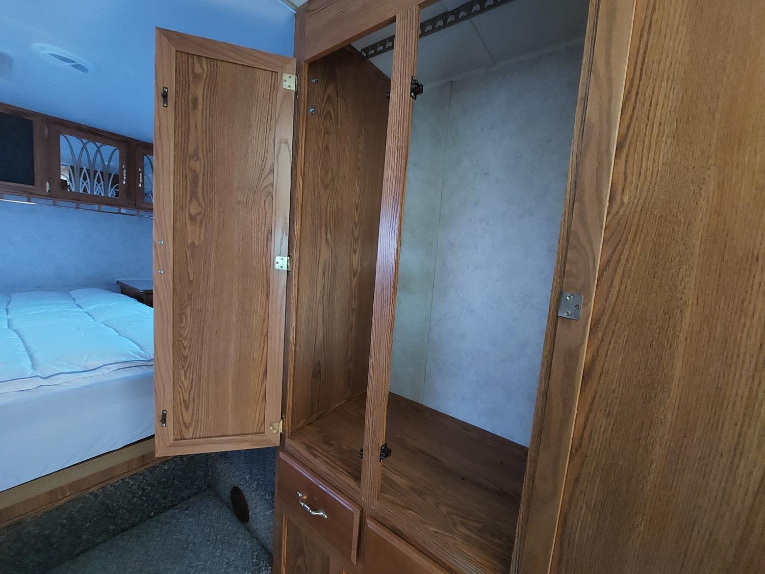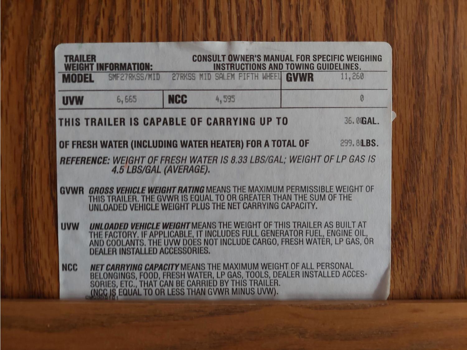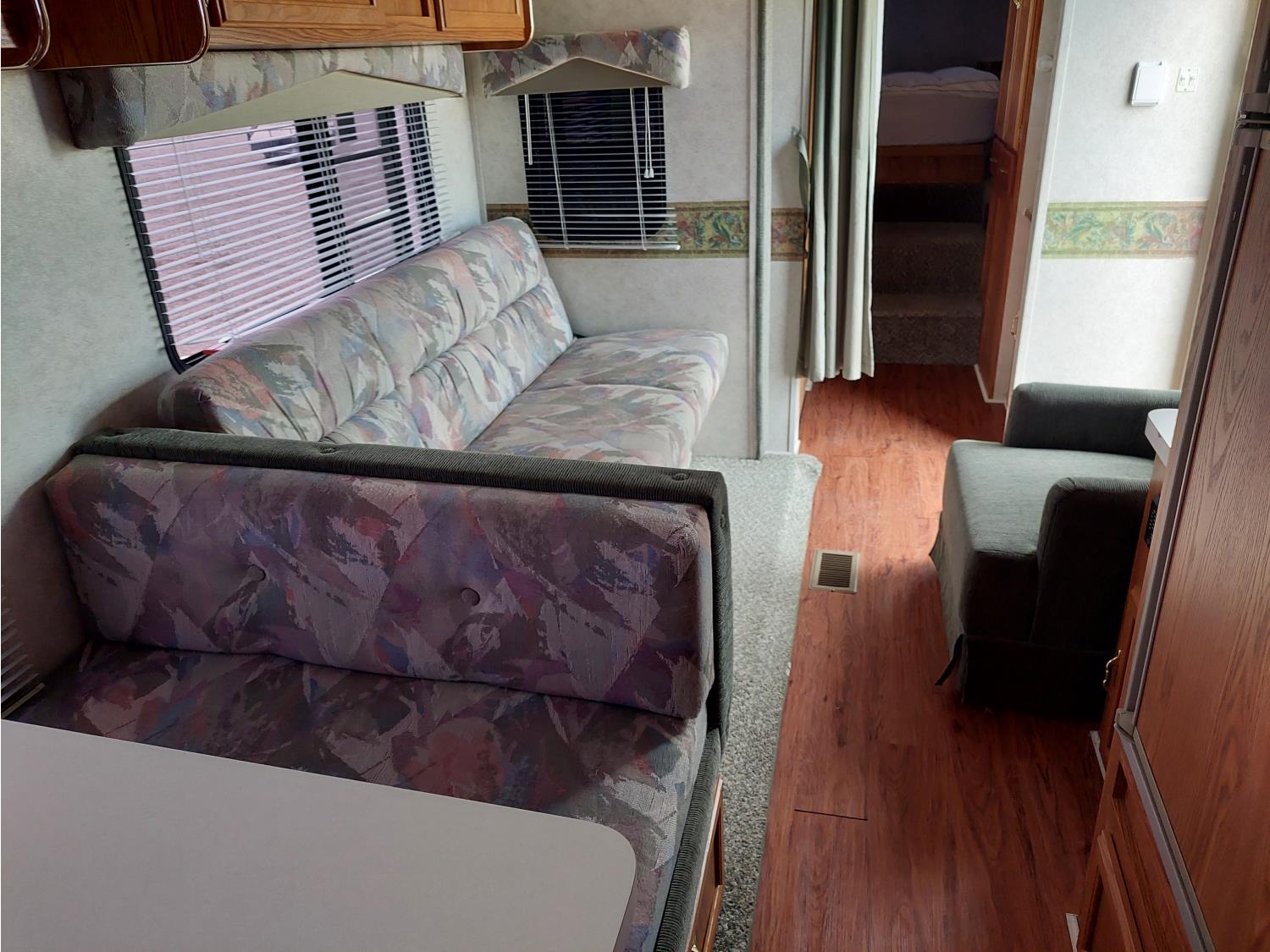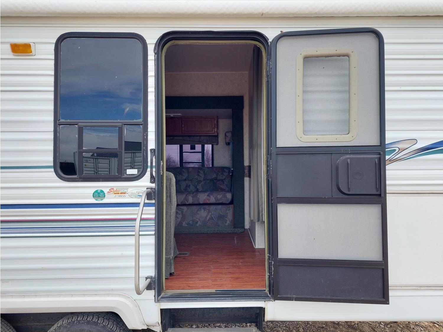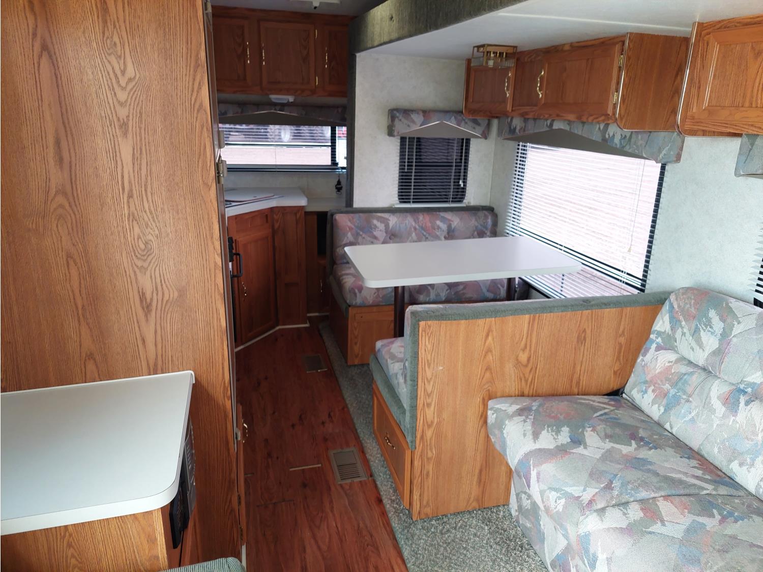 Sleeps 6, stove, fridge, microwave, full bath, master bedroom, A/C, 1 slide, manual awning, spring suspension, electric brakes, roof top solar panels, manual slide awning, 225/75R15 tires