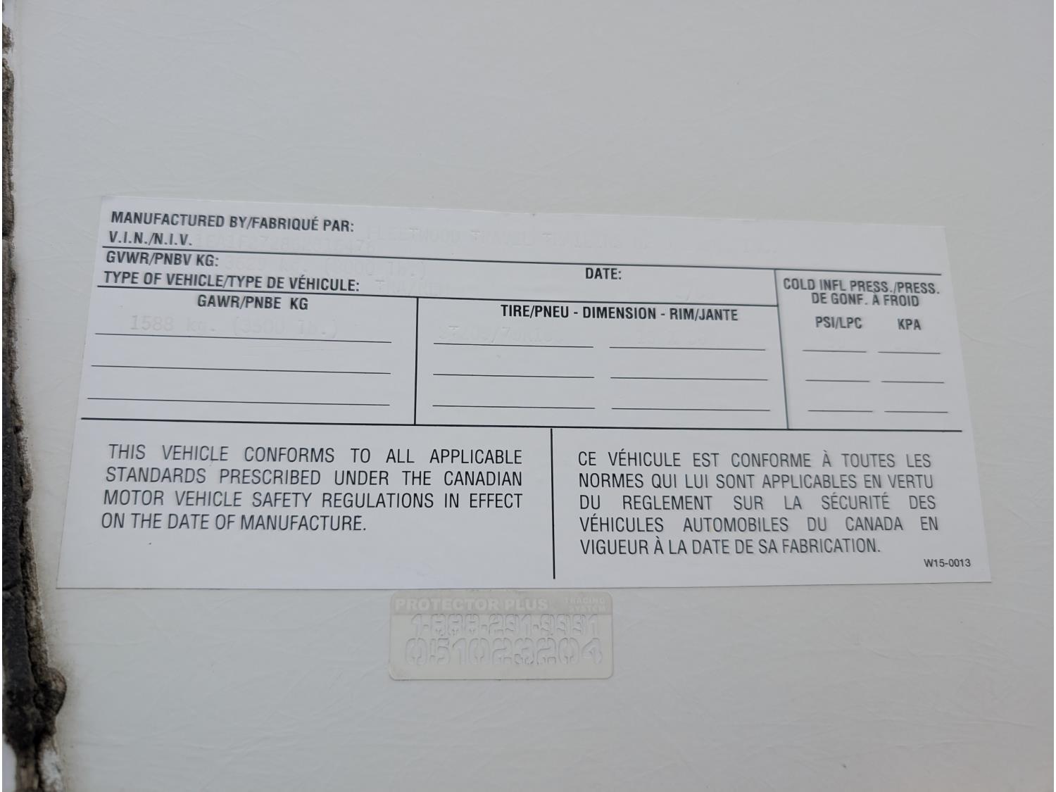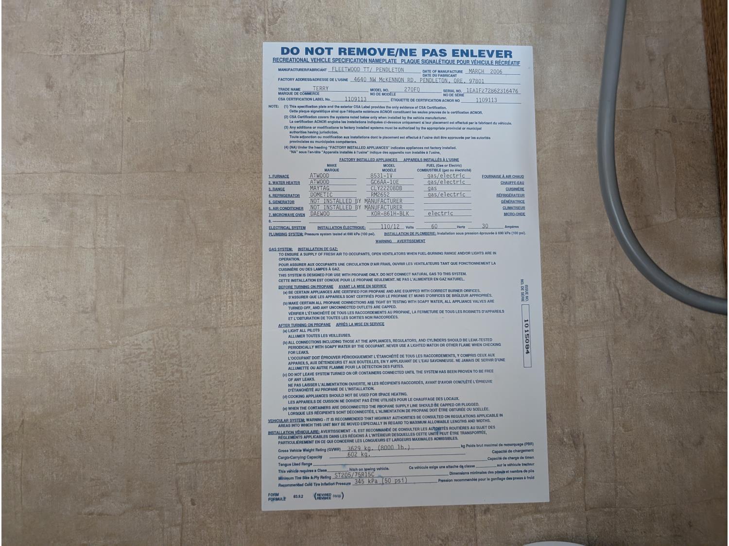 Sleeps 4, stove, fridge, microwave, full bath, master bedroom, outdoor shower, 1 slide, spring suspension, electric brakes, (2) 30 lb propane tanks, 205/75R15 tires