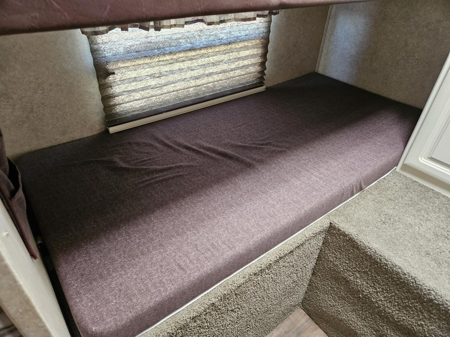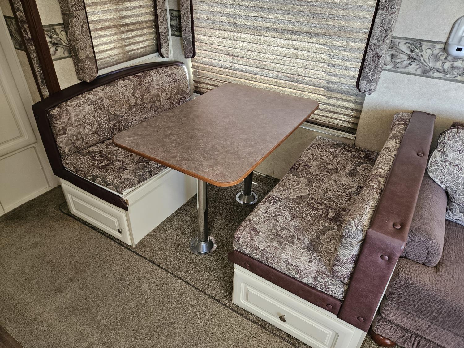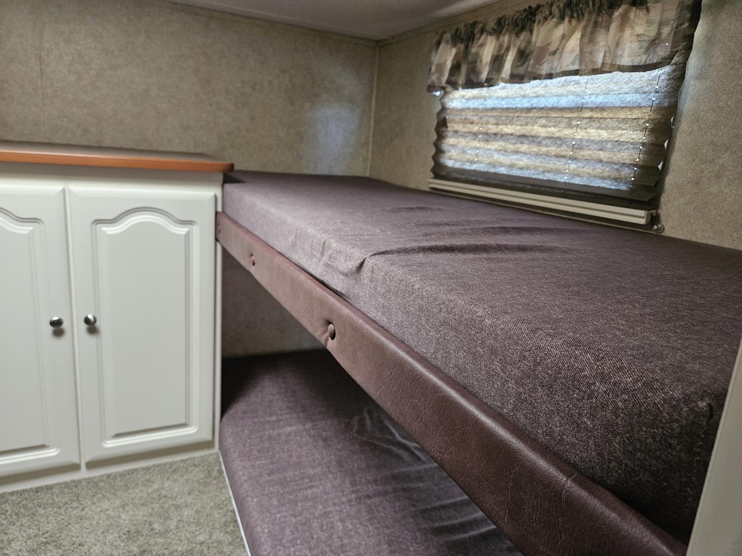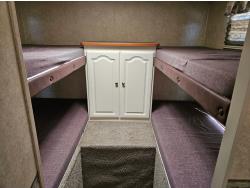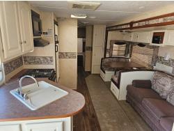 Sleeps 10, stove, fridge, microwave, full bath, A/C, outdoor kitchen, 1 slide, manual awning, spring suspension, electric brakes, quad bunks, dinette, sofa, 225/75R15 tires