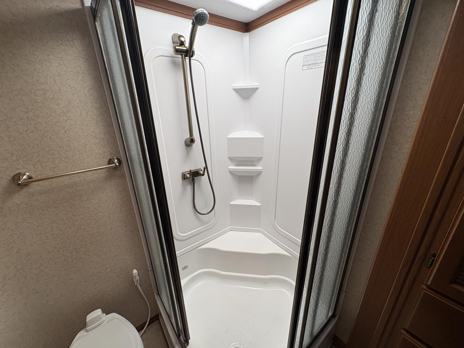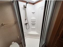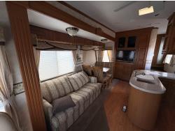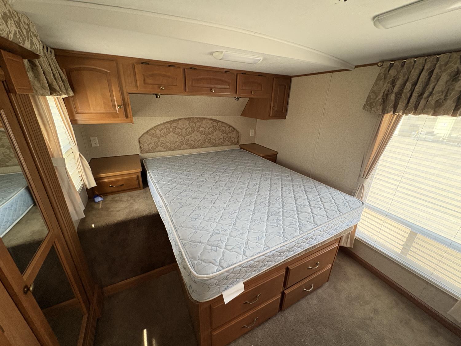 Sleeps 4, stove, fridge, microwave, full bath, master bedroom, A/C, outdoor shower, 3 slides, manual awning, power levelling jacks, electric brakes, 235/80/R16 tires