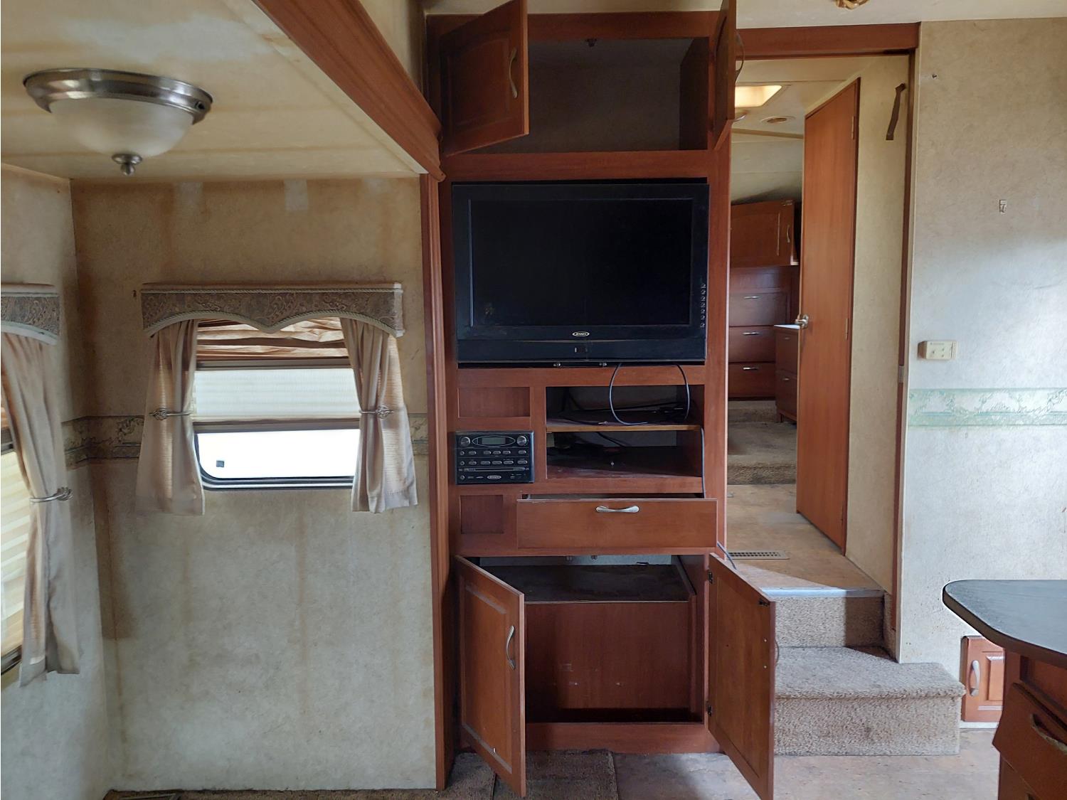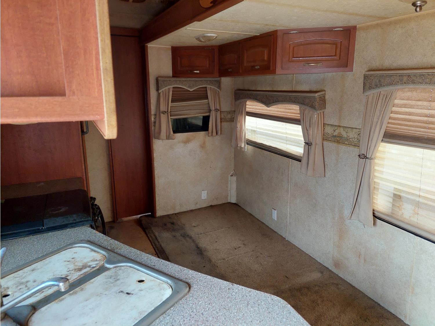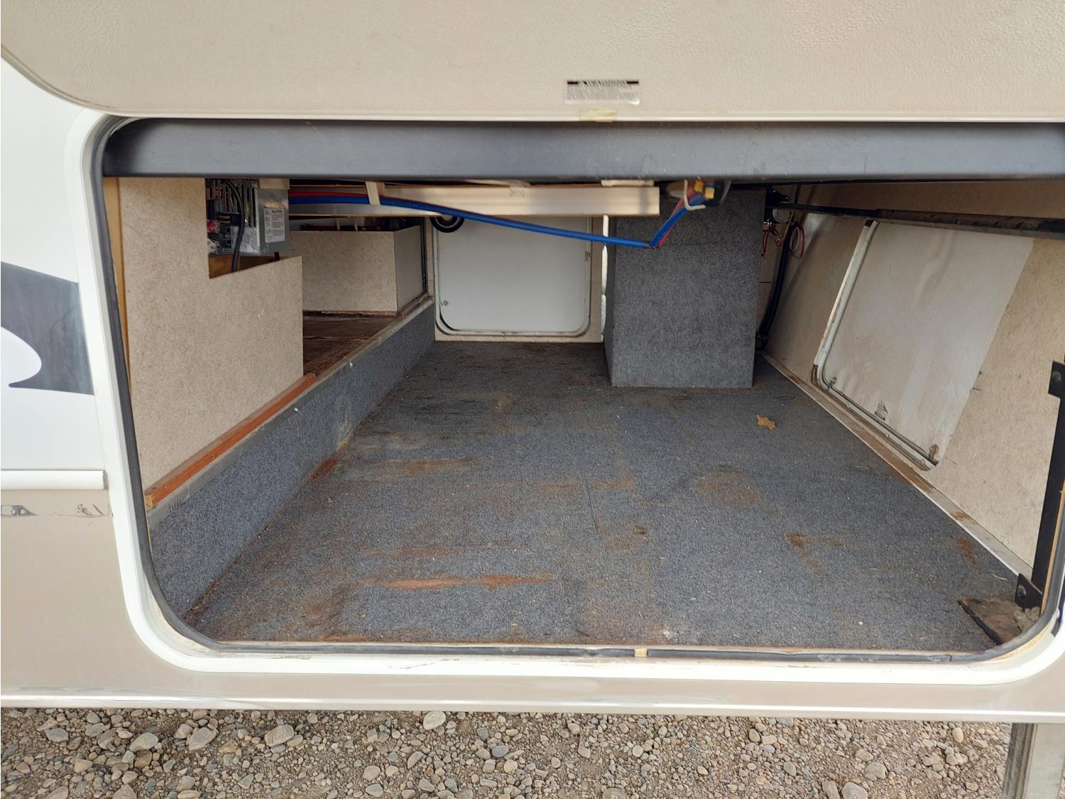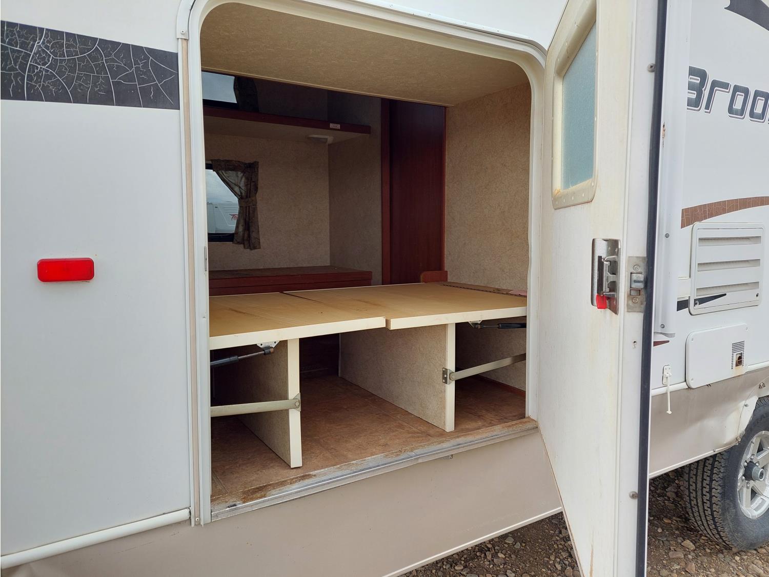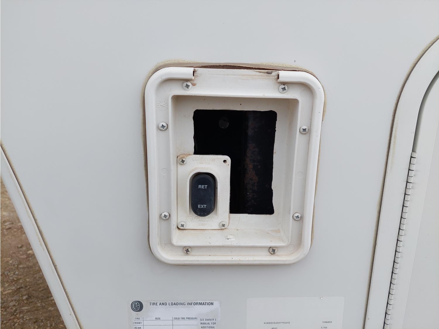 Sleeps 8, stove, fridge, full bath, master bedroom, bunk beds, A/C, outdoor shower, 2 slides, manual awning, spring suspension, electric brakes, 235/80R16 tires