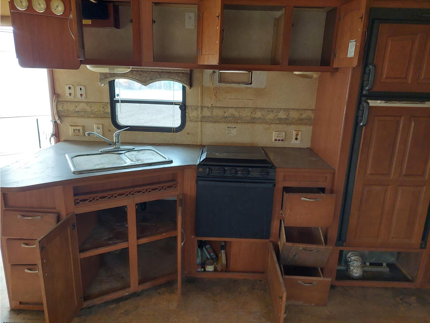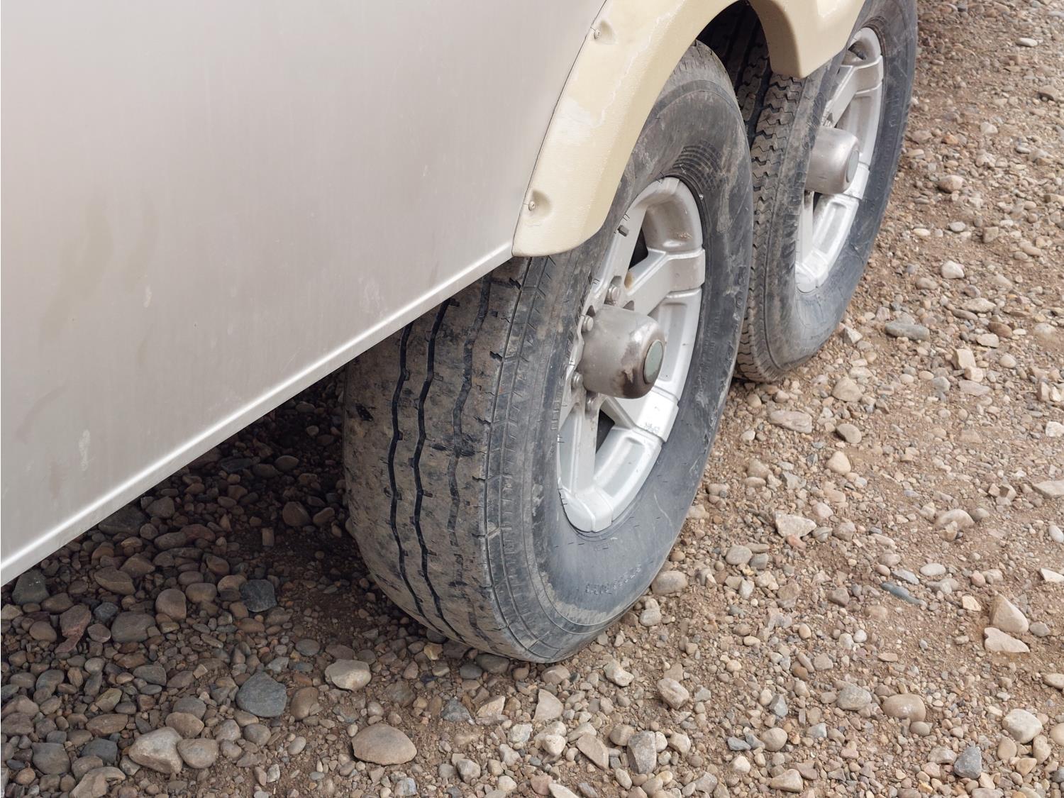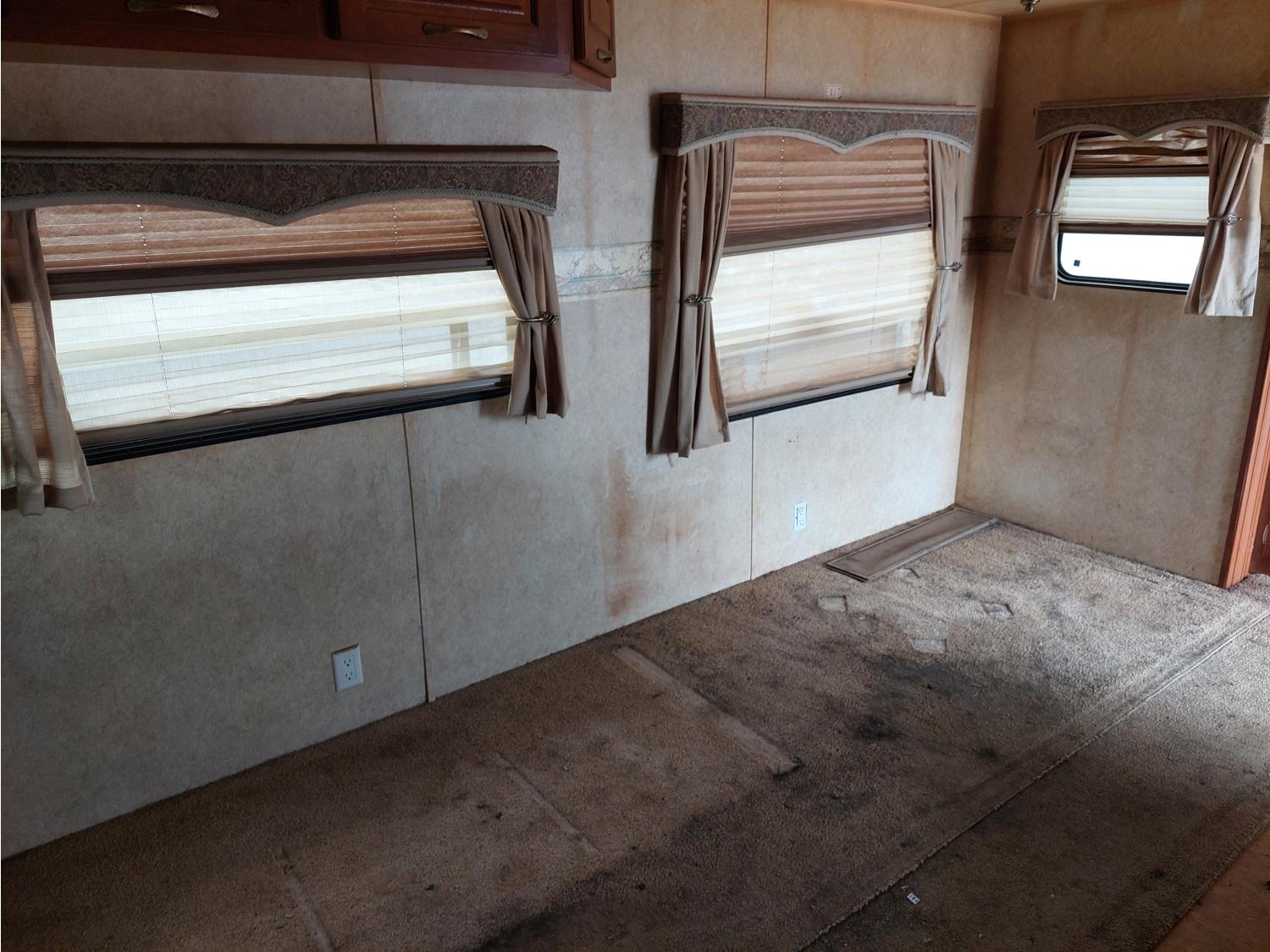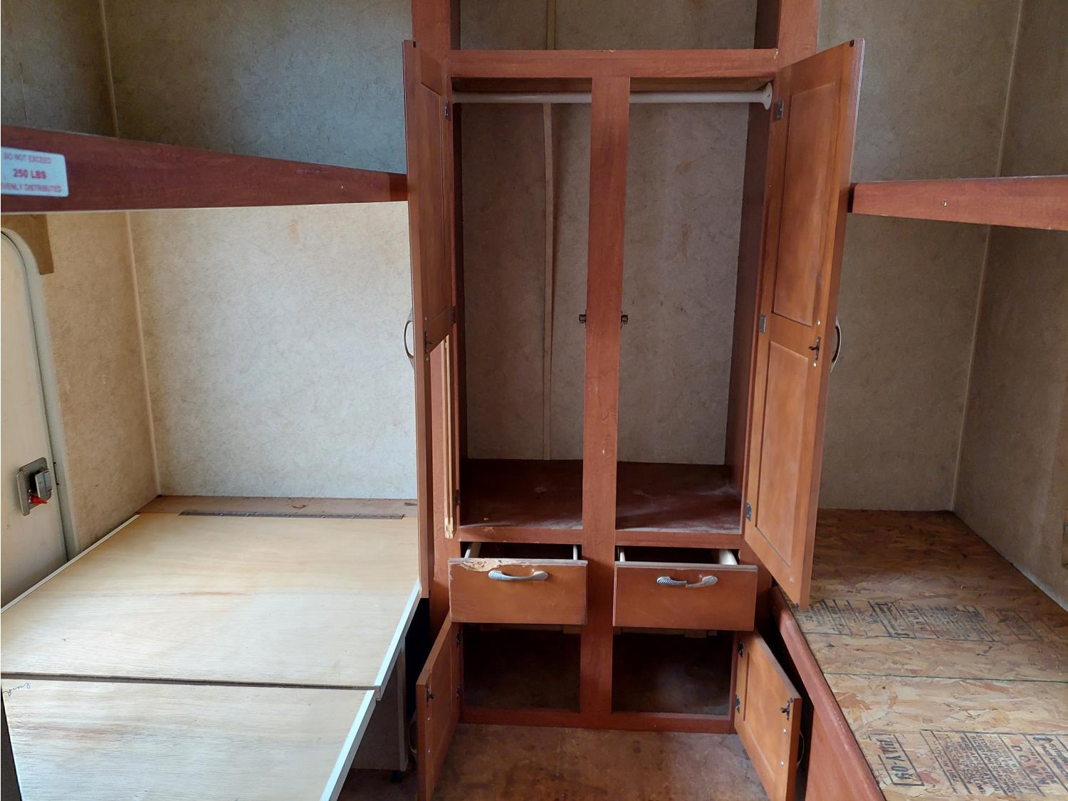 Sleeps 8, stove, fridge, full bath, master bedroom, bunk beds, A/C, outdoor shower, 2 slides, manual awning, spring suspension, electric brakes, 235/80R16 tires
