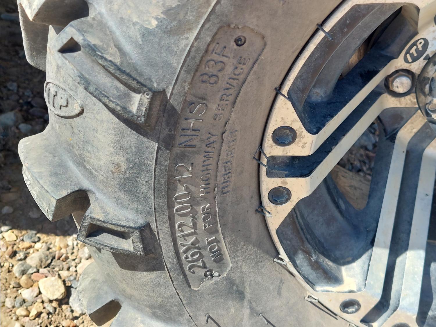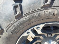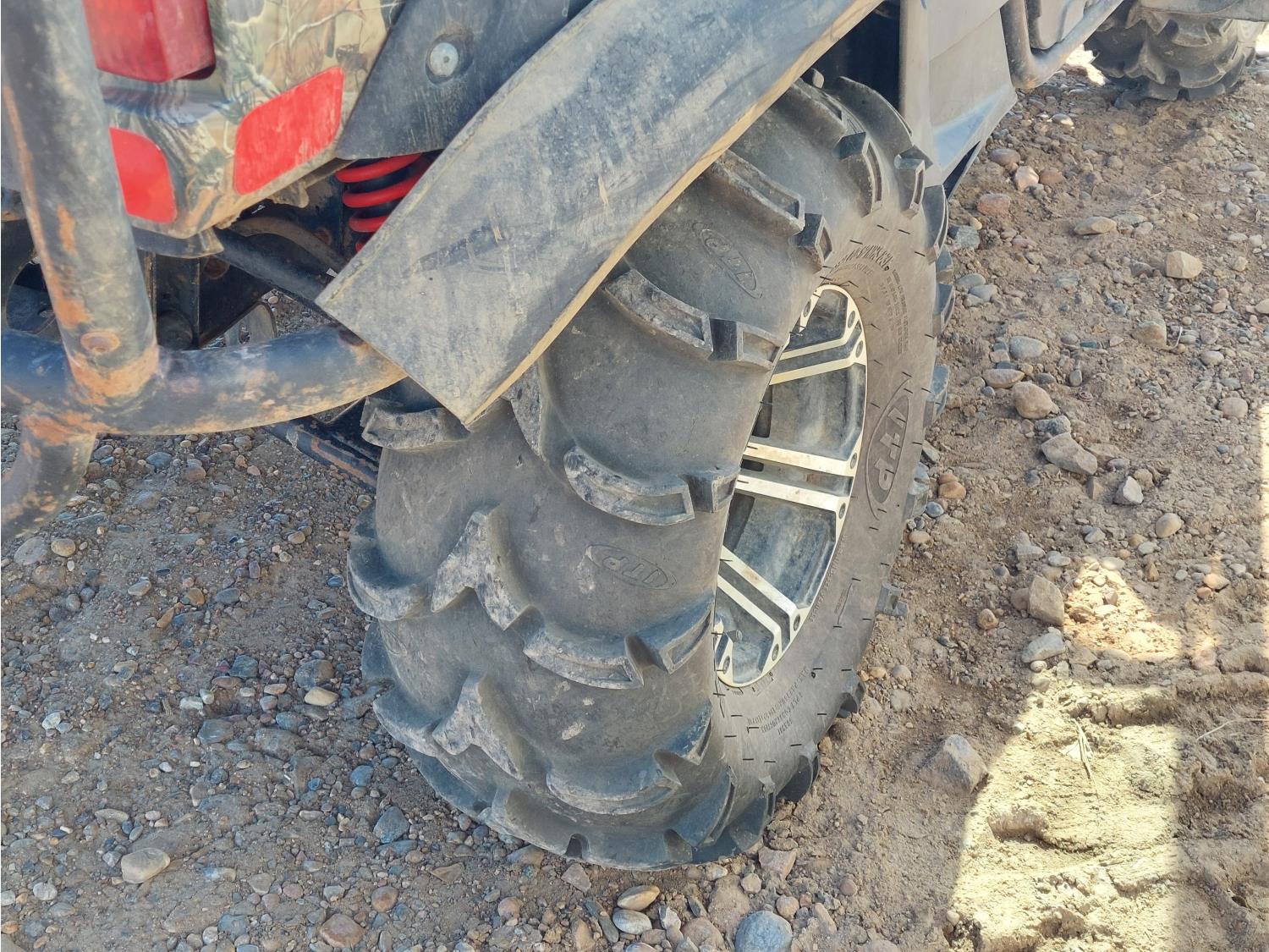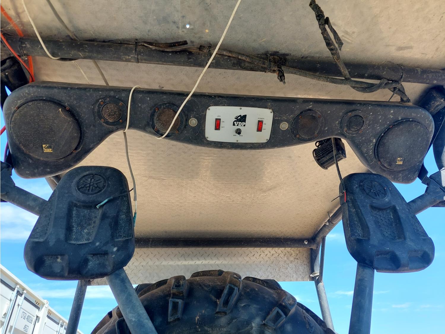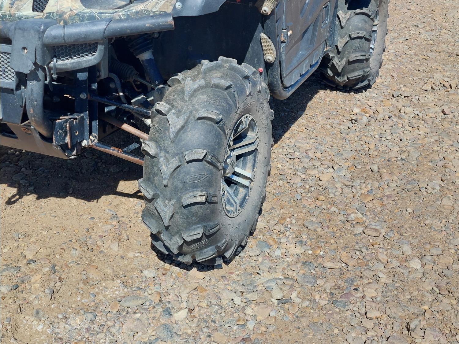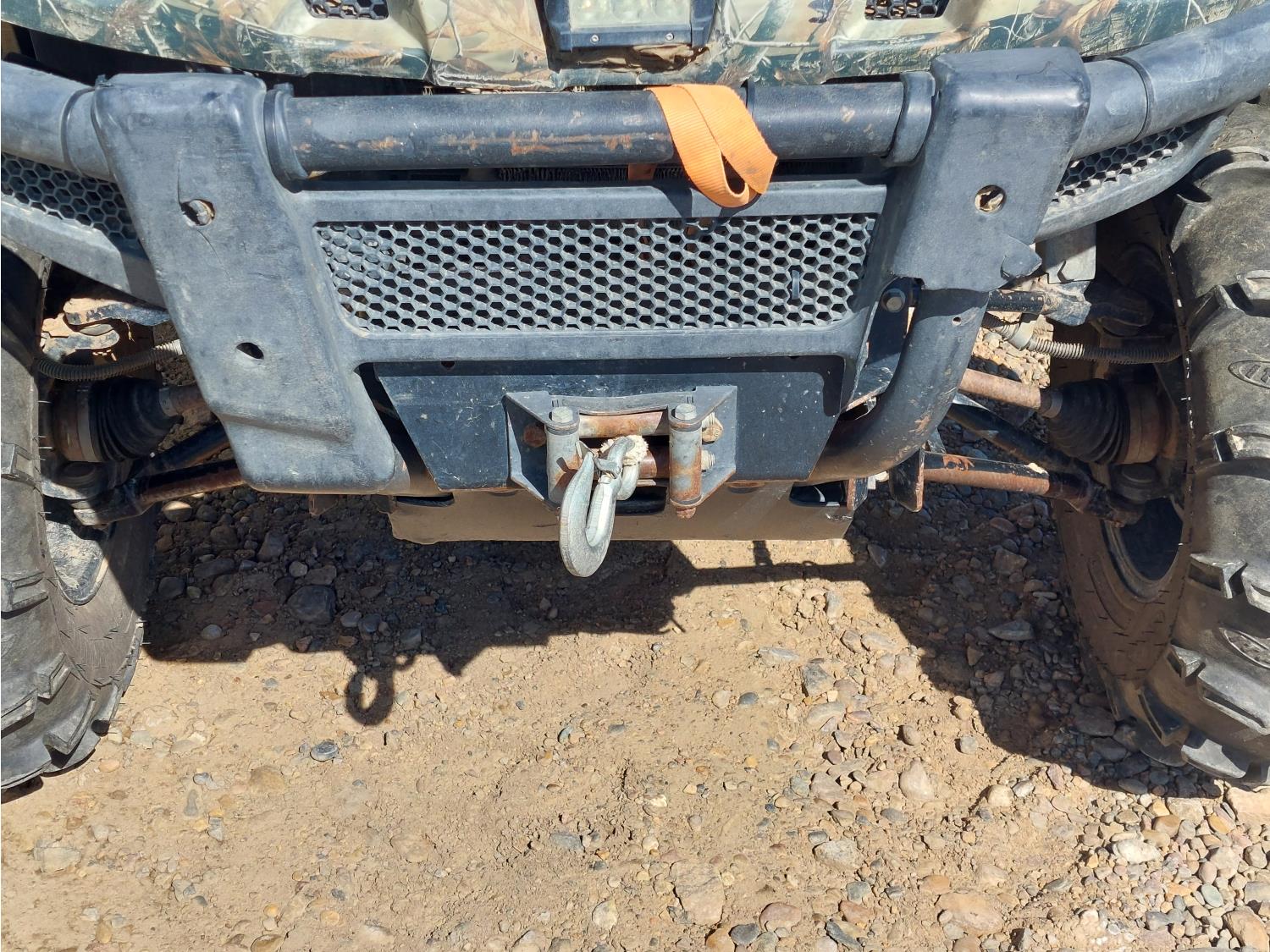 700 cc fuel injected water cooled engine, automatic transmission, Hi/Lo range, reverse, 2 door enclosed cab, heater, windshield, 60 inch front blade, front winch, hitch, independent suspension, VDP sound and light bar, LED lights, secondary seat, extended roof, spare 26x12.00-12 tire on rim, aluminum wheels, 26X10.00-12 front tires, 26X12.00-12 rear tires