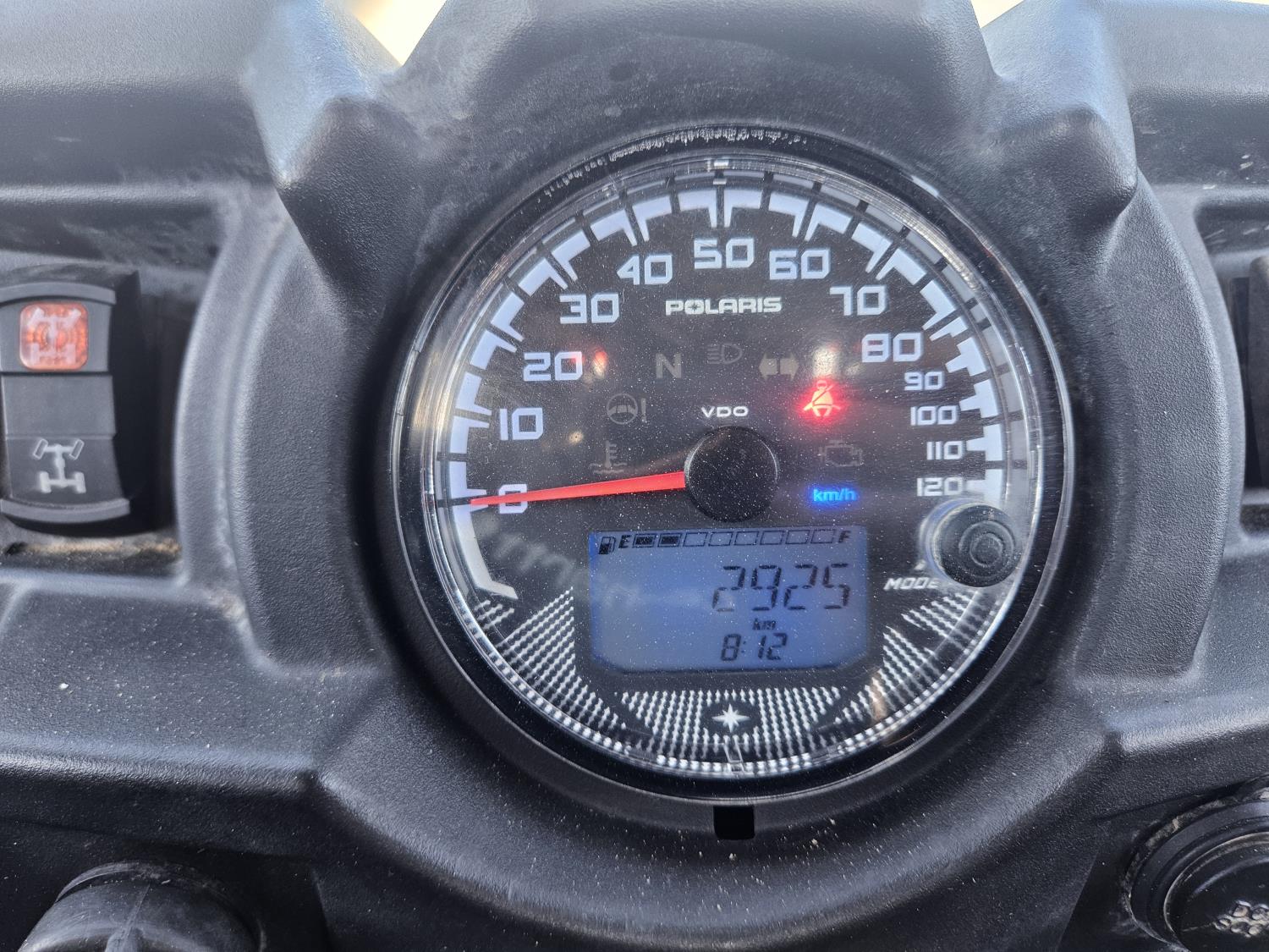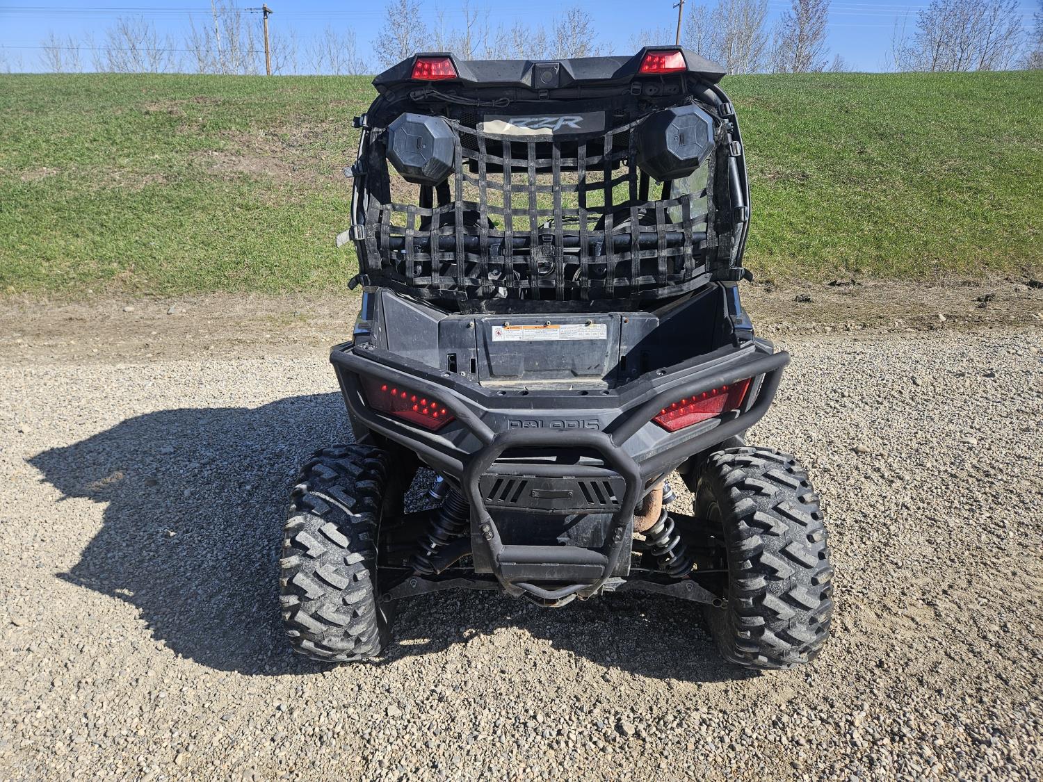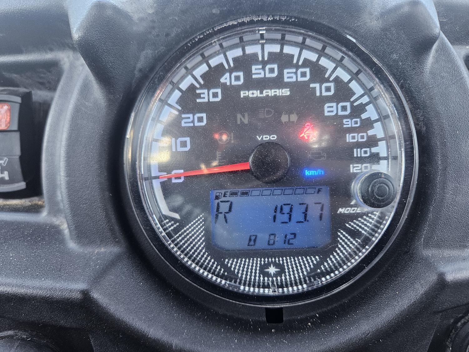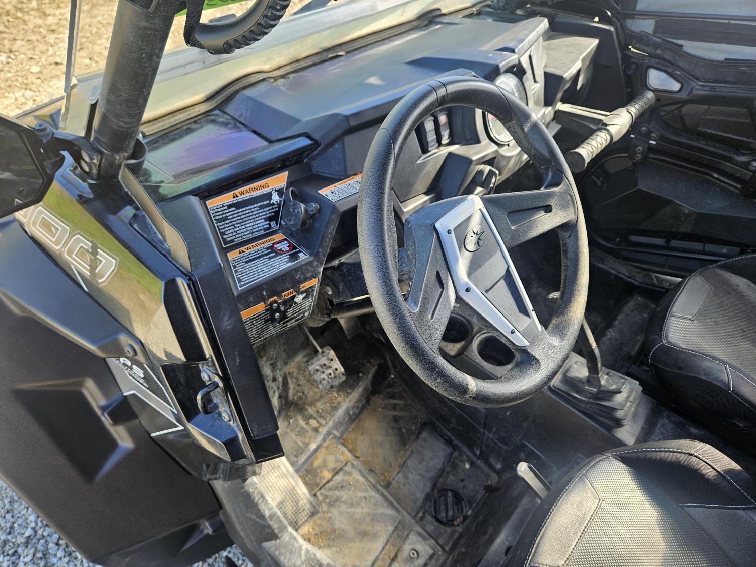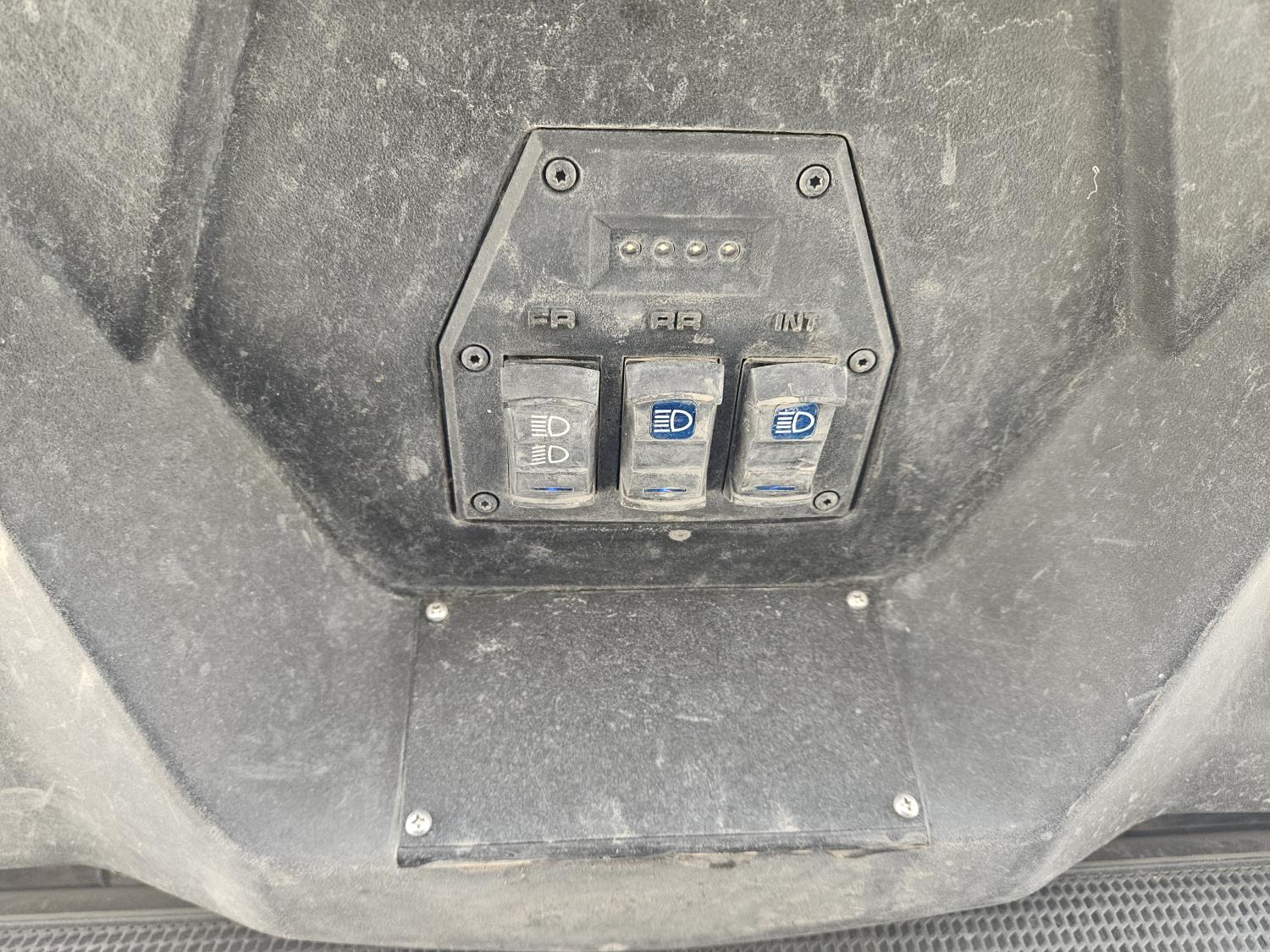 1000 cc fuel injected water cooled engine, automatic transmission, Hi/Lo range, reverse, 2 door enclosed cab, 2 passengers, windshield, front winch, hitch, sound system, Fox shocks, 27X9.00-12 front tires, 27X11.00-12 rear tires