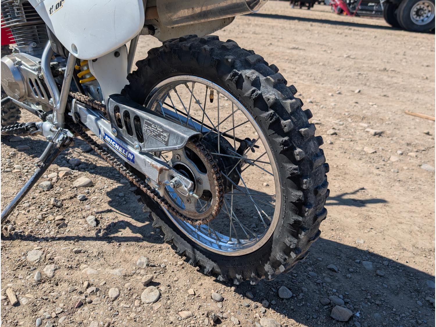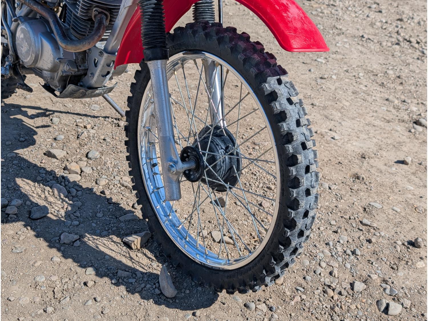 100 cc four stroke, 70/100-19 front tire, 90/100-16 rear tire