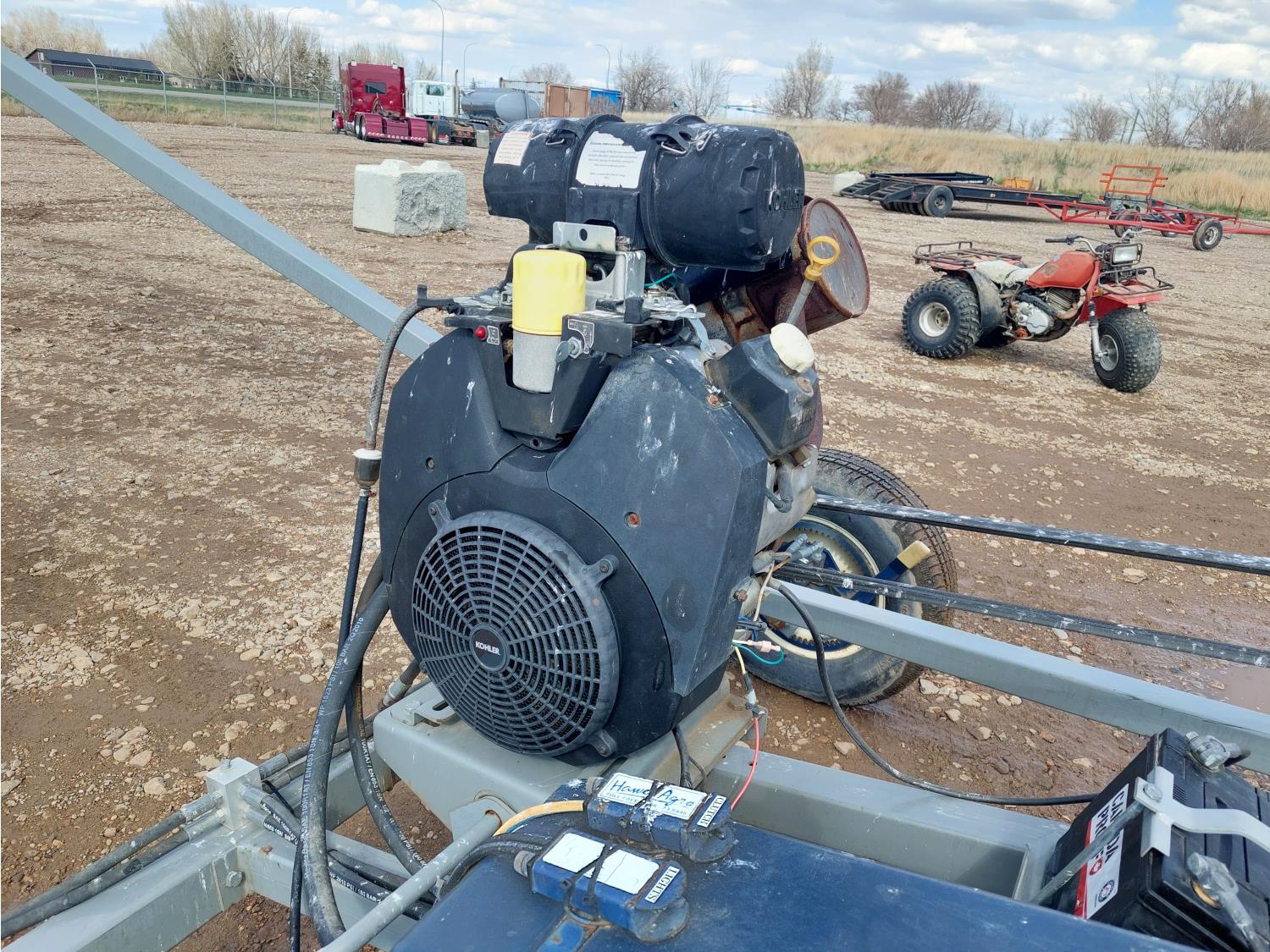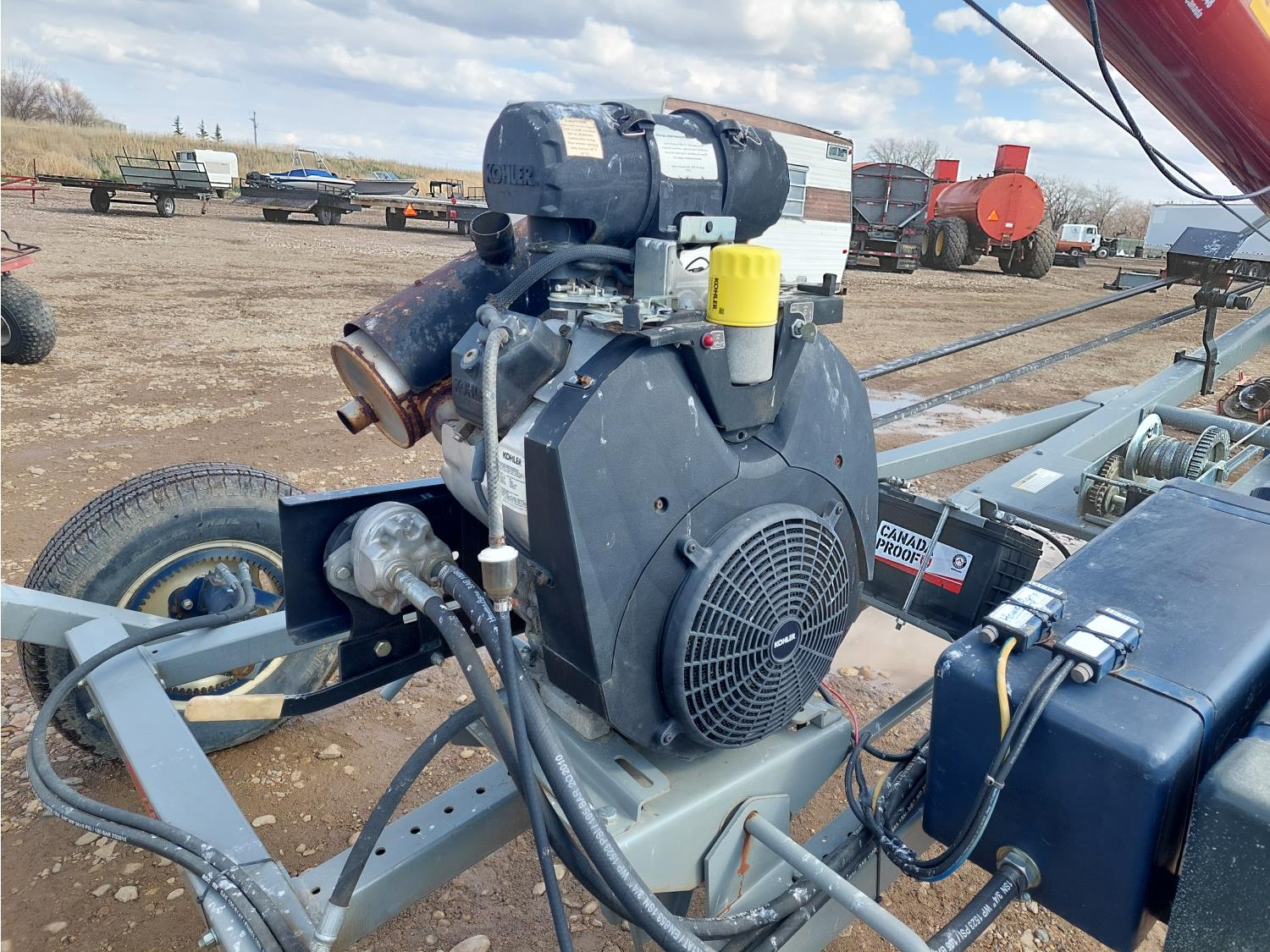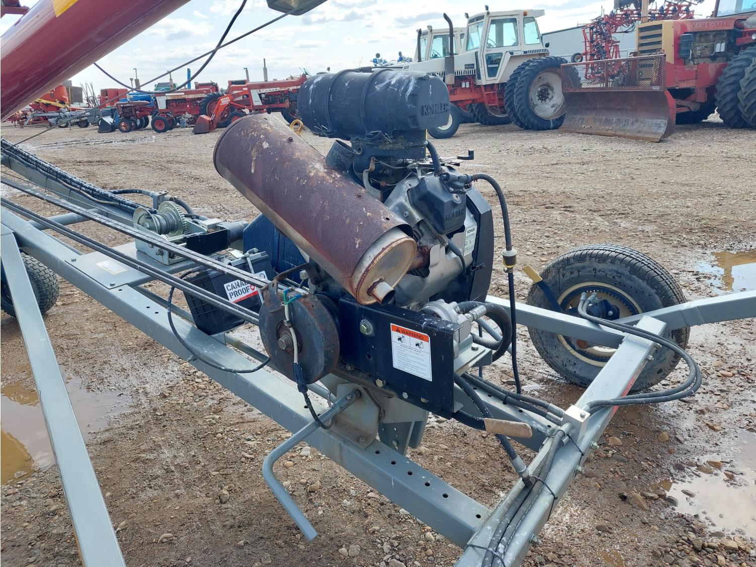 Kohler CH980 999 cc electric start gas engine, includes (6) 10 inch D x 30 inch L bin sweep sections, hand winch lift, work lights, hydraulic auger mover, 225/75R15 tires
