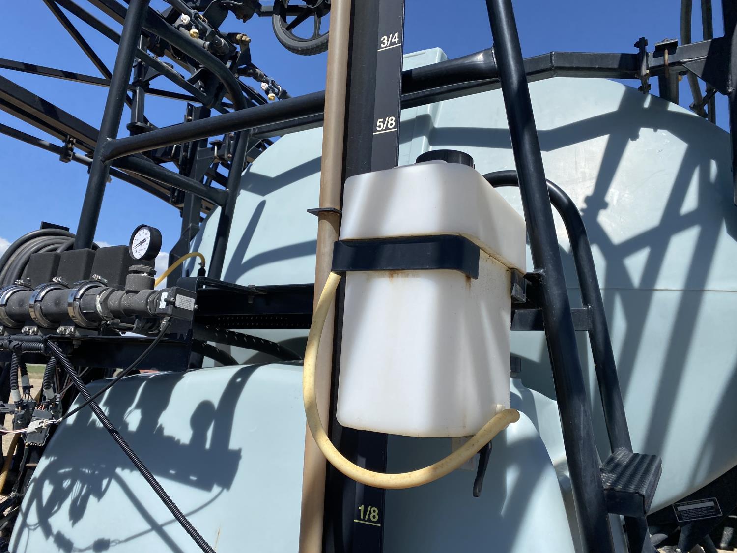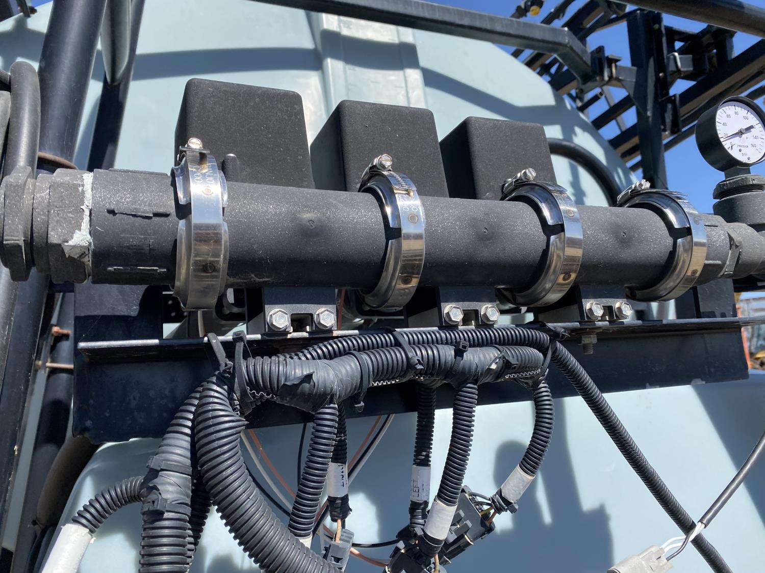 1500 US gallon poly tank, 3 nozzle bodies, 2 sectional controls, hydraulic drive, Flexicoil monitor, chemical mix tank, rinse tank, 14.9R46 tires