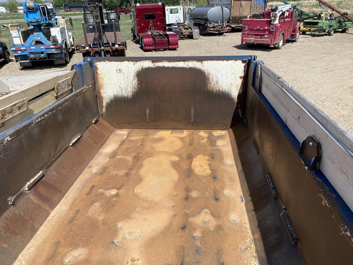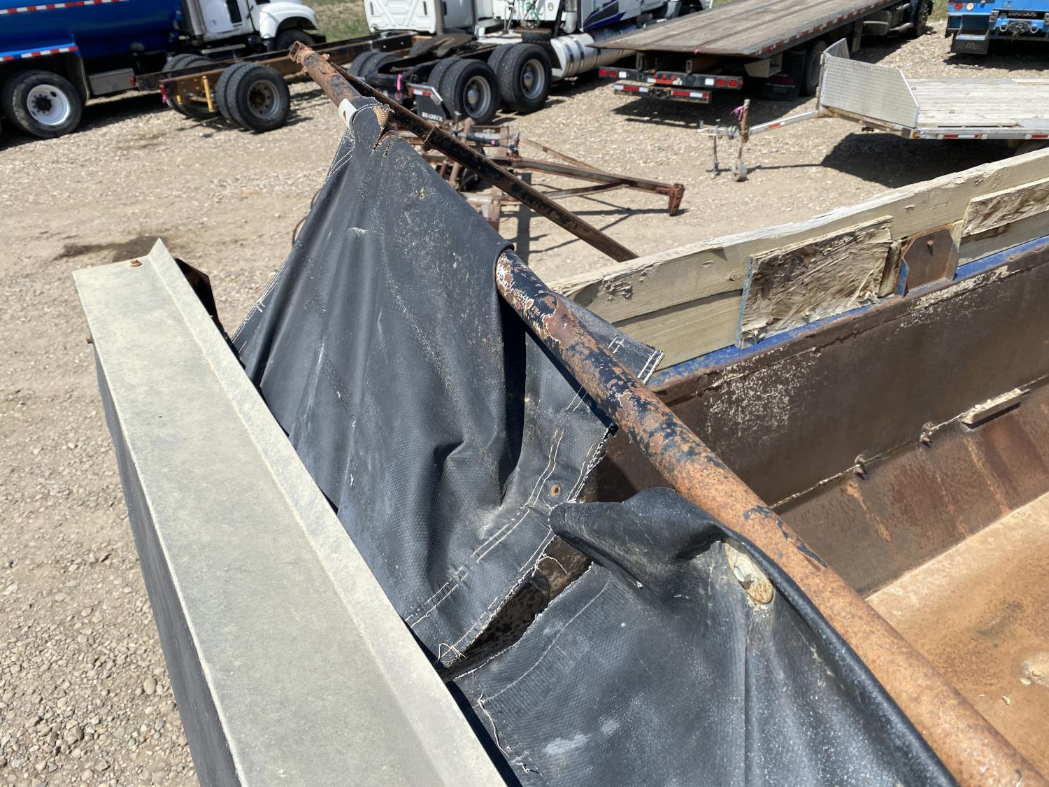 Pintle hitch, 7 ft 6 inch box width, 42 inch side wall height, roll tarp, spreader chains, air tail gate, air brakes, spring suspension, all aluminum wheels, 11R24.5 tires