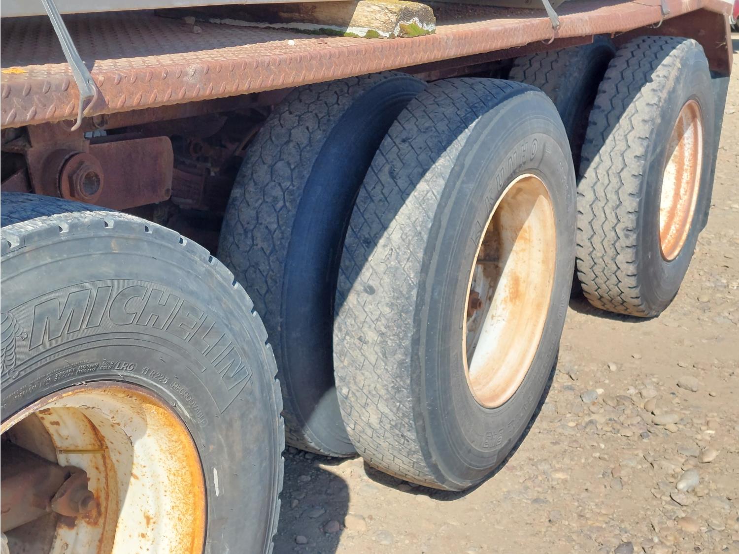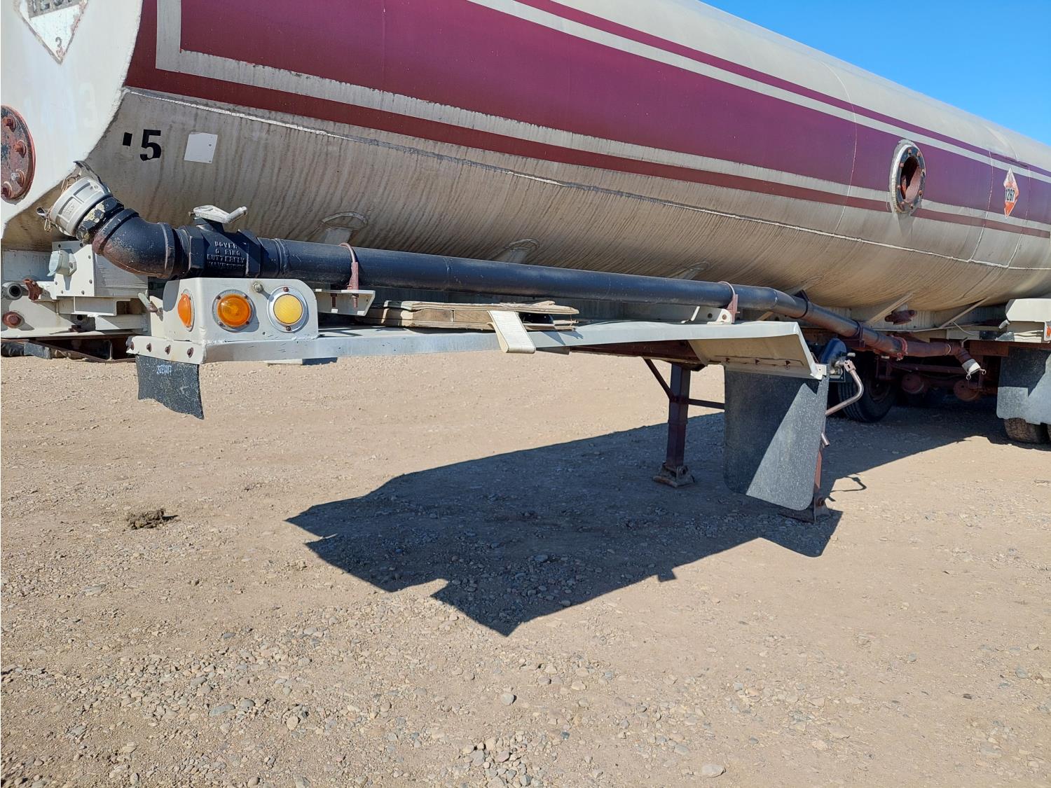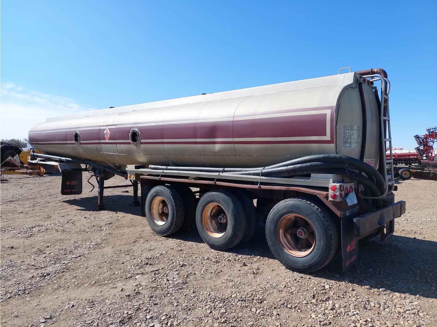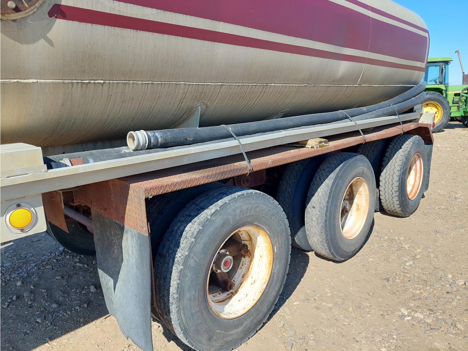 2 baffled compartments, 40,000 Liter total capacity, 4 inch inlet, 3 inch outlets, (4) 3 inch D hoses, spring suspension, 11R22.5 tires