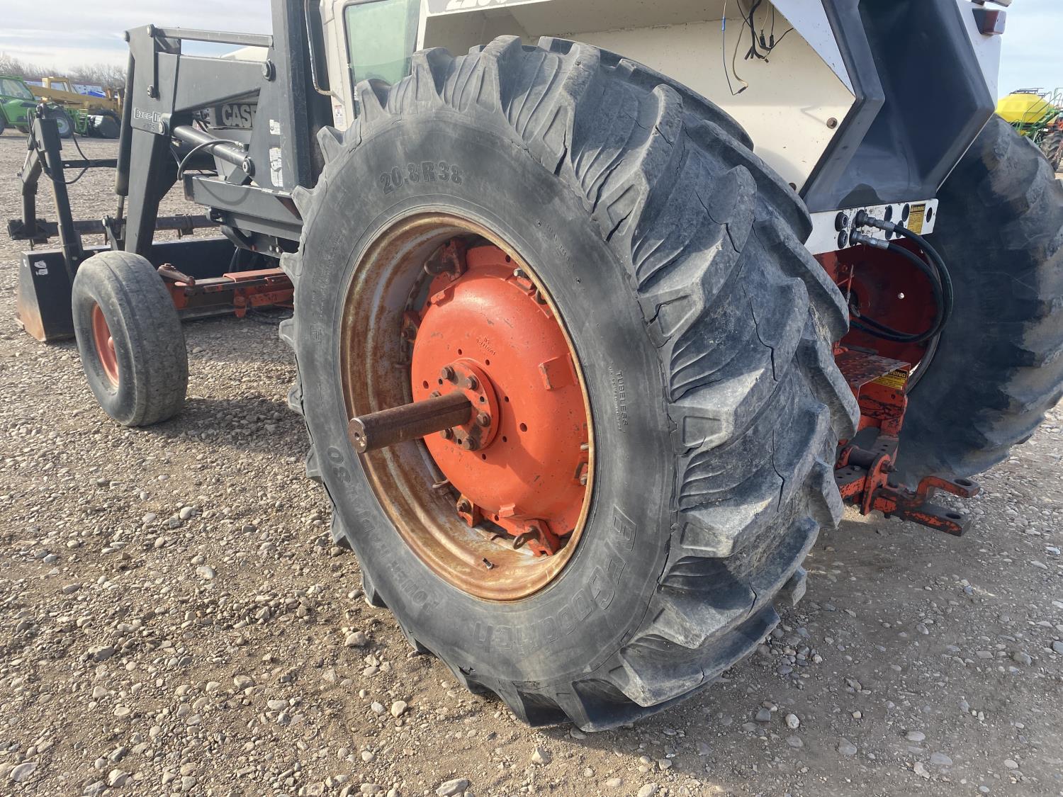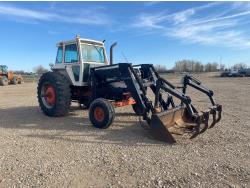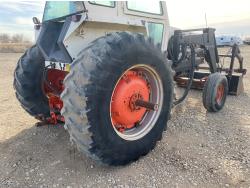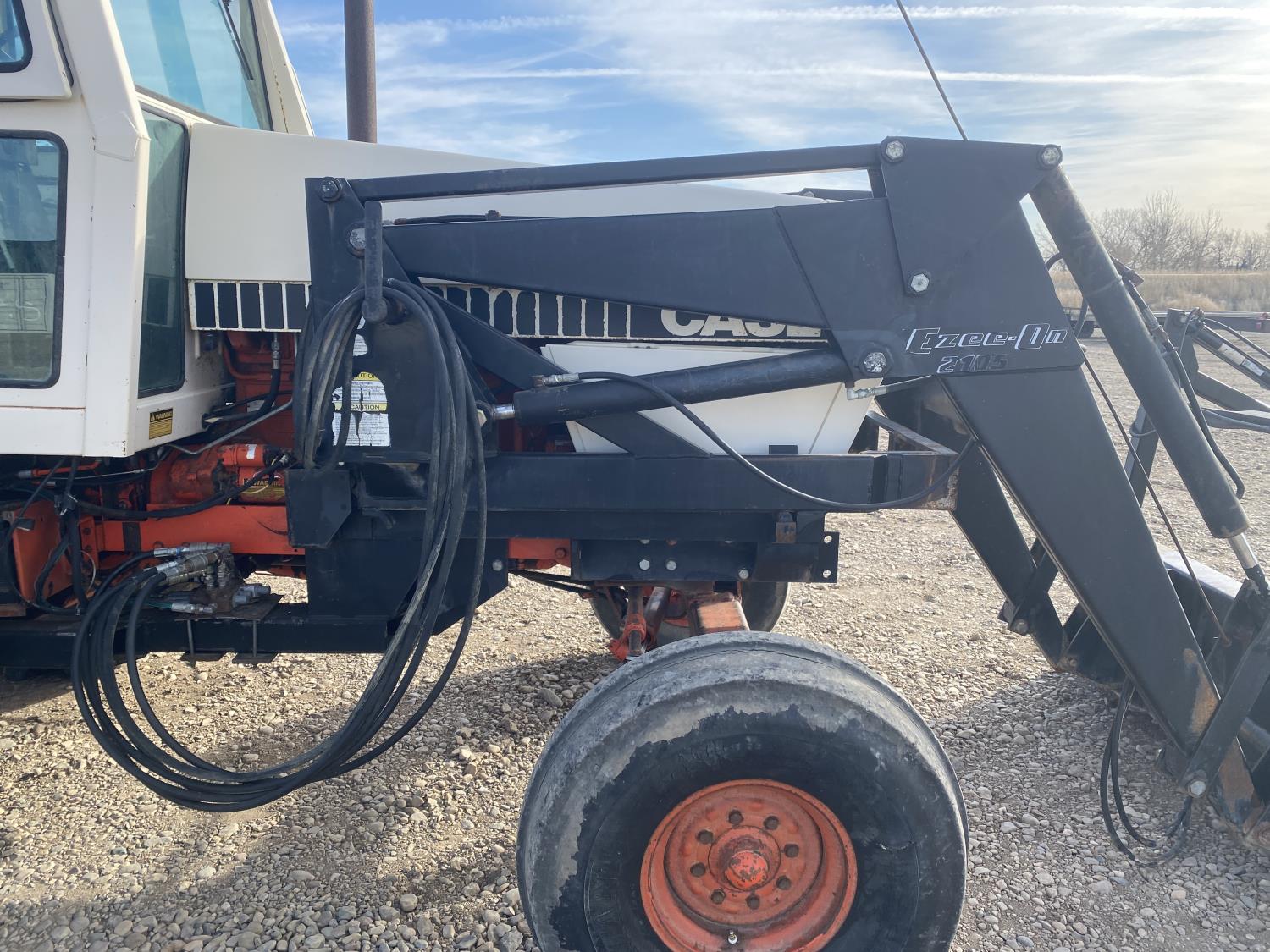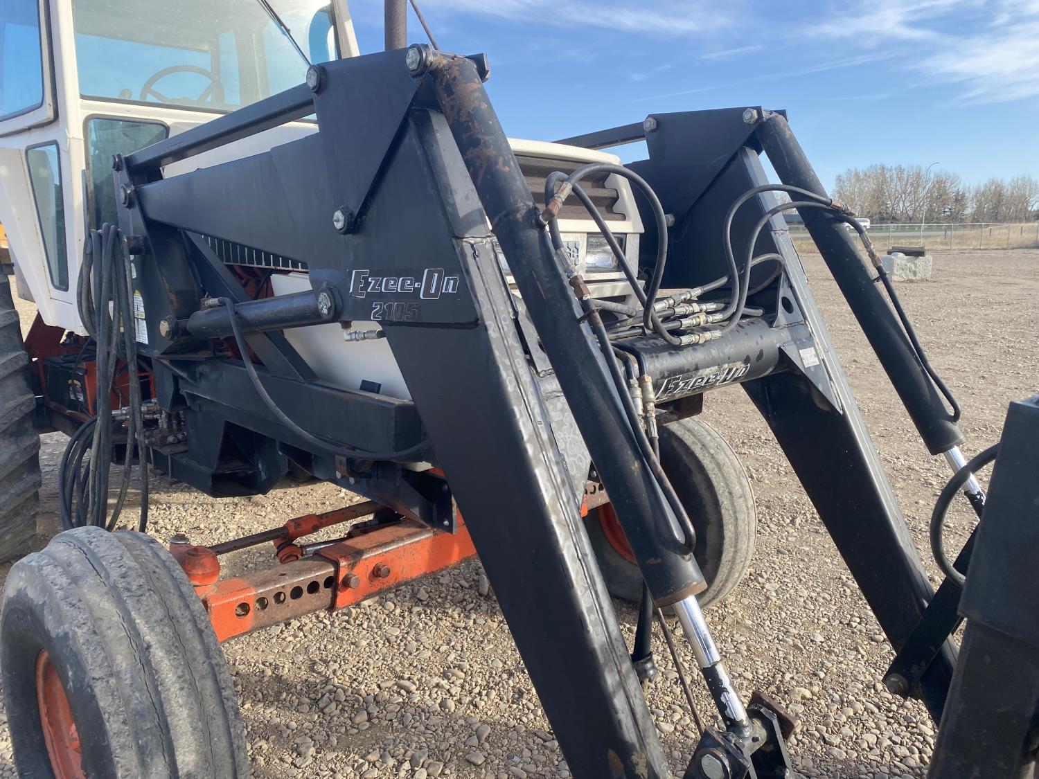 Ezee-On 2105 loader, 84 inch bucket, grapple, 8.3 L 6 cylinder 143 HP, diesel engine, 129 PTO HP, 12 speed partial power shift transmission, 21 GPM hydraulic pump, cab, ROPS, rear differential lock, A/C, 540/1000 PTO, 2 rear hydraulic outlets, 11-16S front tires, 20.8R38 rear tires