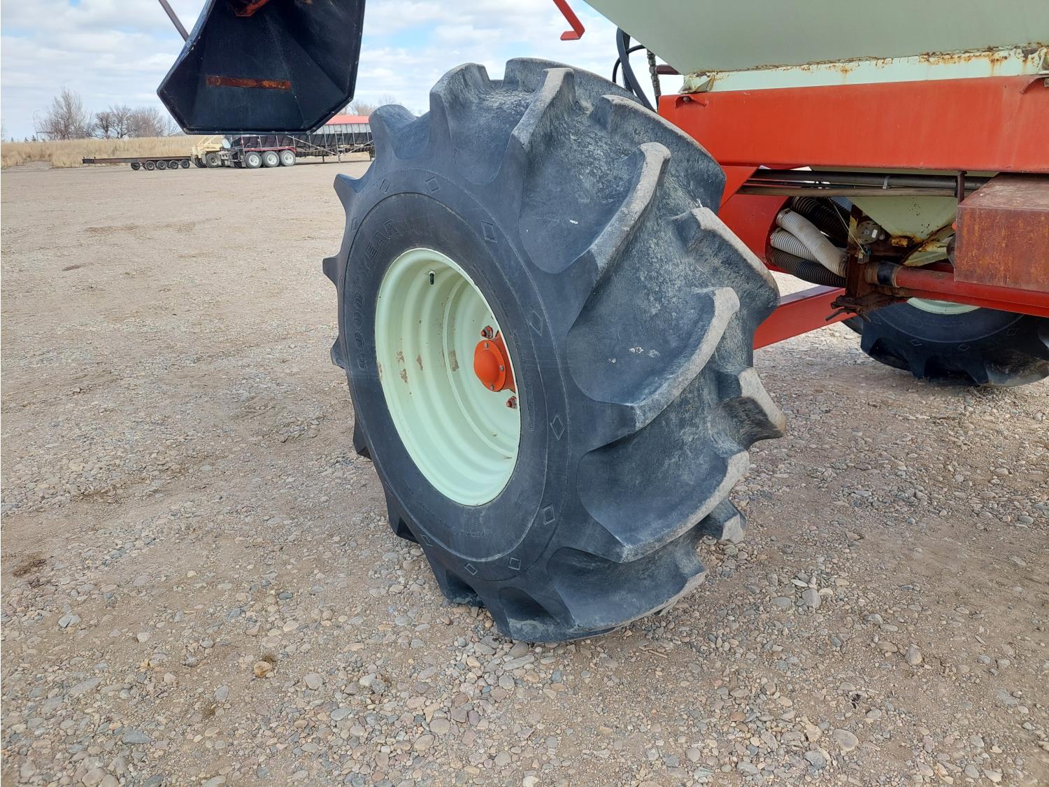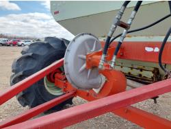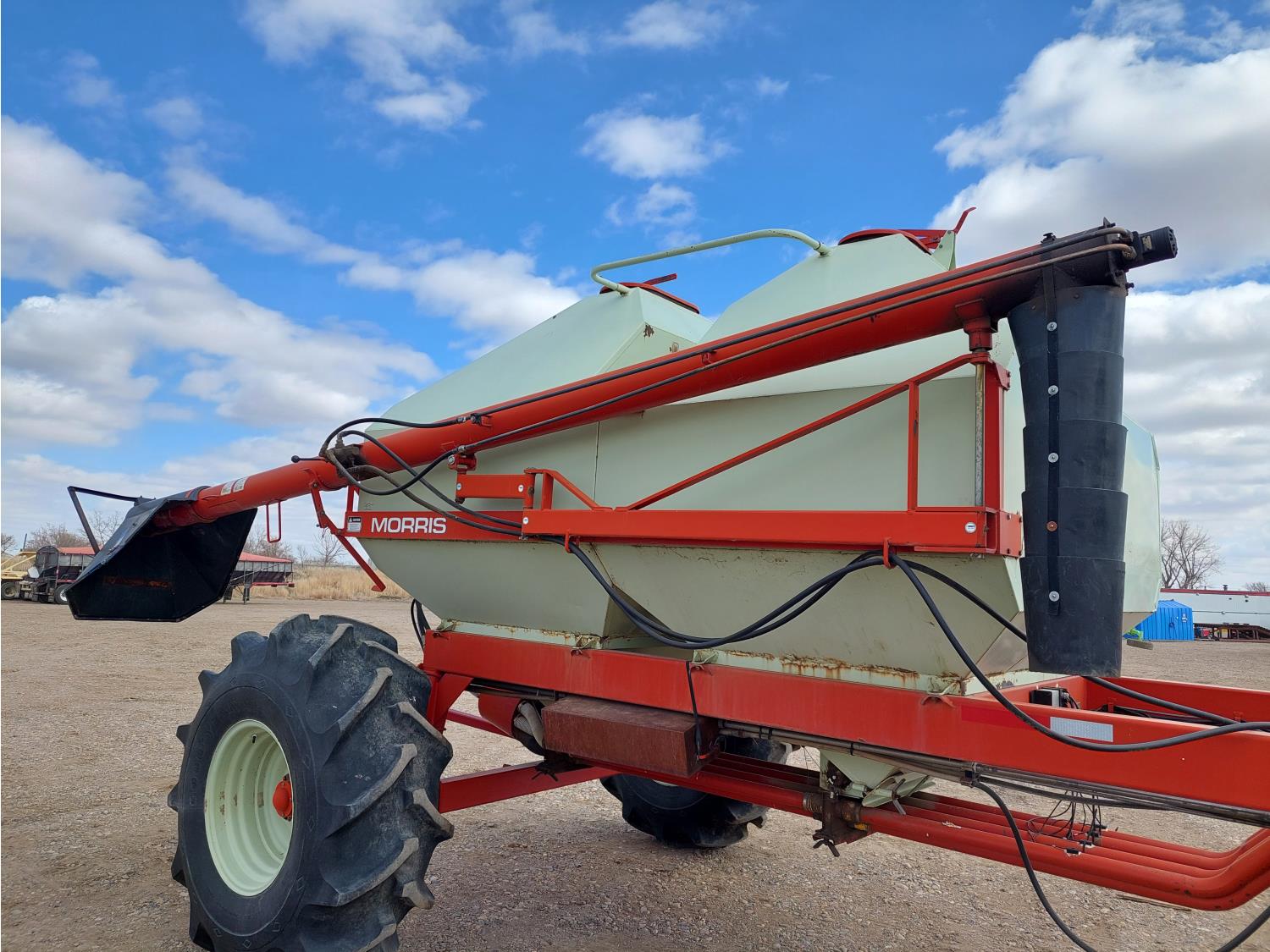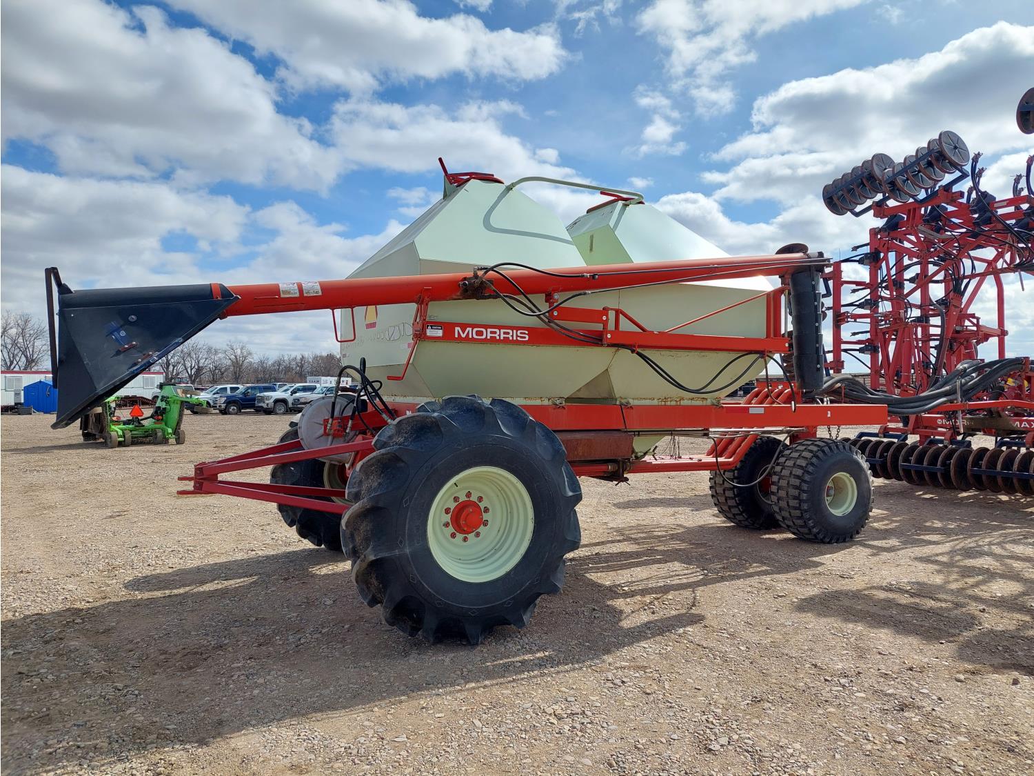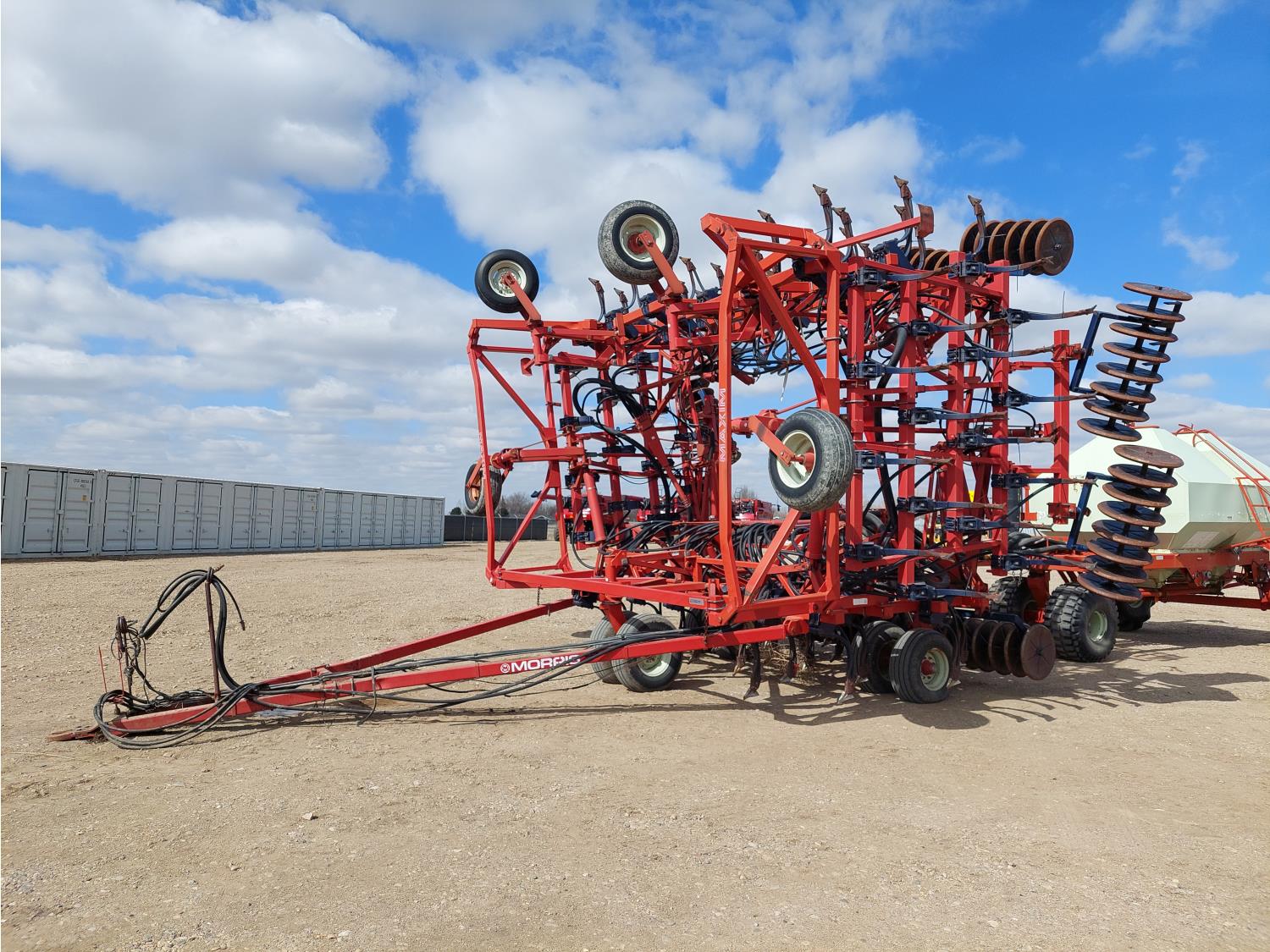 7 inch spacing, single shoot openers, 2 inch steel packers, seed monitor, Morris M21082 RO monitors, Air Cart: 2 compartments, 6 inch loading auger, single fan, 11L-15FI drill tires, 21.5L-16.1SL front tires, 21.5L-16.1SL rear tires