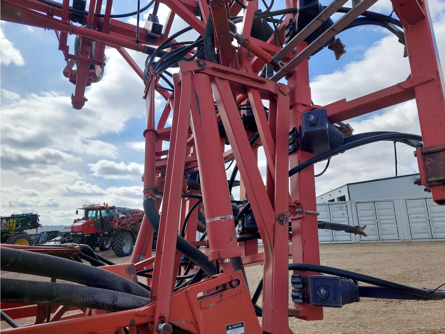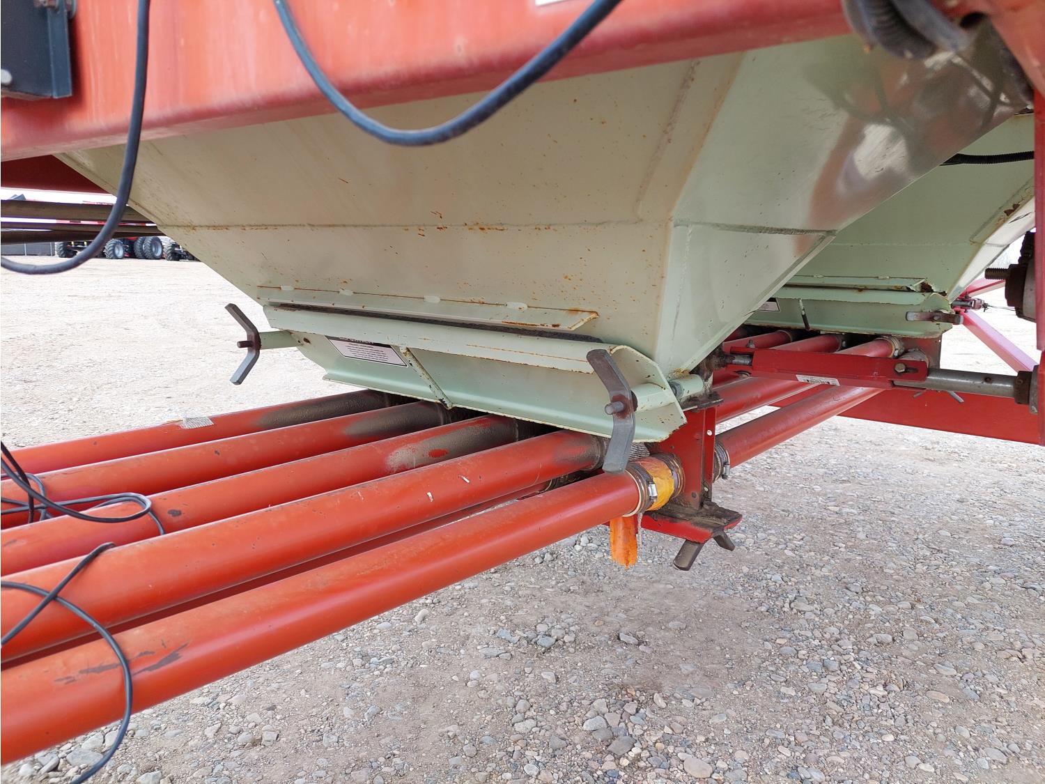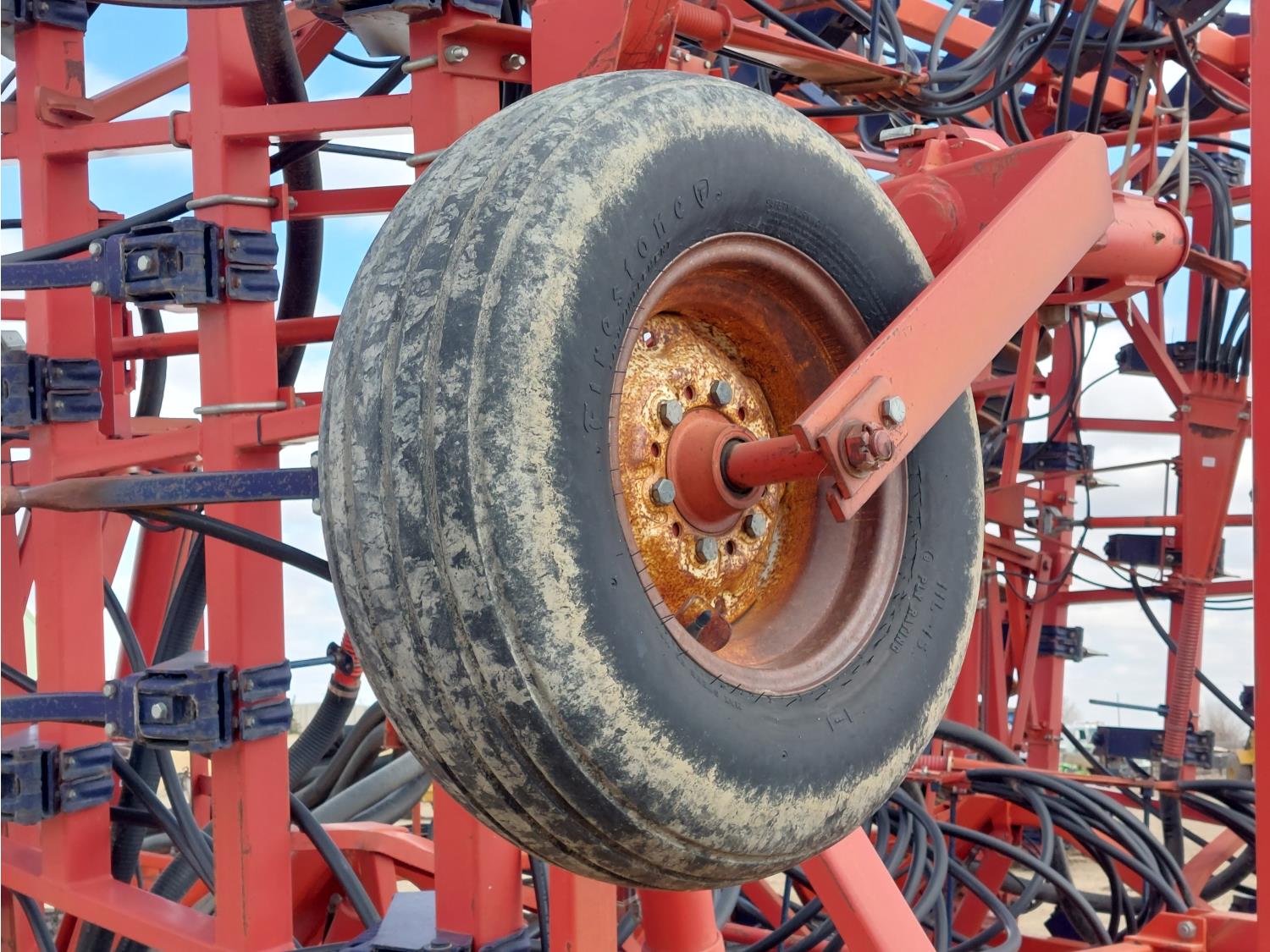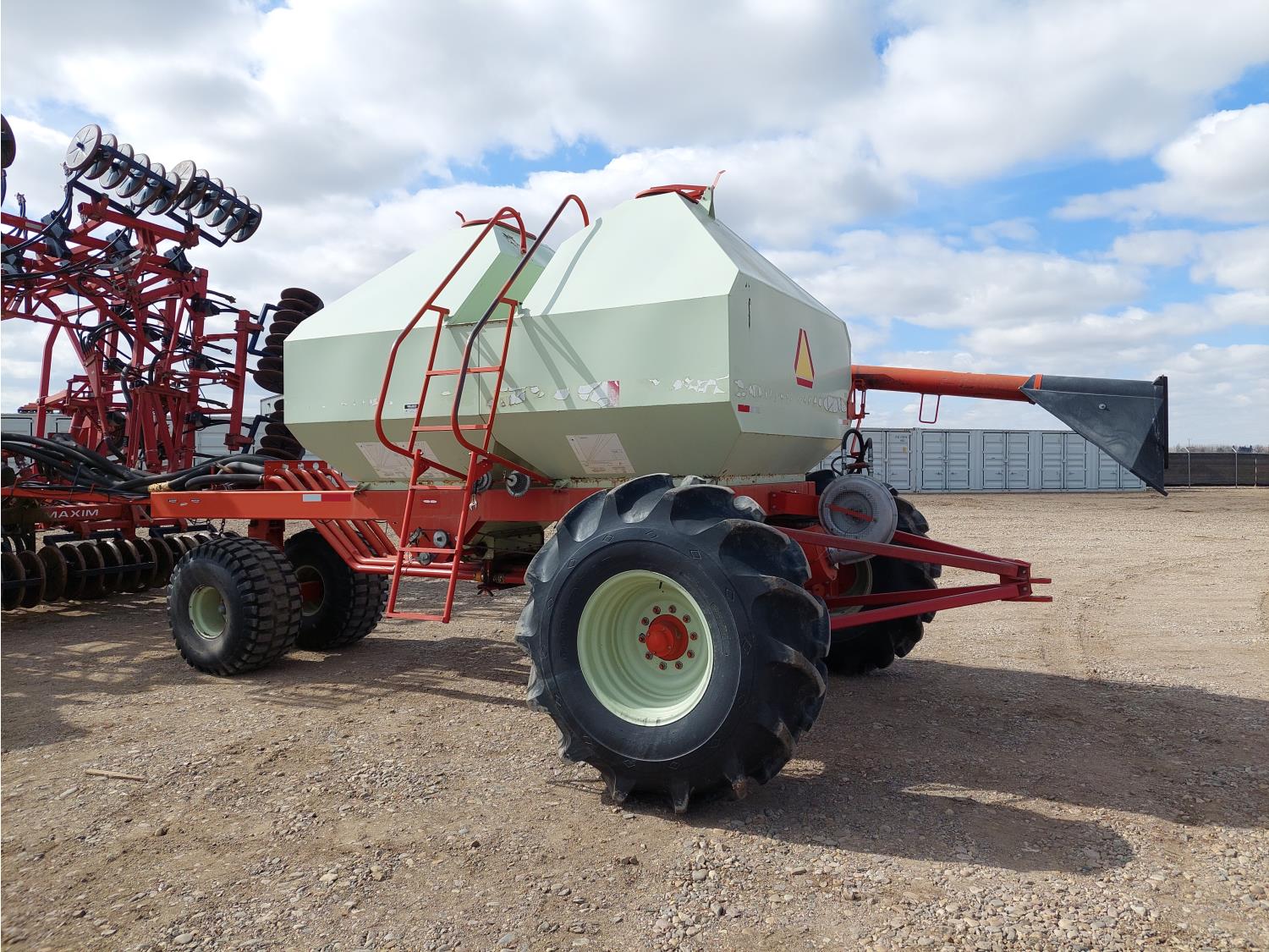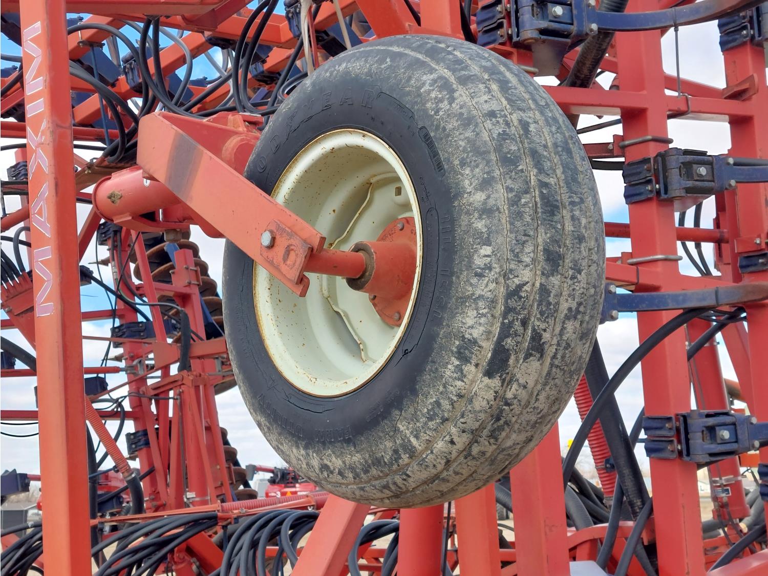 7 inch spacing, single shoot openers, 2 inch steel packers, seed monitor, Morris M21082 RO monitors, Air Cart: 2 compartments, 6 inch loading auger, single fan, 11L-15FI drill tires, 21.5L-16.1SL front tires, 21.5L-16.1SL rear tires