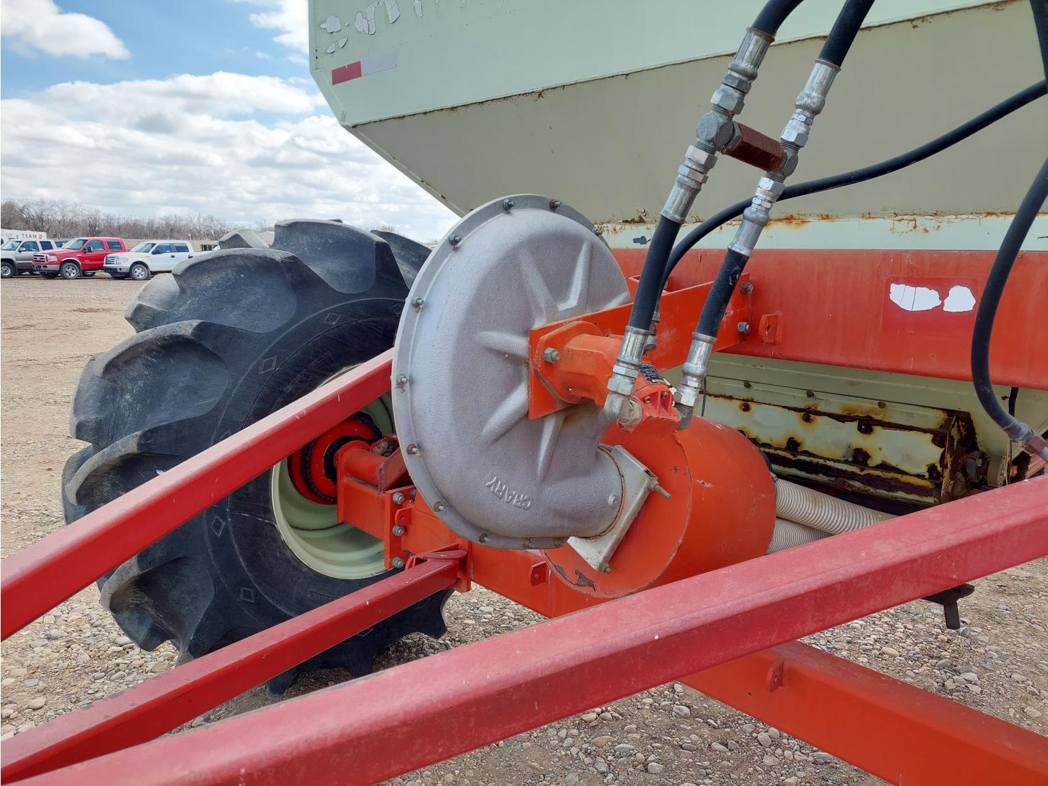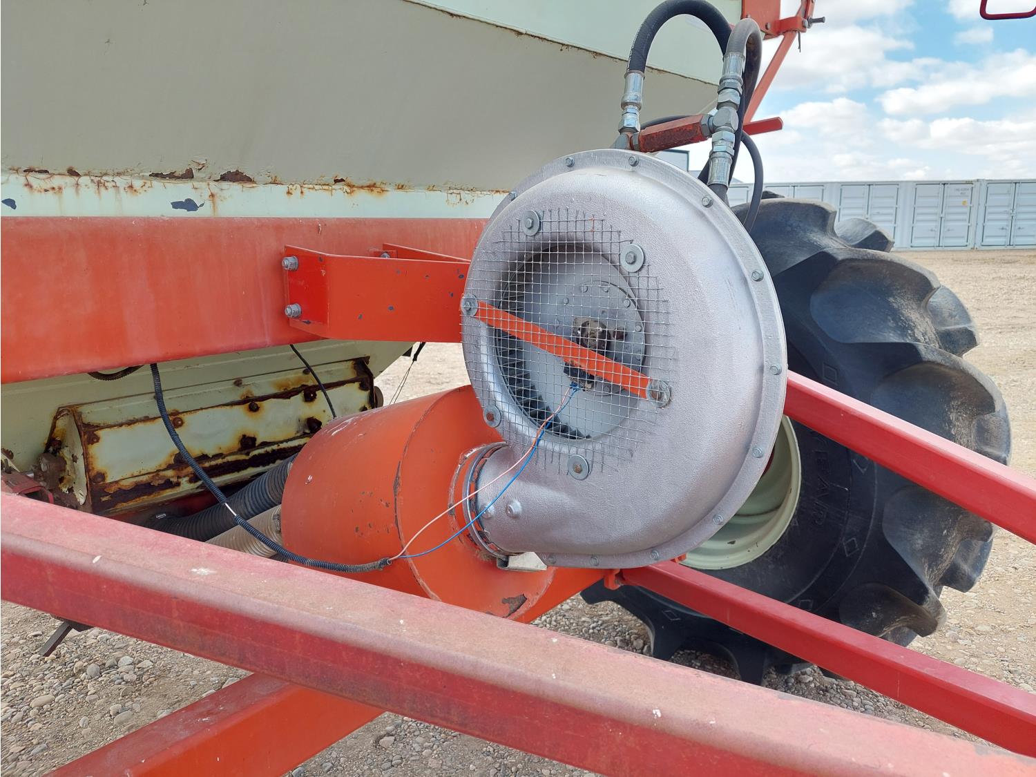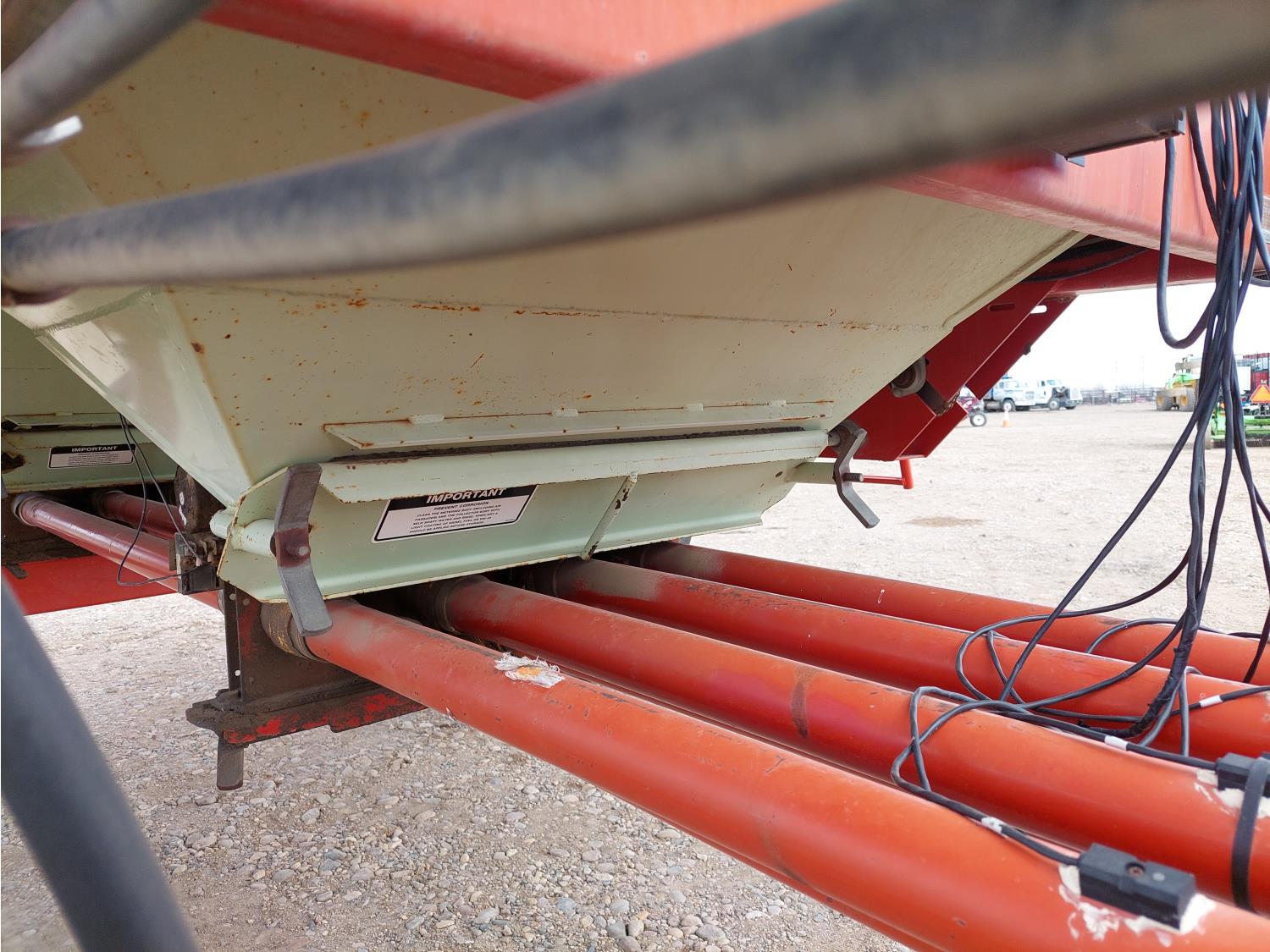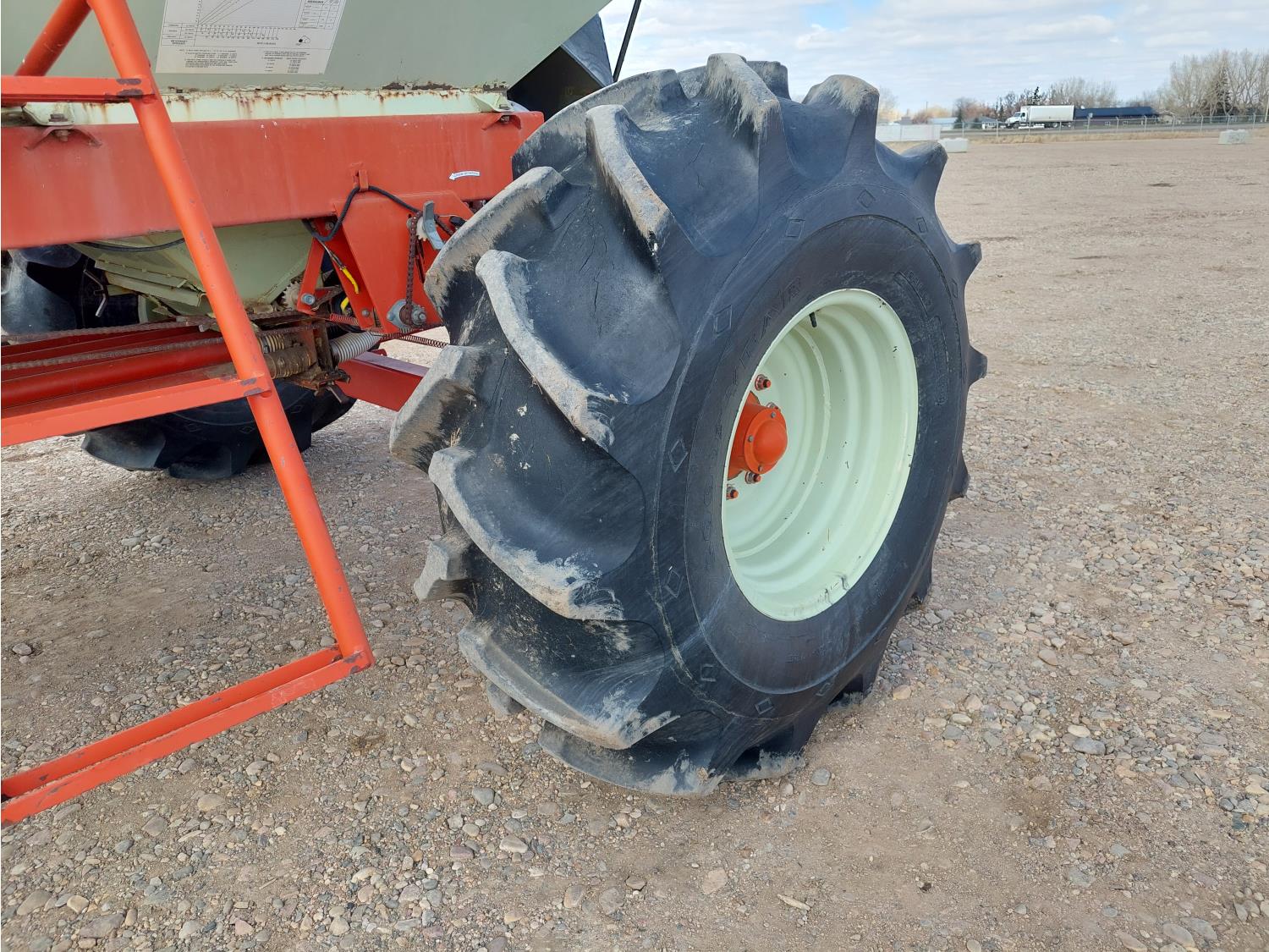 7 inch spacing, single shoot openers, 2 inch steel packers, seed monitor, Morris M21082 RO monitors, Air Cart: 2 compartments, 6 inch loading auger, single fan, 11L-15FI drill tires, 21.5L-16.1SL front tires, 21.5L-16.1SL rear tires