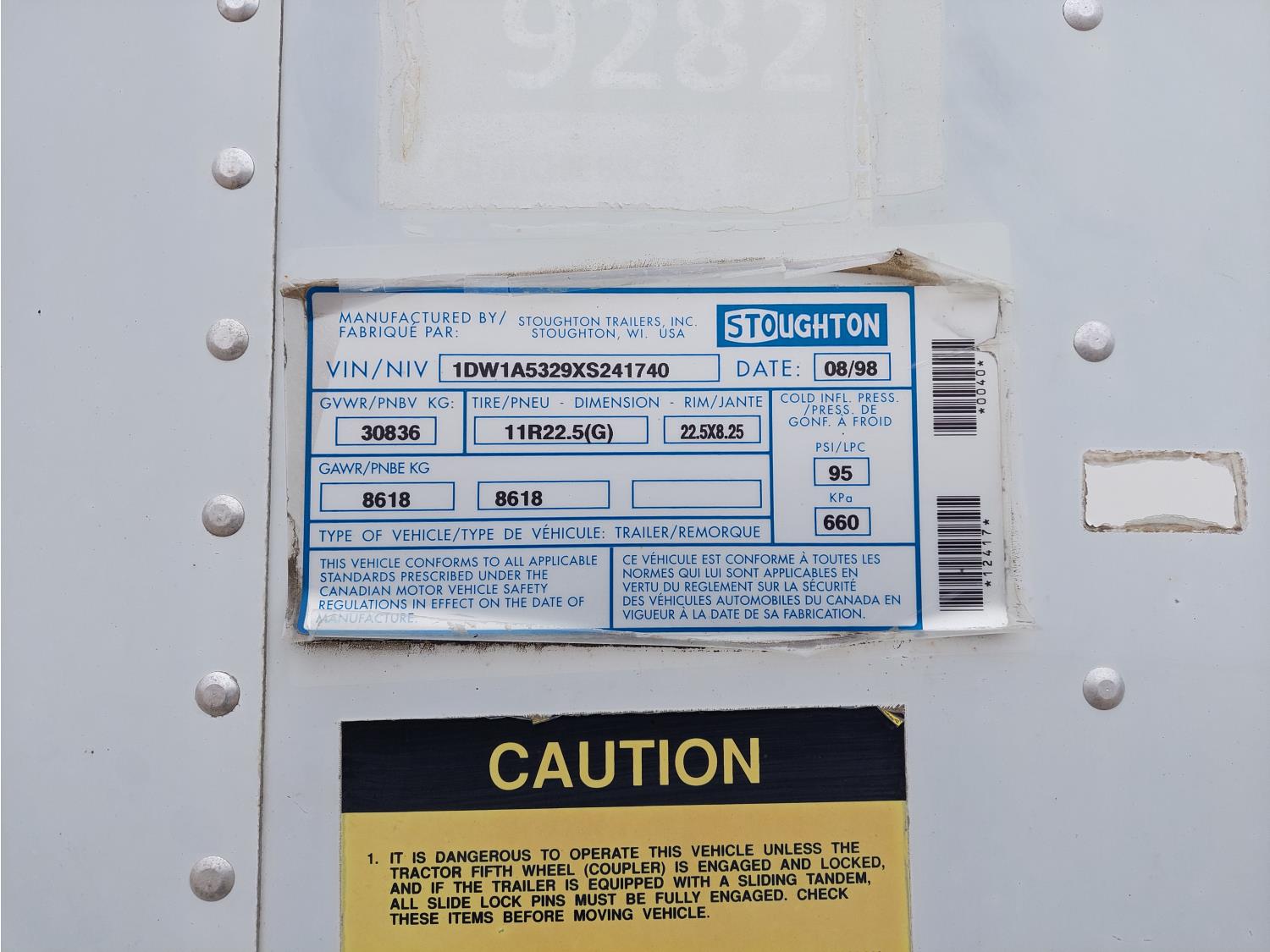 8 ft 6 inch van width, 112 inch height, rear swing doors, 2 speed landing gear, air brakes, air ride suspension, 19,000 lb axles, 11R22.5 tires