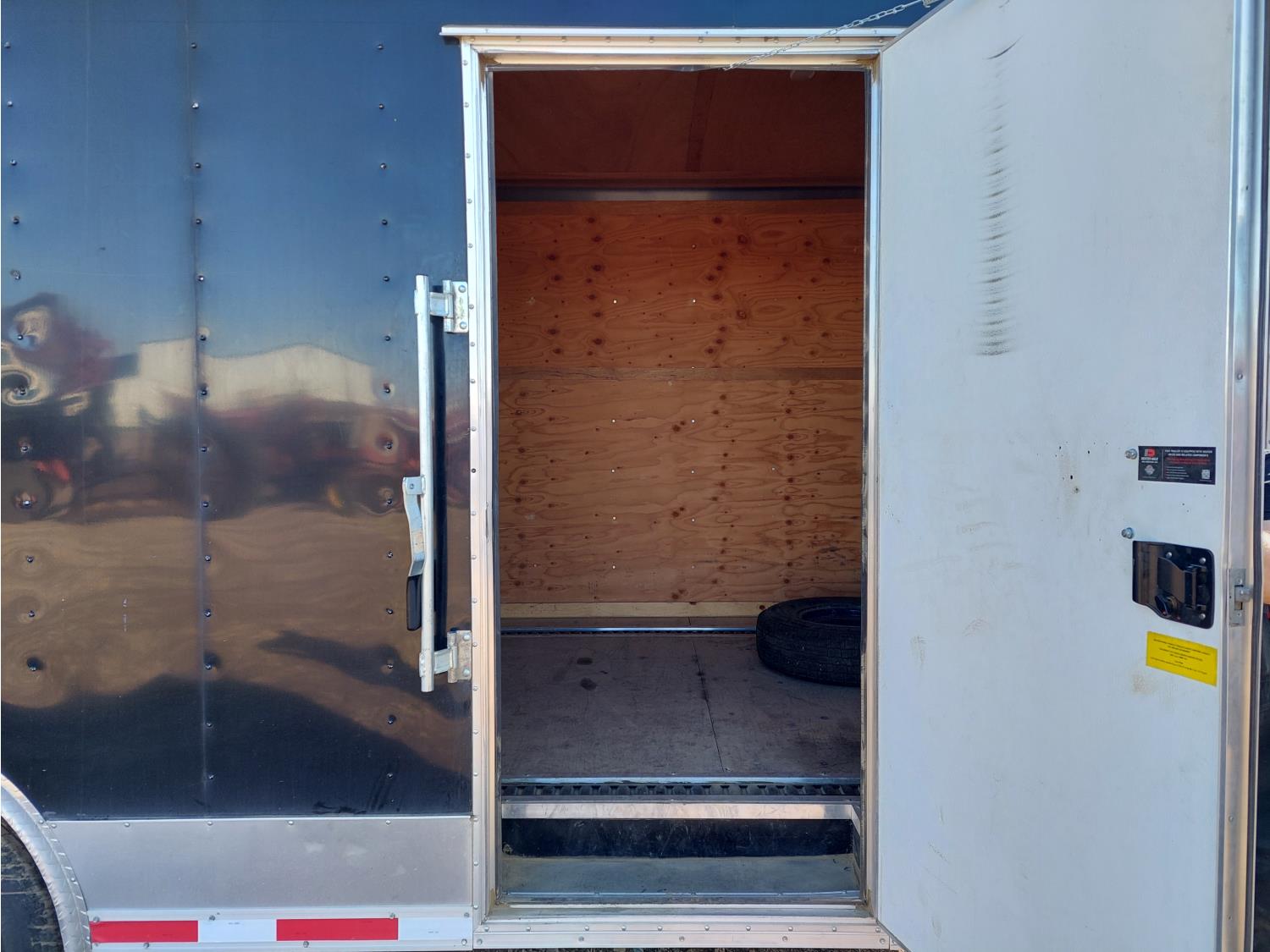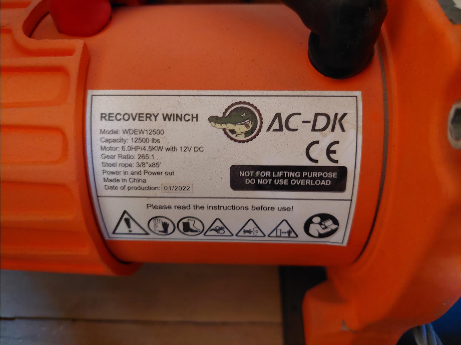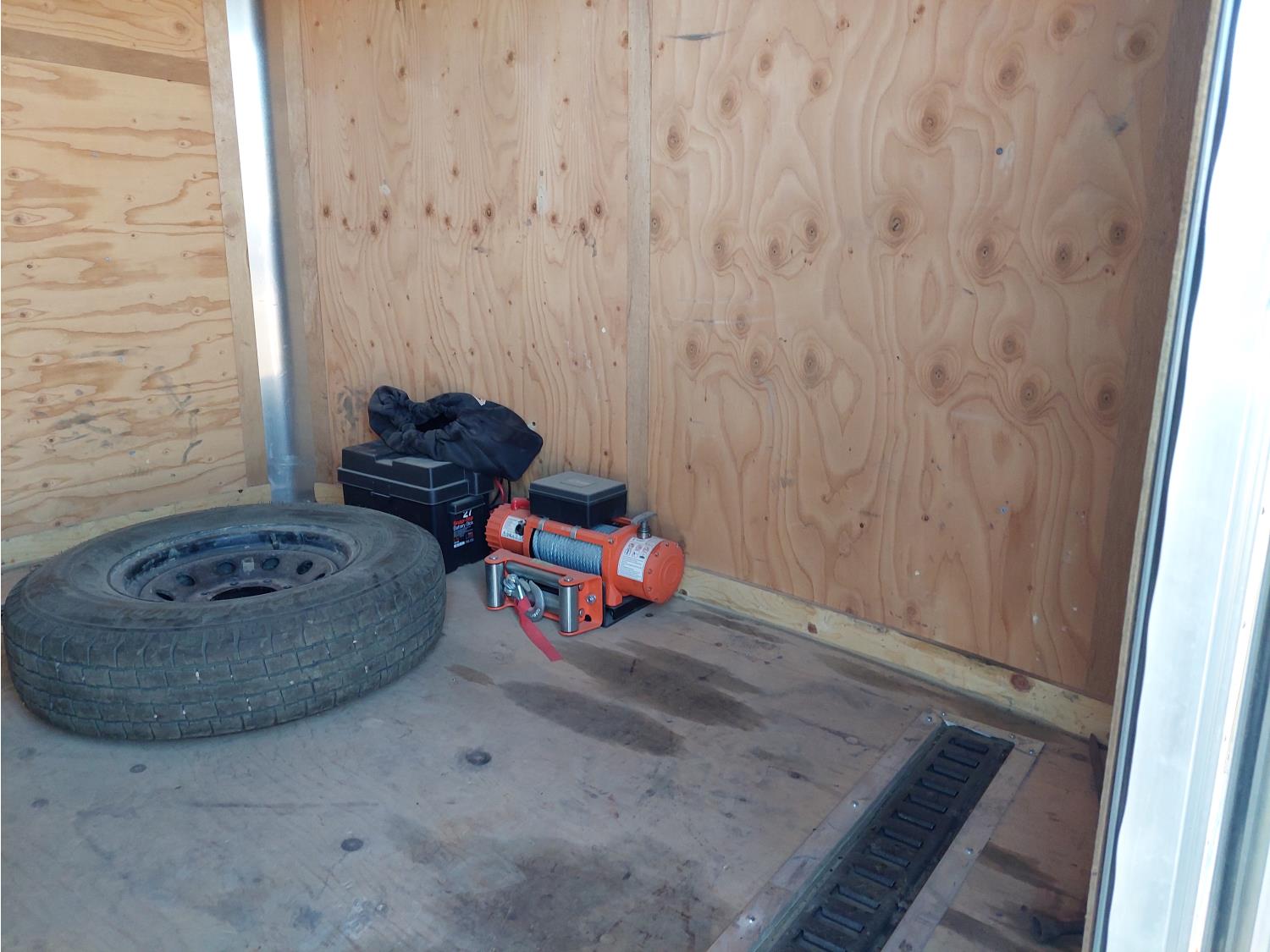 95 inch interior width, 86 inch interior height, side door, fold down door, electric brakes, spring suspension, 2-5/16 inch ball hitch, 2022 AC-DK WDEW12500 12500lb electric recovery winch, solar panels, 7000 lb axles, 235/80R16 tires