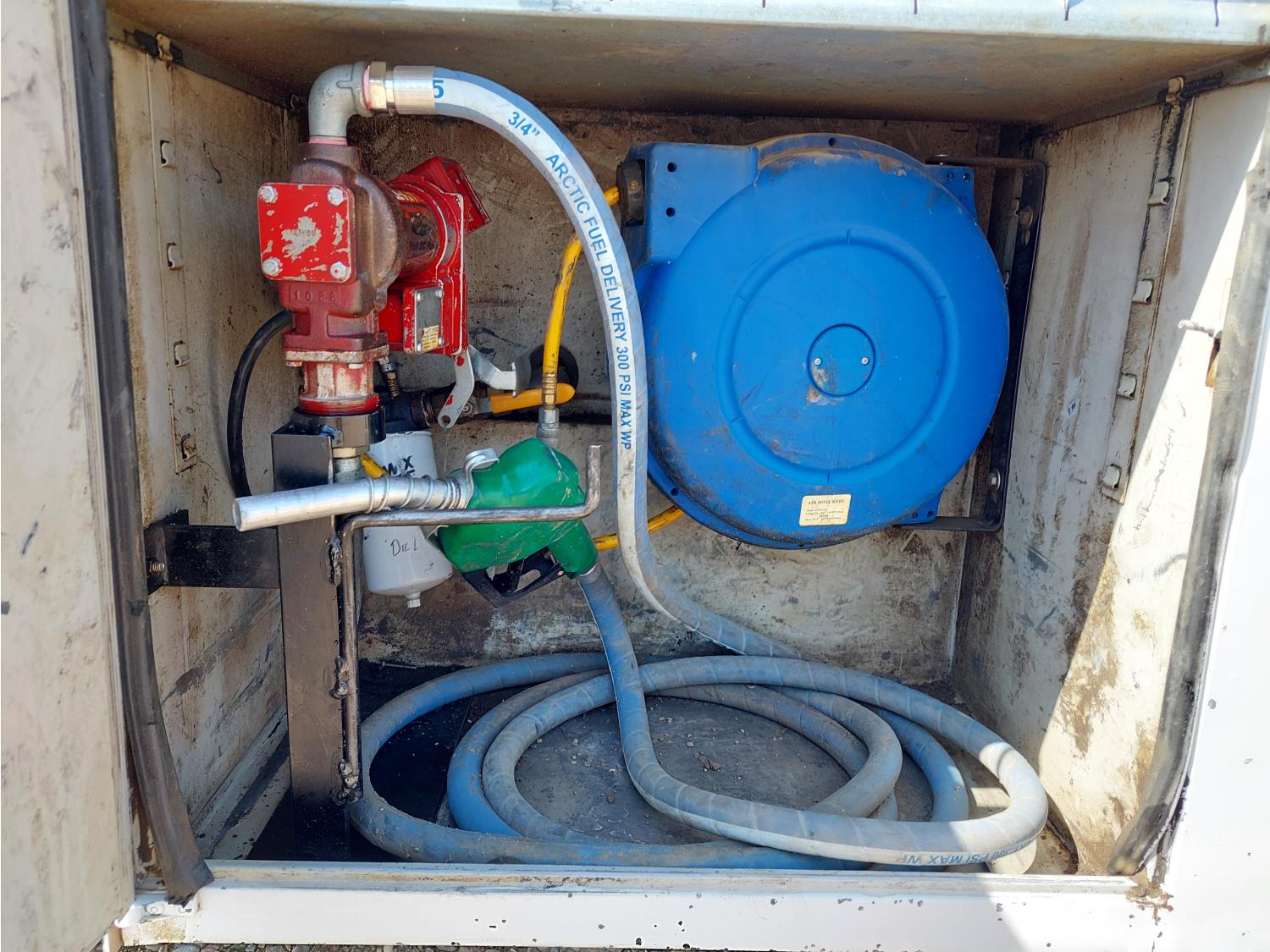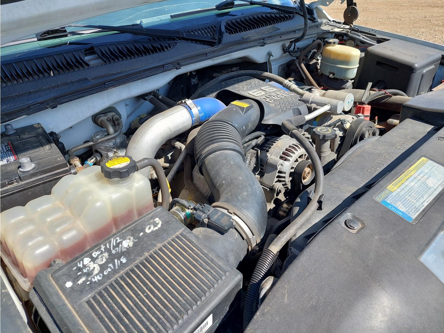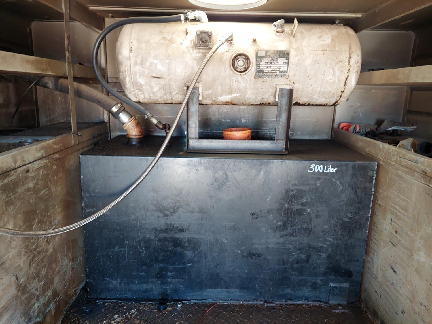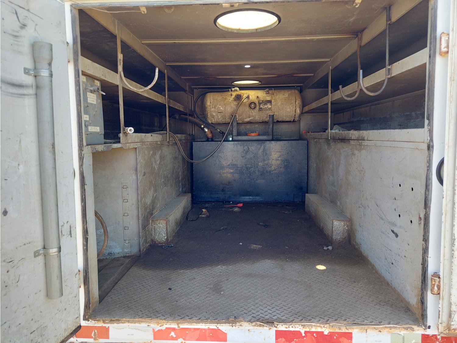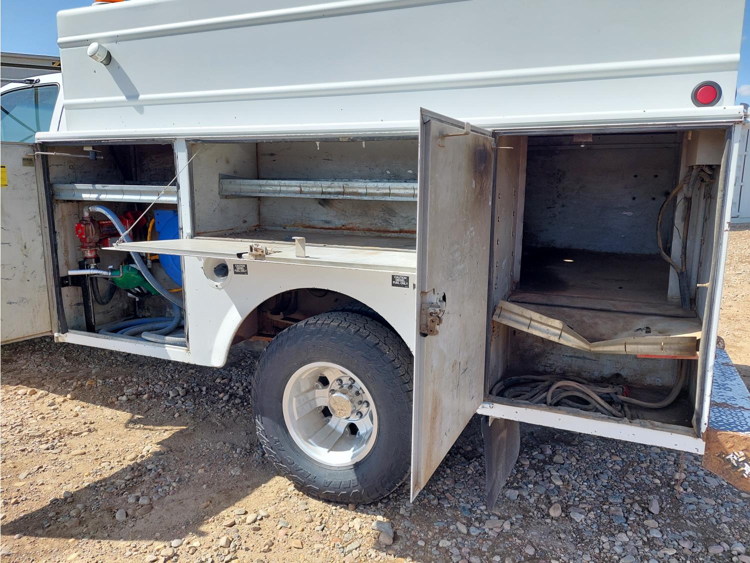 6.6 L, V8, automatic transmission, A/C, 108 inch L x 90 inch Stahl mechanics box, 80 gallon diesel tank, 15 GPM Fill-Rite fuel pump, Glitsch 25 gallon LP gas tank, pintle hitch, after market trailer brake, 235/85R16 tires