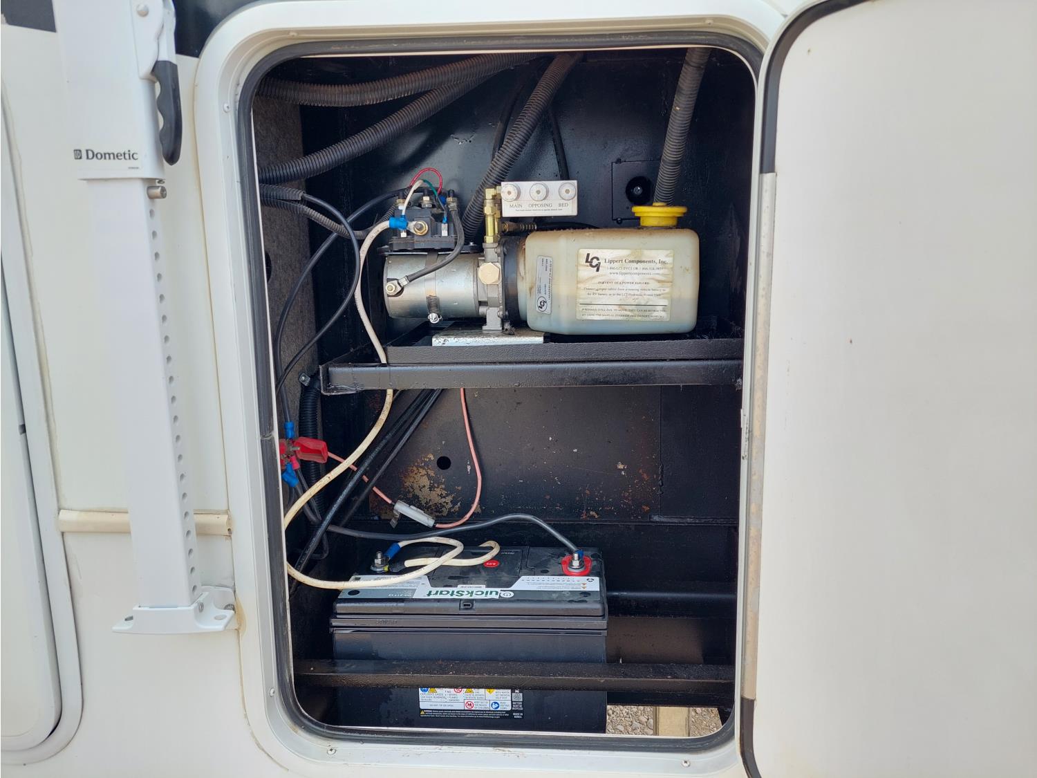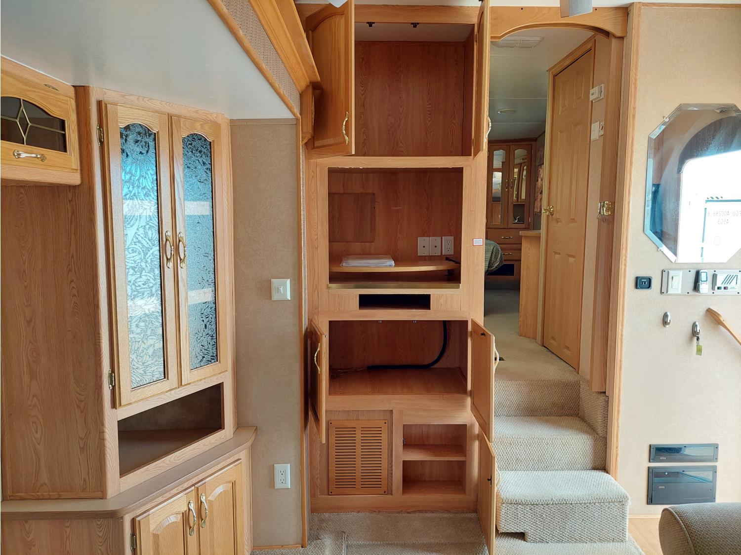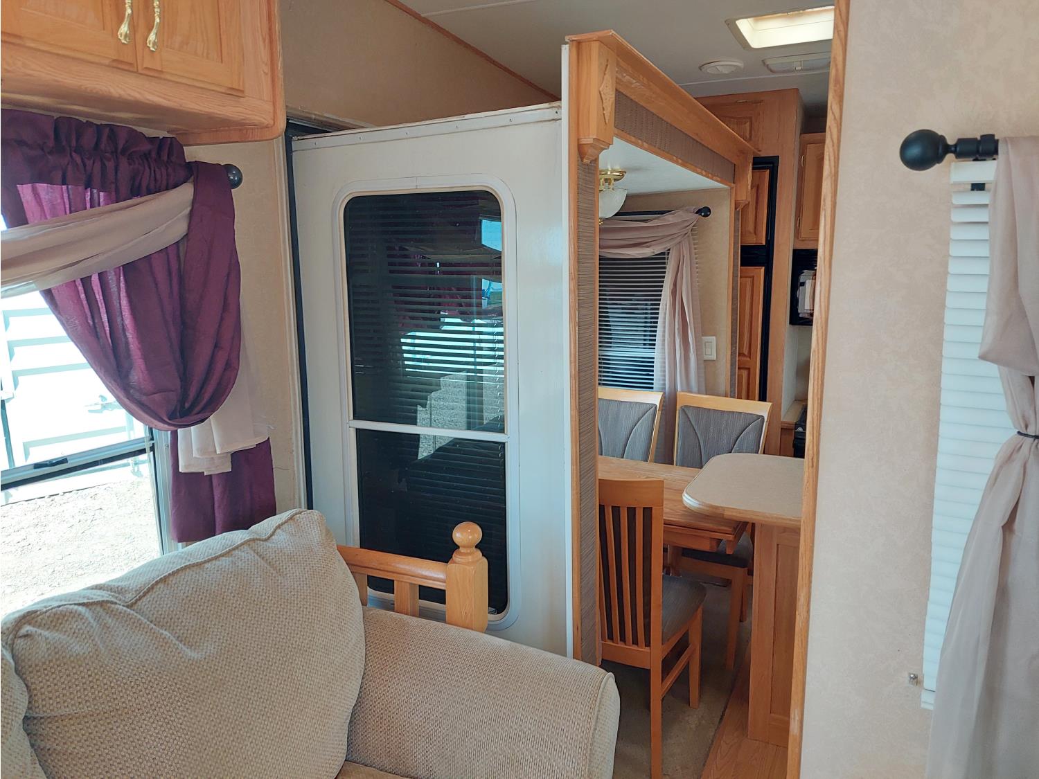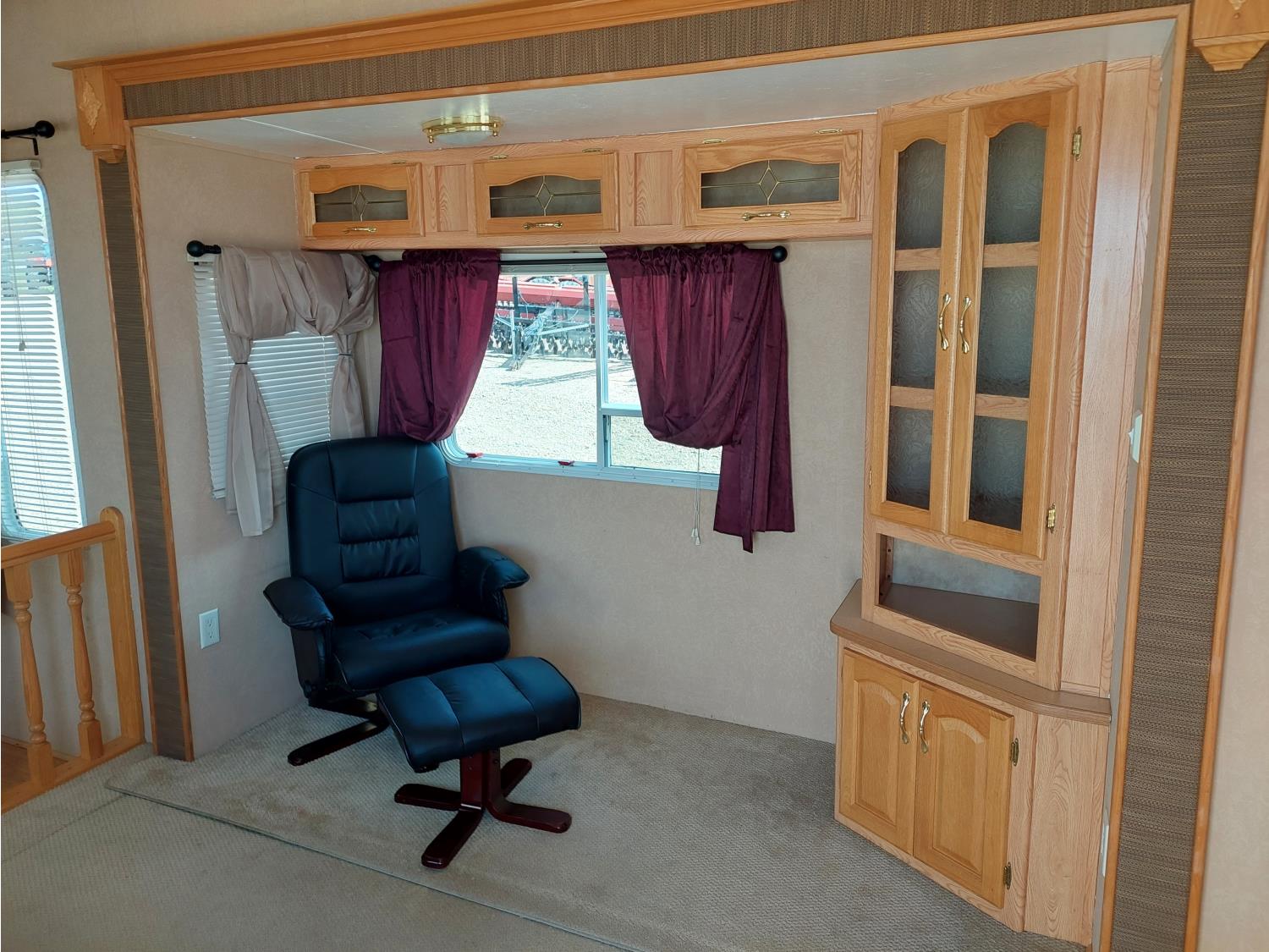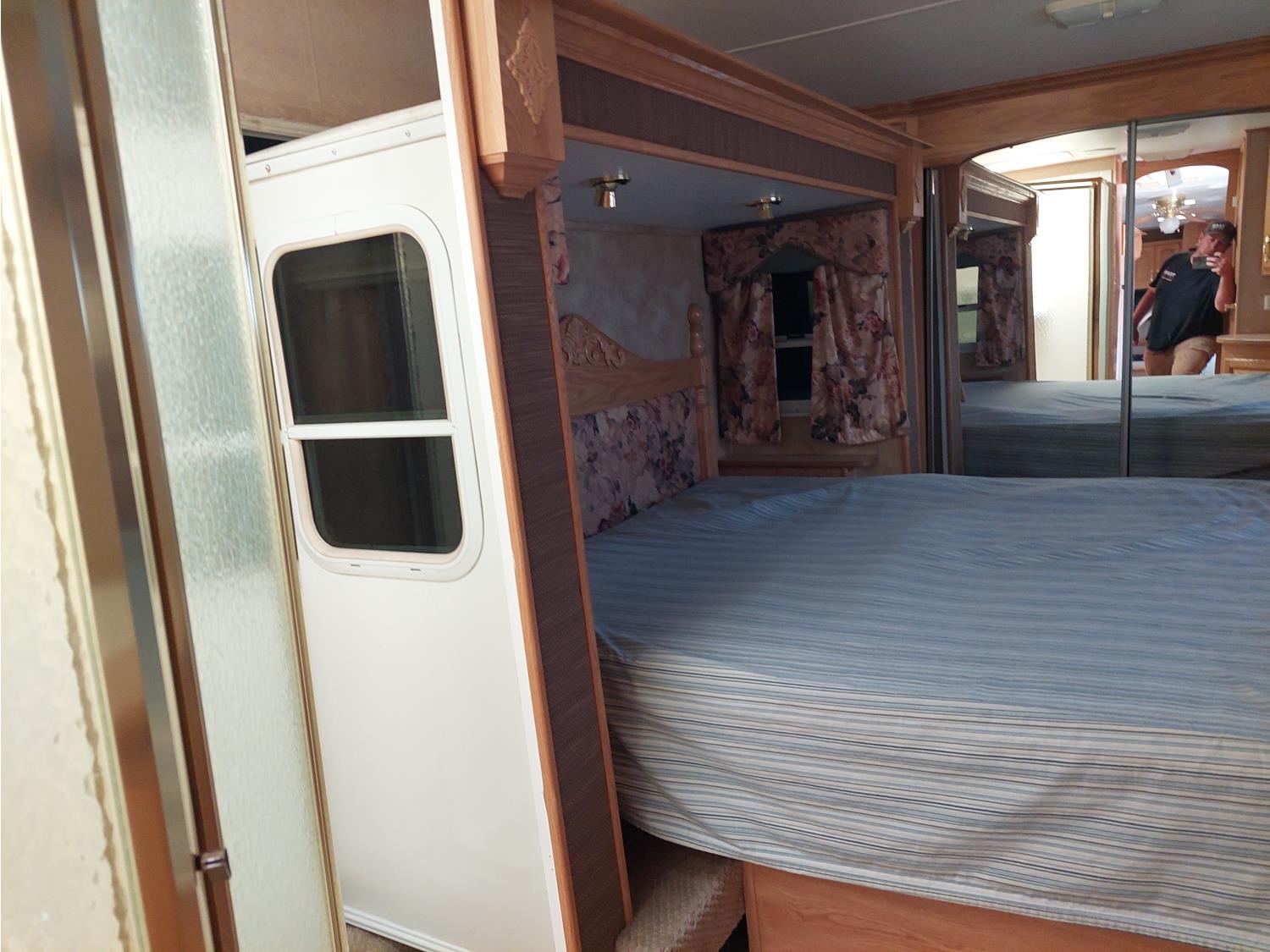 Sleeps 4, stove, fridge, microwave, master bedroom, A/C, outdoor shower, 3 slides, manual awning, power levelling jacks, spring suspension, electric brakes, 235/80R18 tires