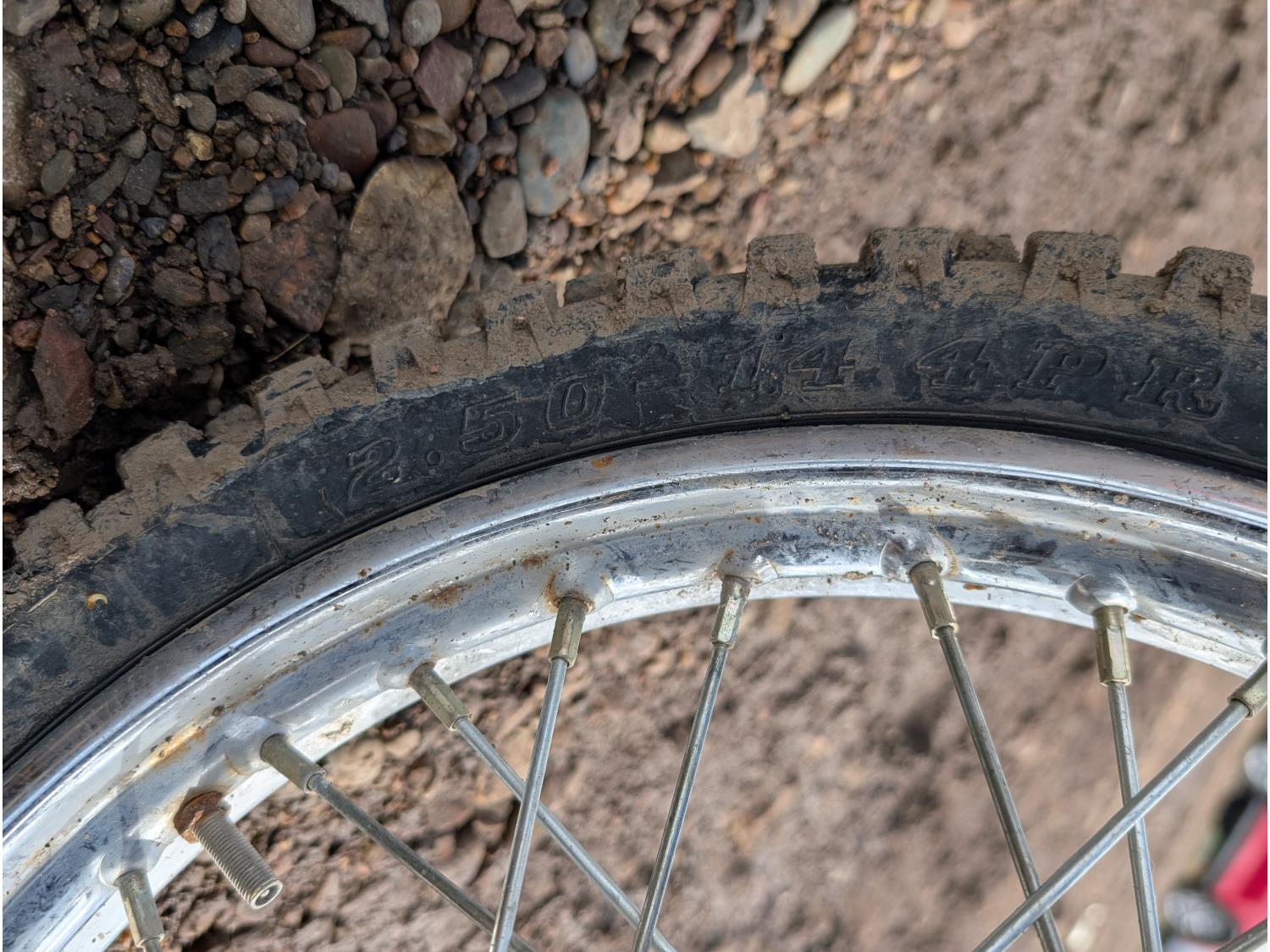 2.50-14 front tire, 3.00-12 rear tire