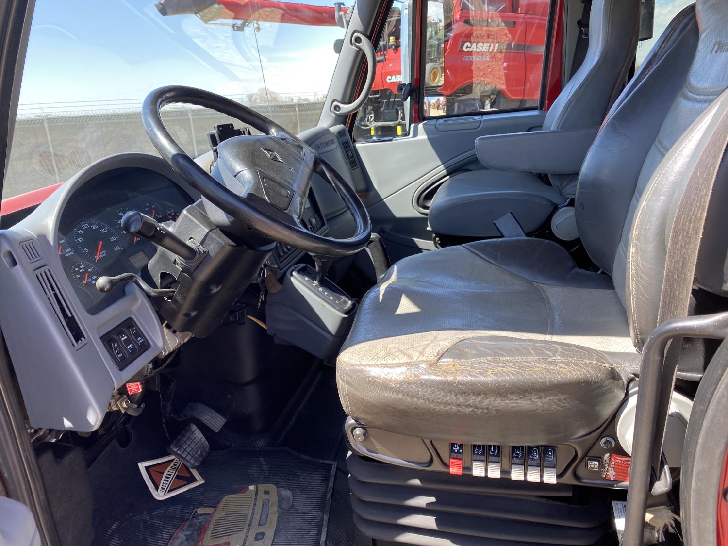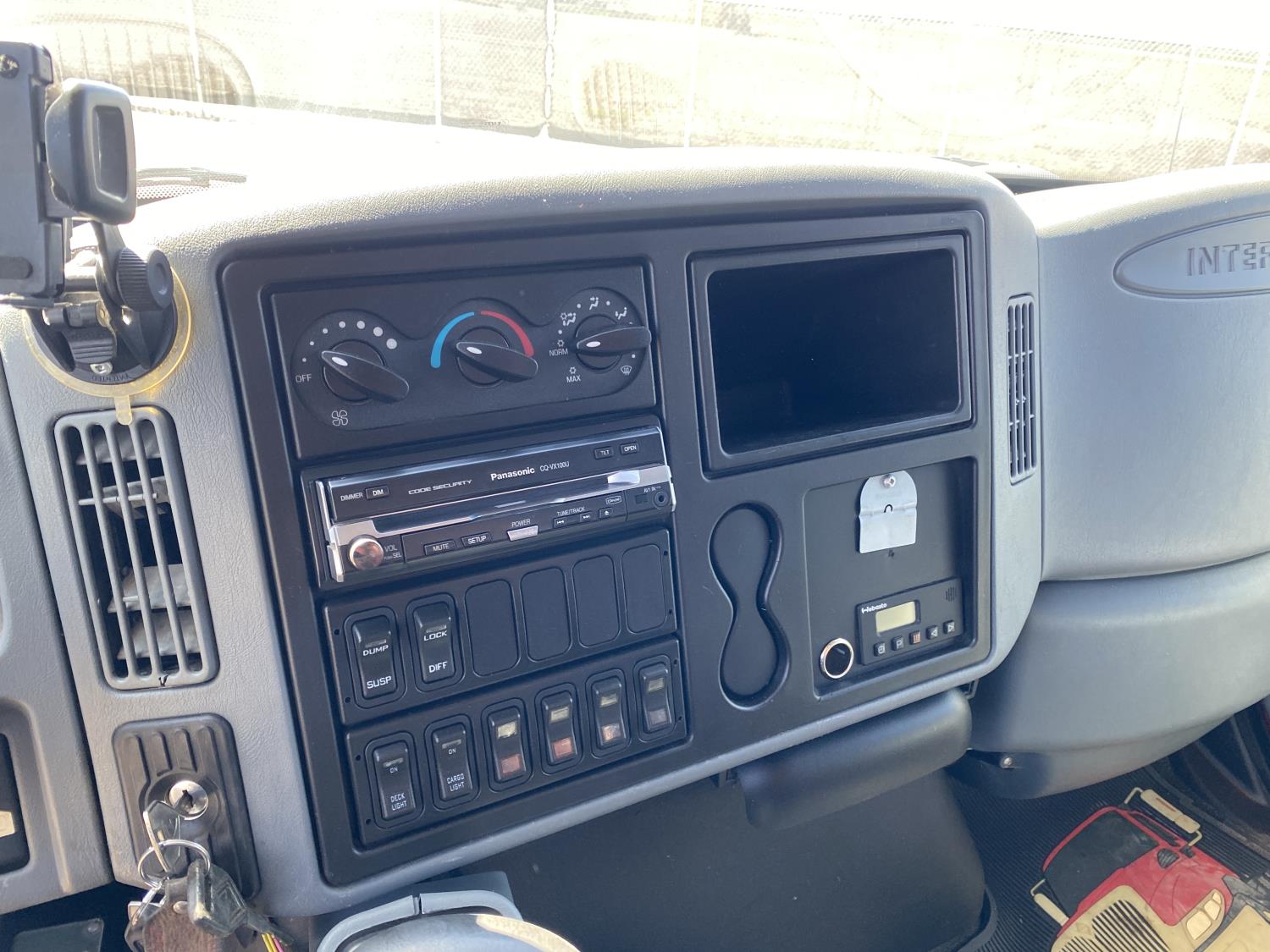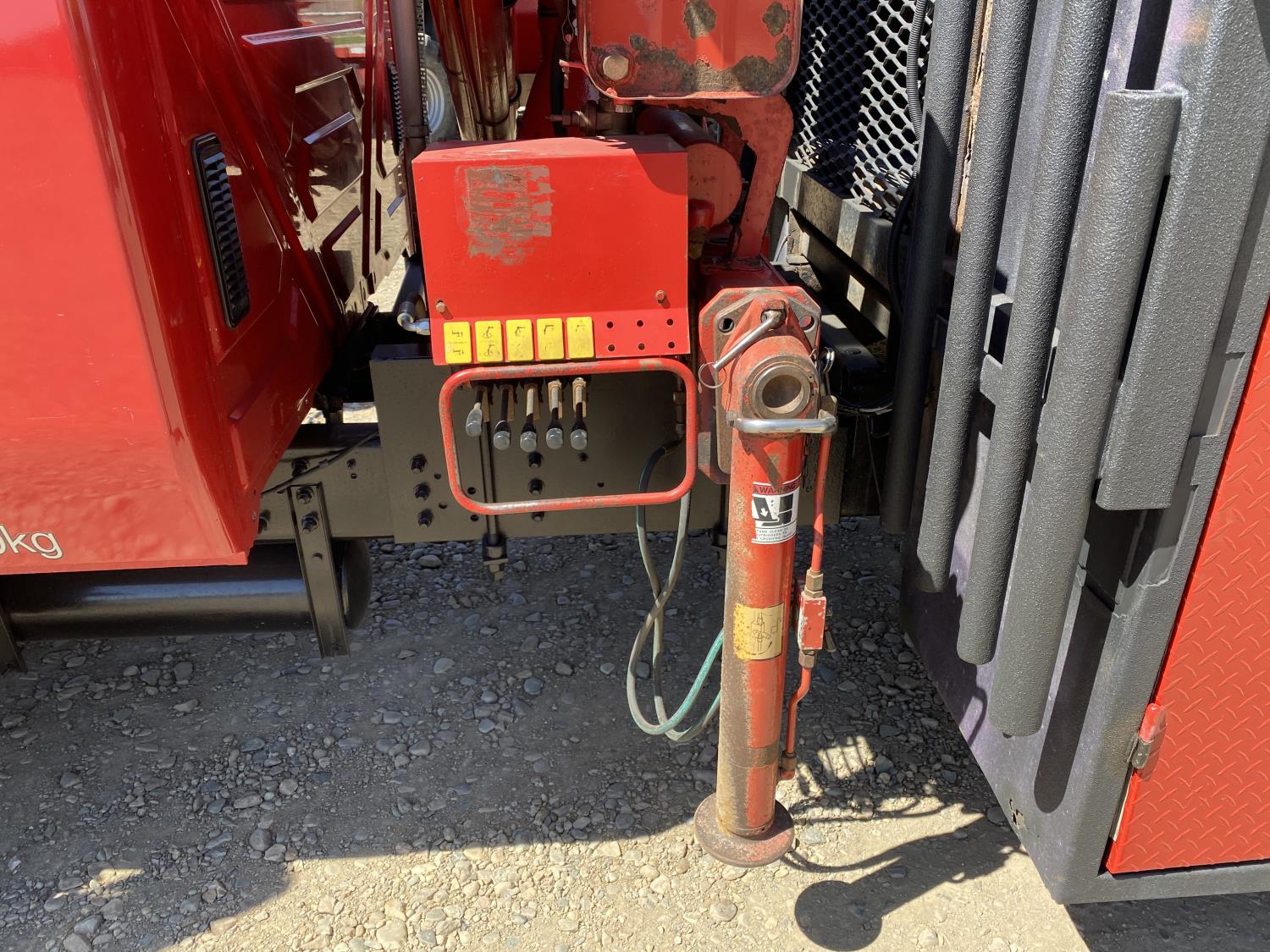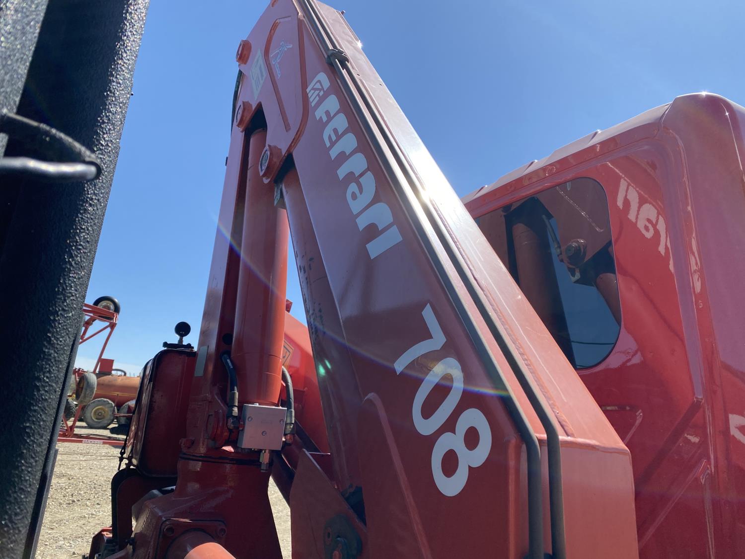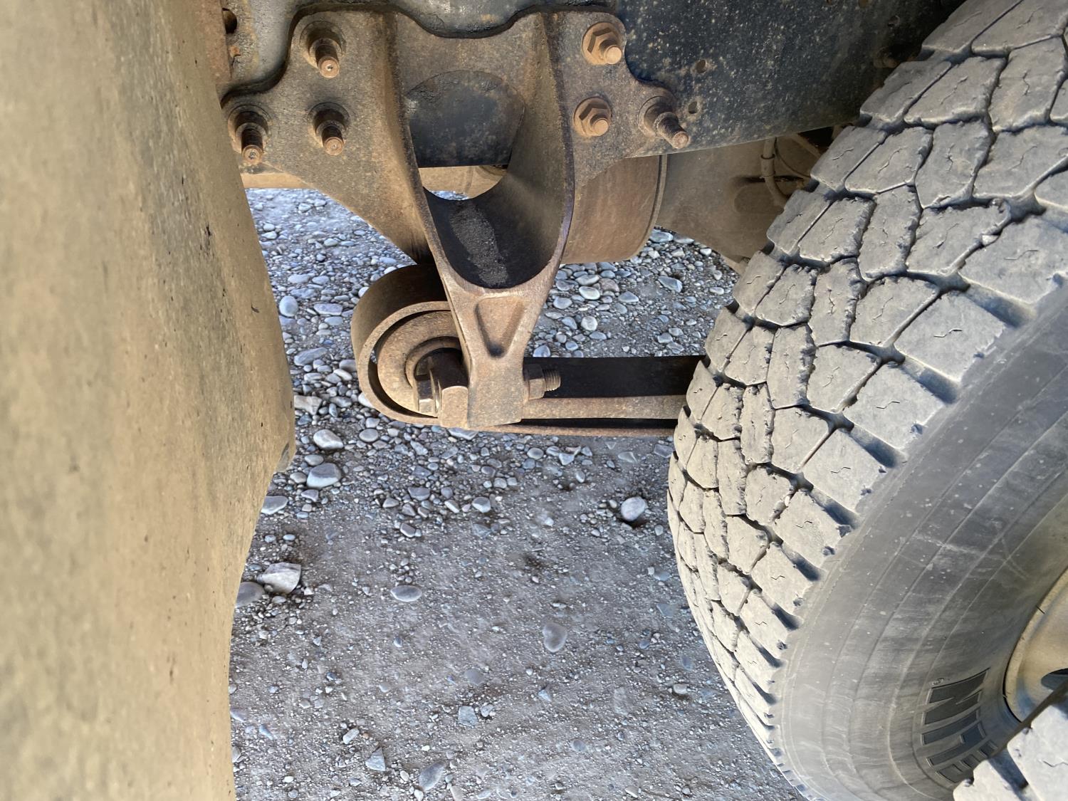 International DT466 7.6 L 6 cylinder diesel engine, automatic transmission, A/C, P/W, P/L, leather interior, air ride seats, stereo, 60 inch T x 40 inch W x 26 inch D steel tool boxes, 8 ft 4 inch x 12 ft deck, chain holders, PTO pump, Ferrari 708 3 section 24 ft knuckle crane, outriggers, air ride suspension, 14,000 lb rear axles, diff lock, 217 inch WB, all aluminum wheels, 275/70R22.5 front tires, 10R22.5 rear tires
