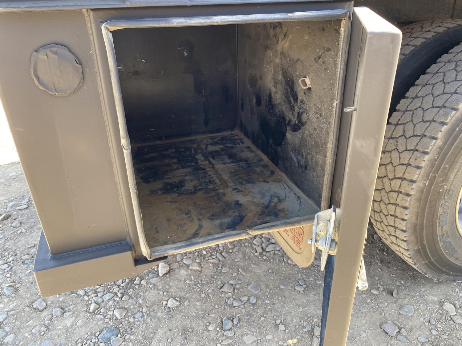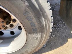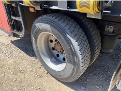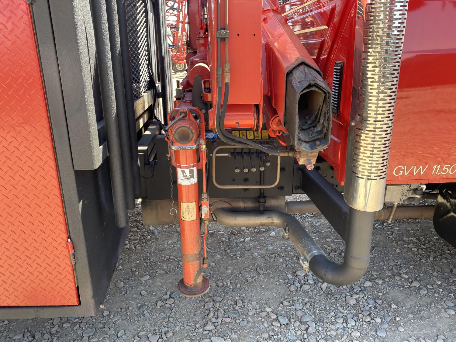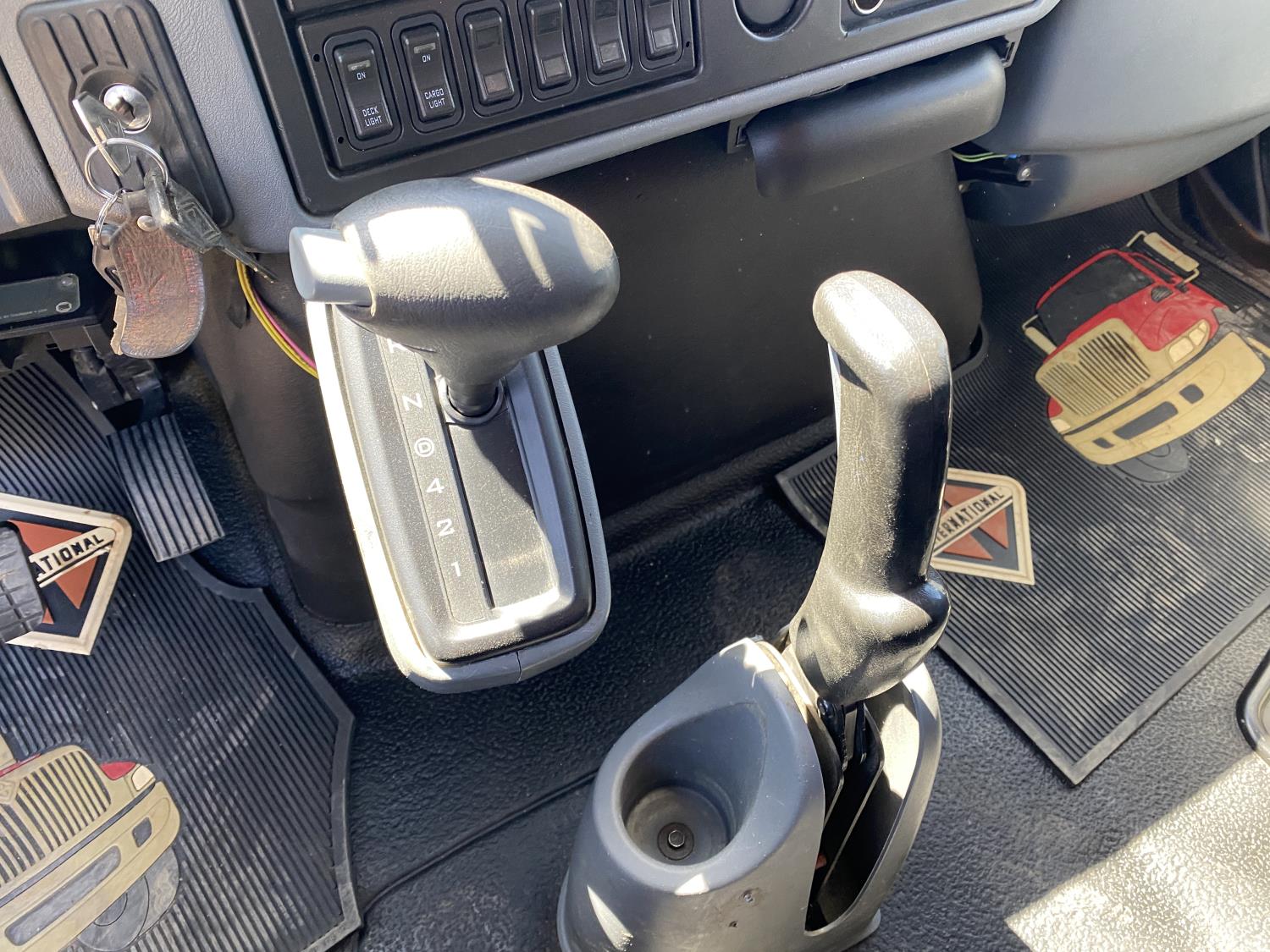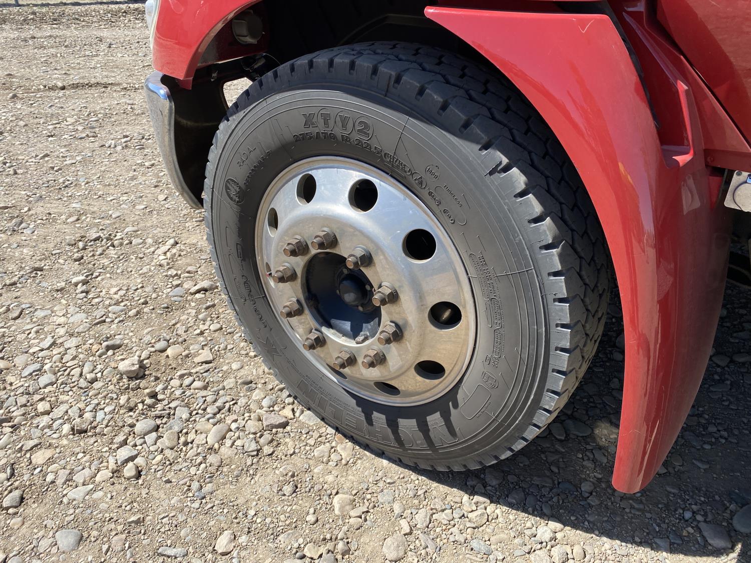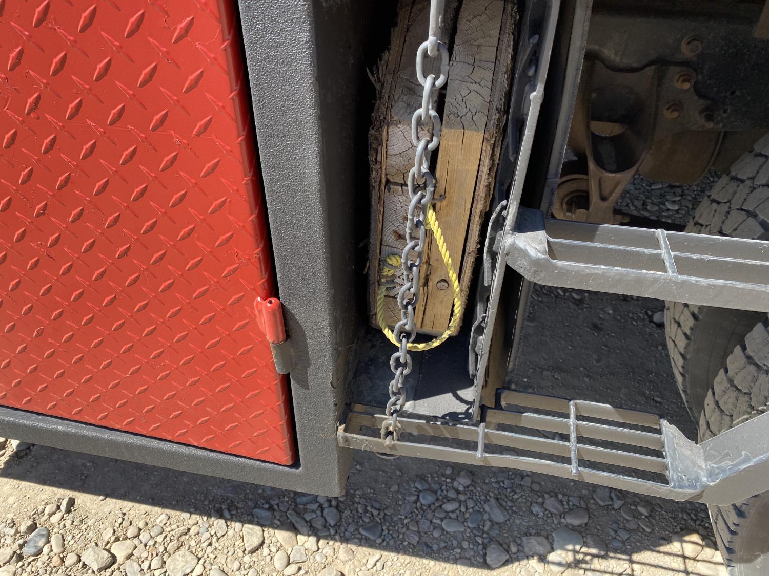 International DT466 7.6 L 6 cylinder diesel engine, automatic transmission, A/C, P/W, P/L, leather interior, air ride seats, stereo, 60 inch T x 40 inch W x 26 inch D steel tool boxes, 8 ft 4 inch x 12 ft deck, chain holders, PTO pump, Ferrari 708 3 section 24 ft knuckle crane, outriggers, air ride suspension, 14,000 lb rear axles, diff lock, 217 inch WB, all aluminum wheels, 275/70R22.5 front tires, 10R22.5 rear tires
