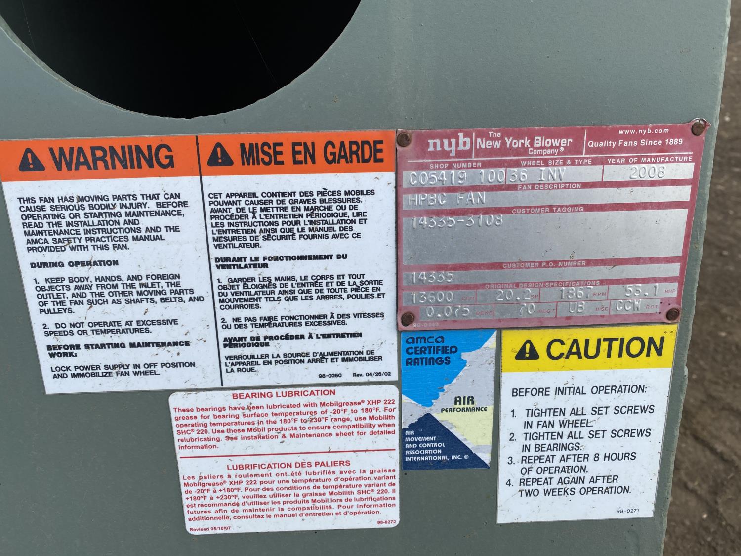 47 2008 New York Blower Company 13600 CFM HPBC Fan