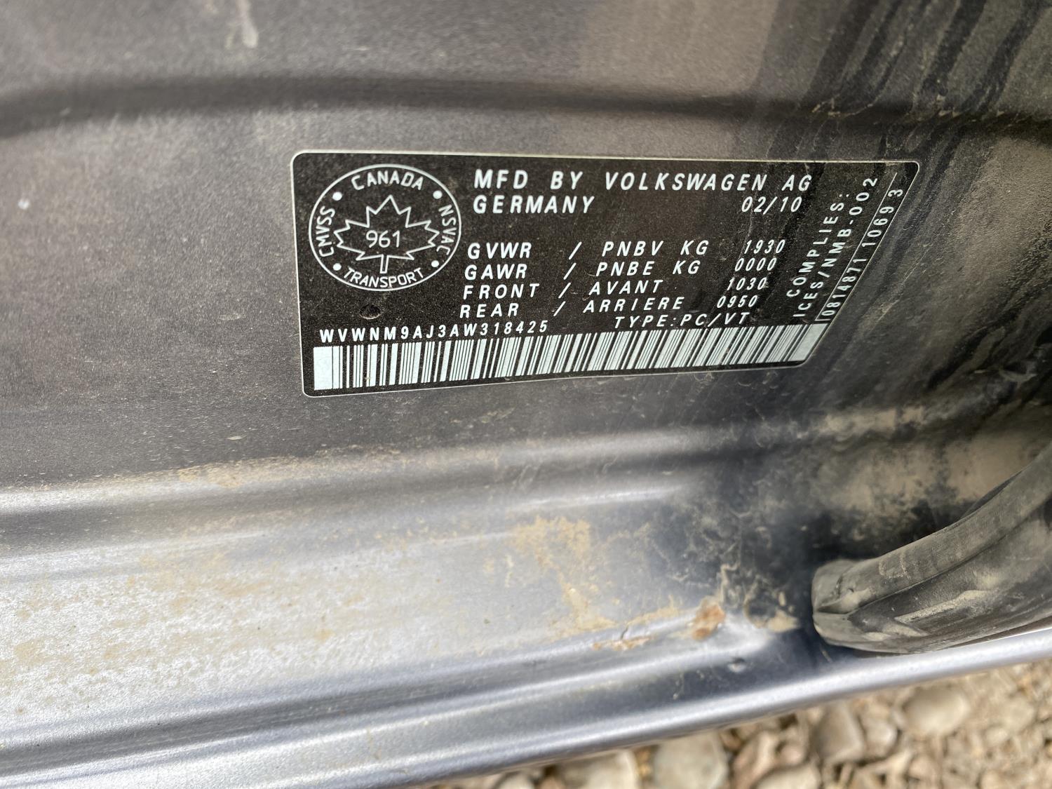 - WVWNM9AJ3AW318425