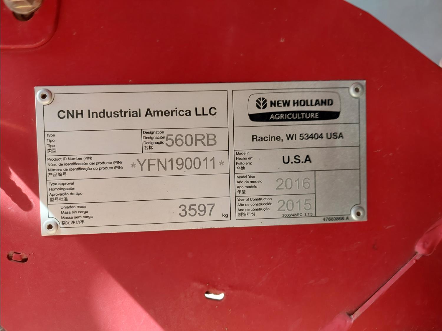 521 2016 New Holland 560RB Round Baler