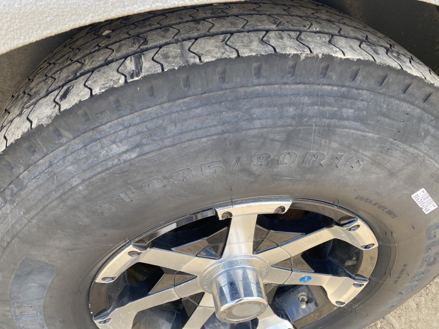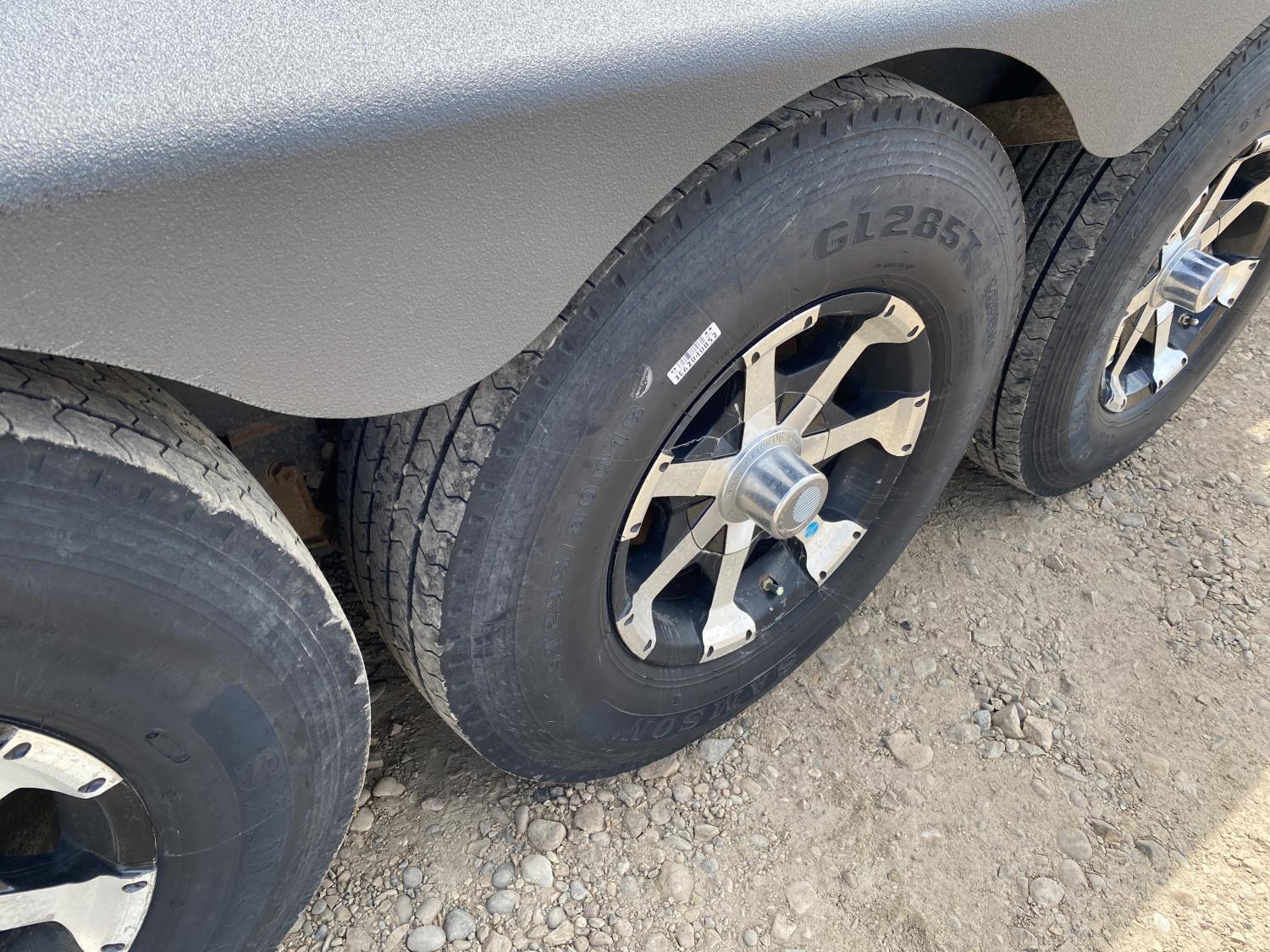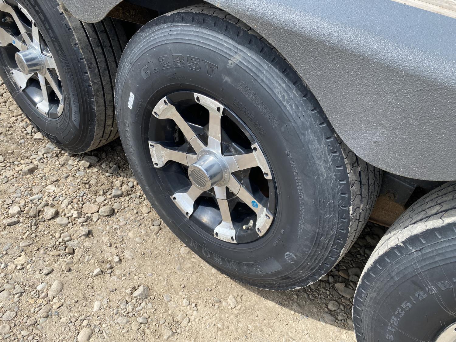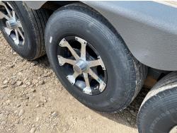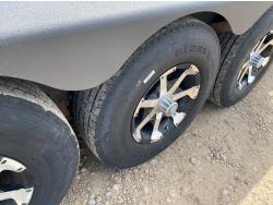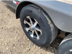 81 inch wide deck, 36 inch beaver tails, wood deck, flip over ramps, electric brakes, spring suspension, ball hitch, tool / storage box, rub rails, 7000 lb axles, 235/80R16 tires