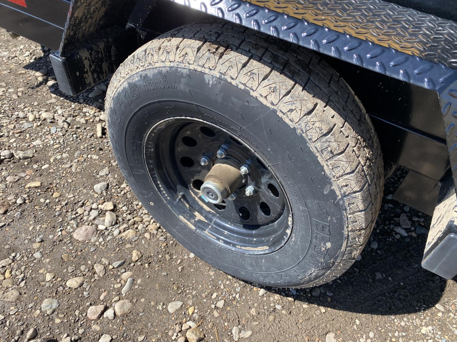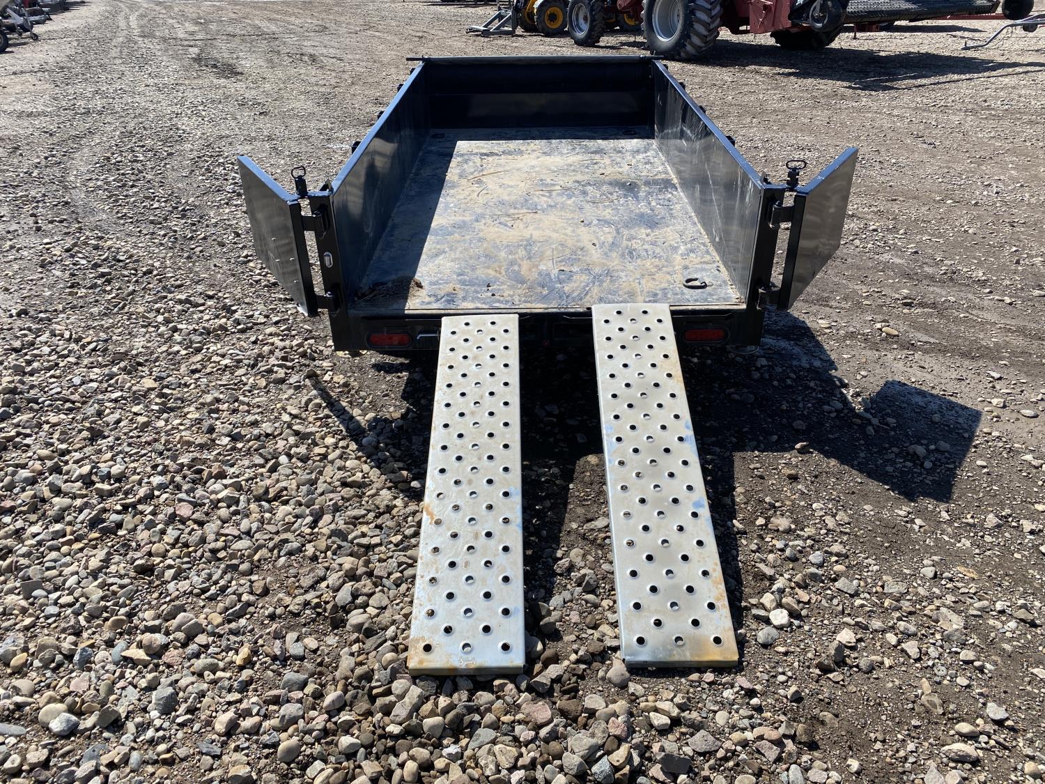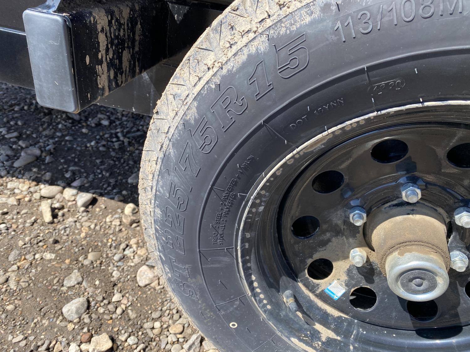 5 ft 1 inch box width, 18 inch side wall height, roll tarp, ramps, spring suspension, 3,600 lb axles, 2-5/16 inch ball hitch, 225/75R15 tires
