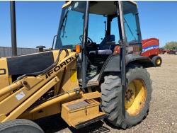 Enclosed cab, Ford 4.2 L 4 cylinder 82 HP, engine, 4 speed fully synchronized transmission, ROPS, left hand reverser, 87 inch smooth loader bucket, 64 inch clamp on pallet forks, 235/85R16 front tires, 16.9-28 rear tires