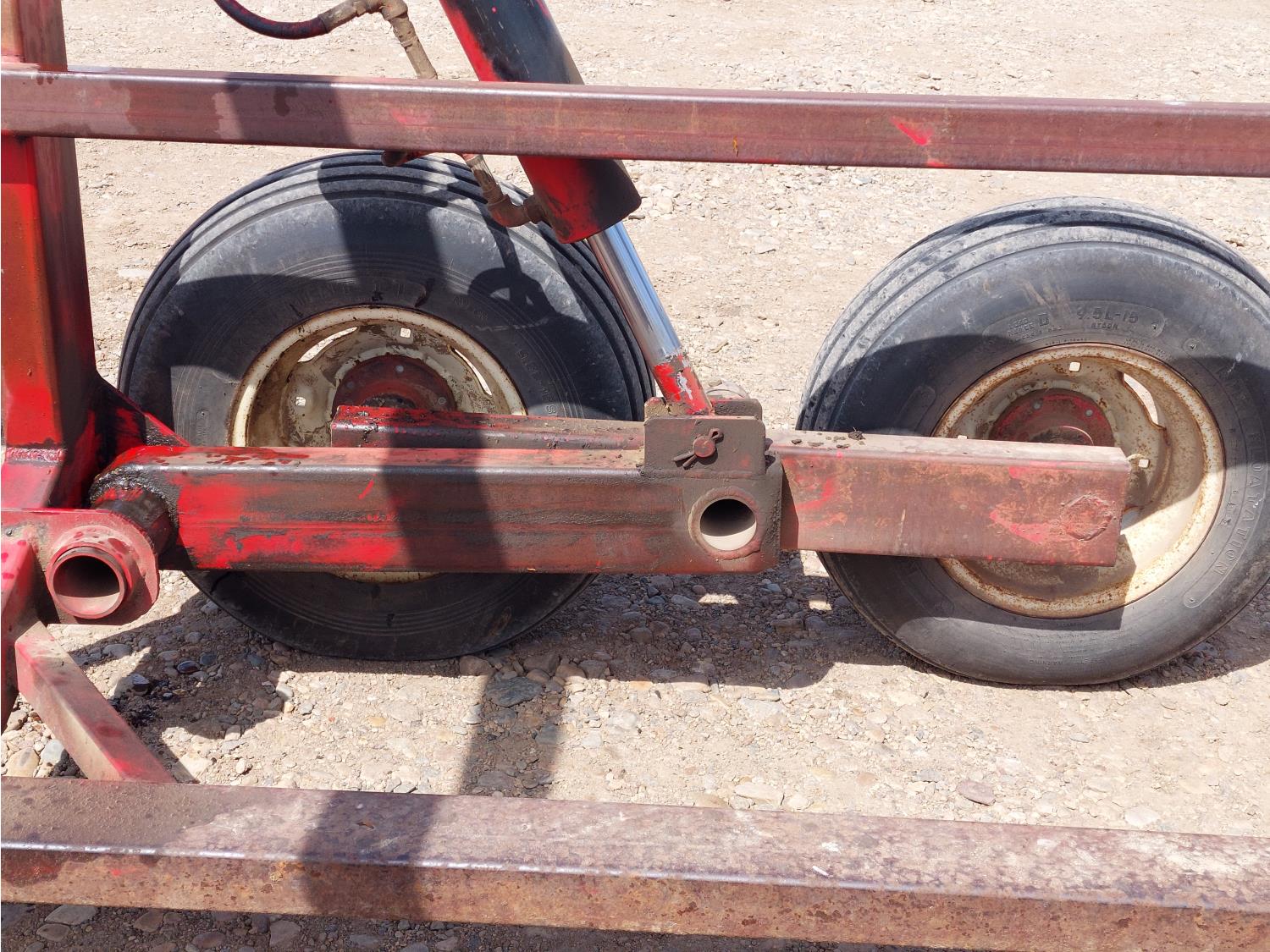 102 inch W x 81 inch T bale cage, torsion suspension, hydraulic lift, hydraulic tow arm pivot, 9.5-15 tires