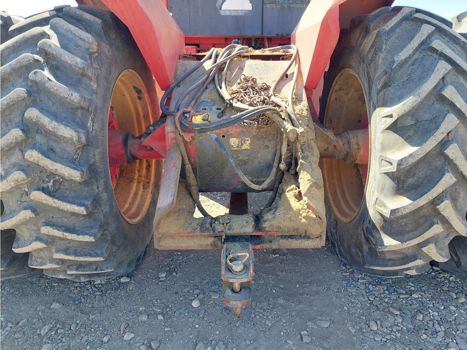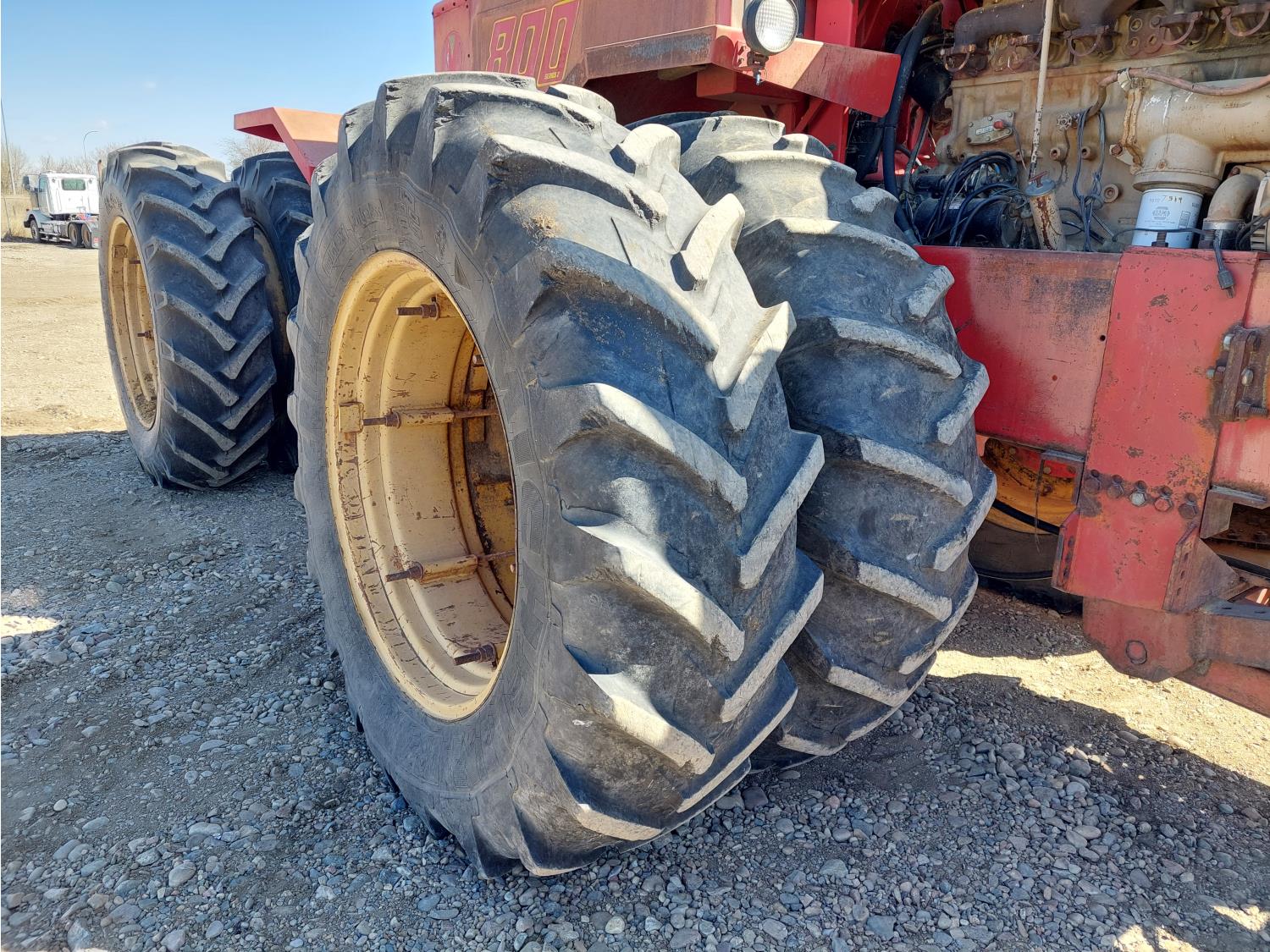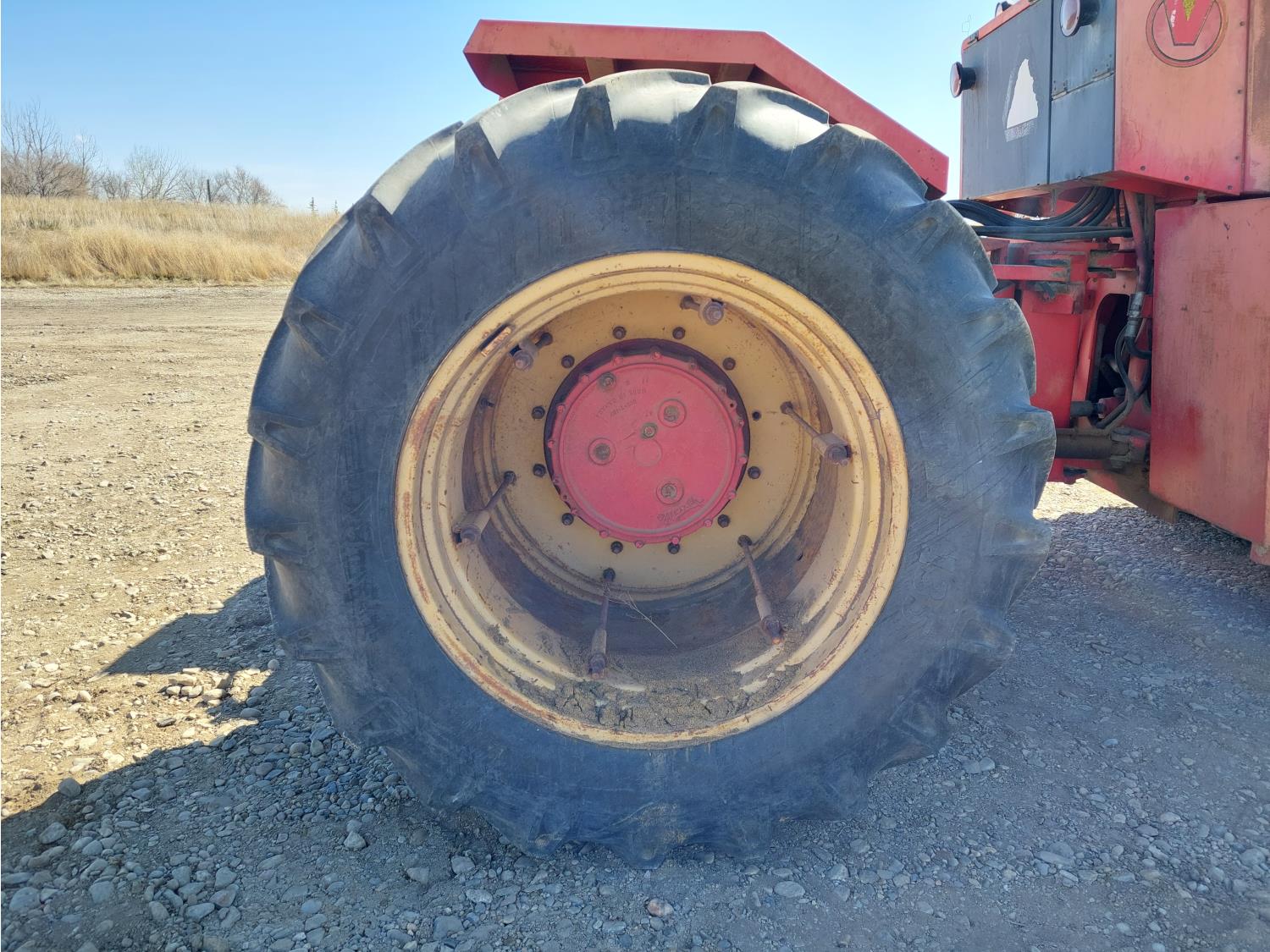 Cummins N-855-C250 14.0 L 6 cylinder 250 HP, engine, 12 speed manual transmission, cab, A/C, radio, 12ft W front blade, 2 rear hydraulic outlets, 18.4R38 tires, factory duals