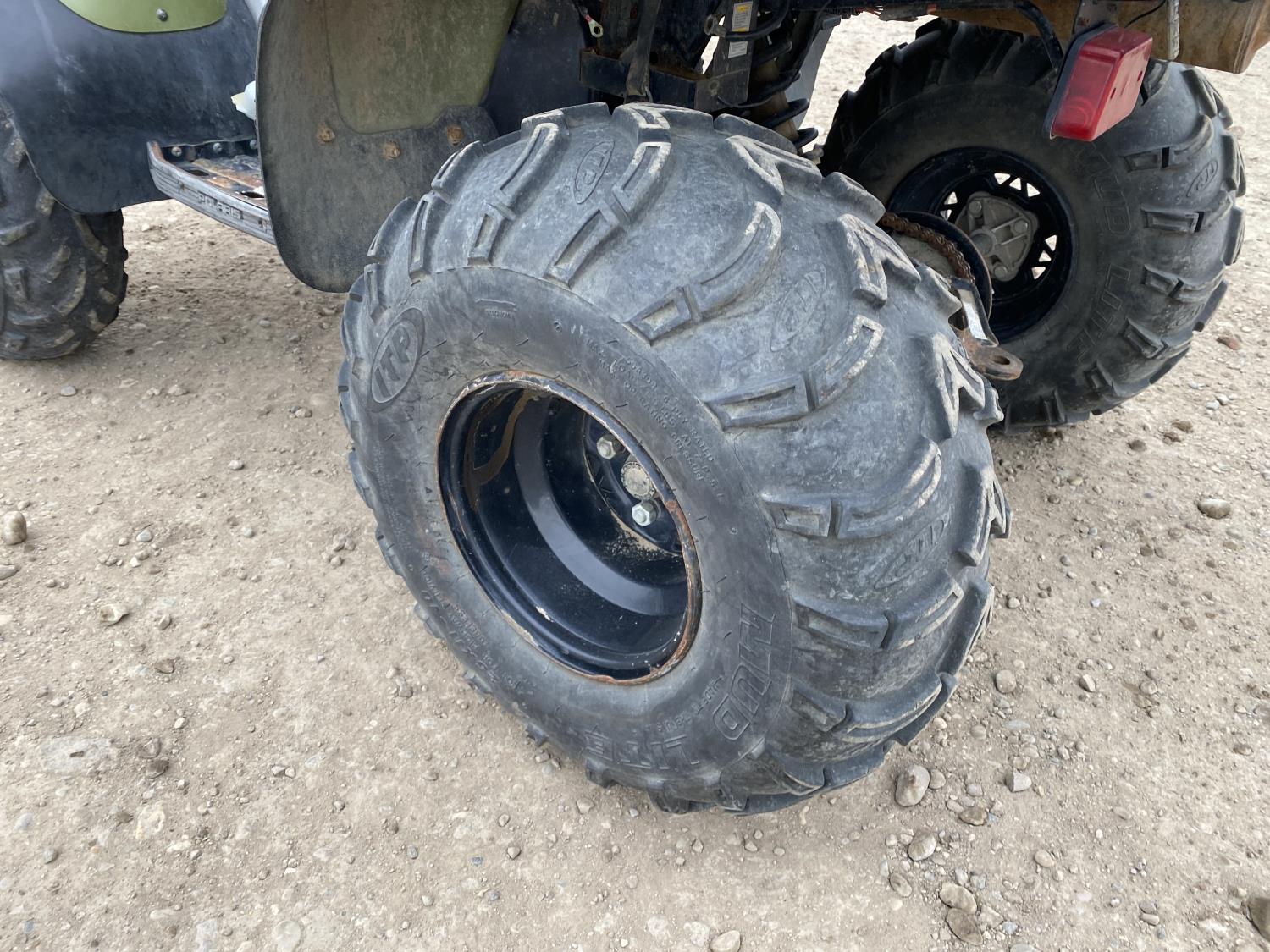 400 cc water cooled engine, CVT transmission, Hi/Lo range, reverse, front and rear racks, 25X8-12 front tires, 25X11-10 rear tires