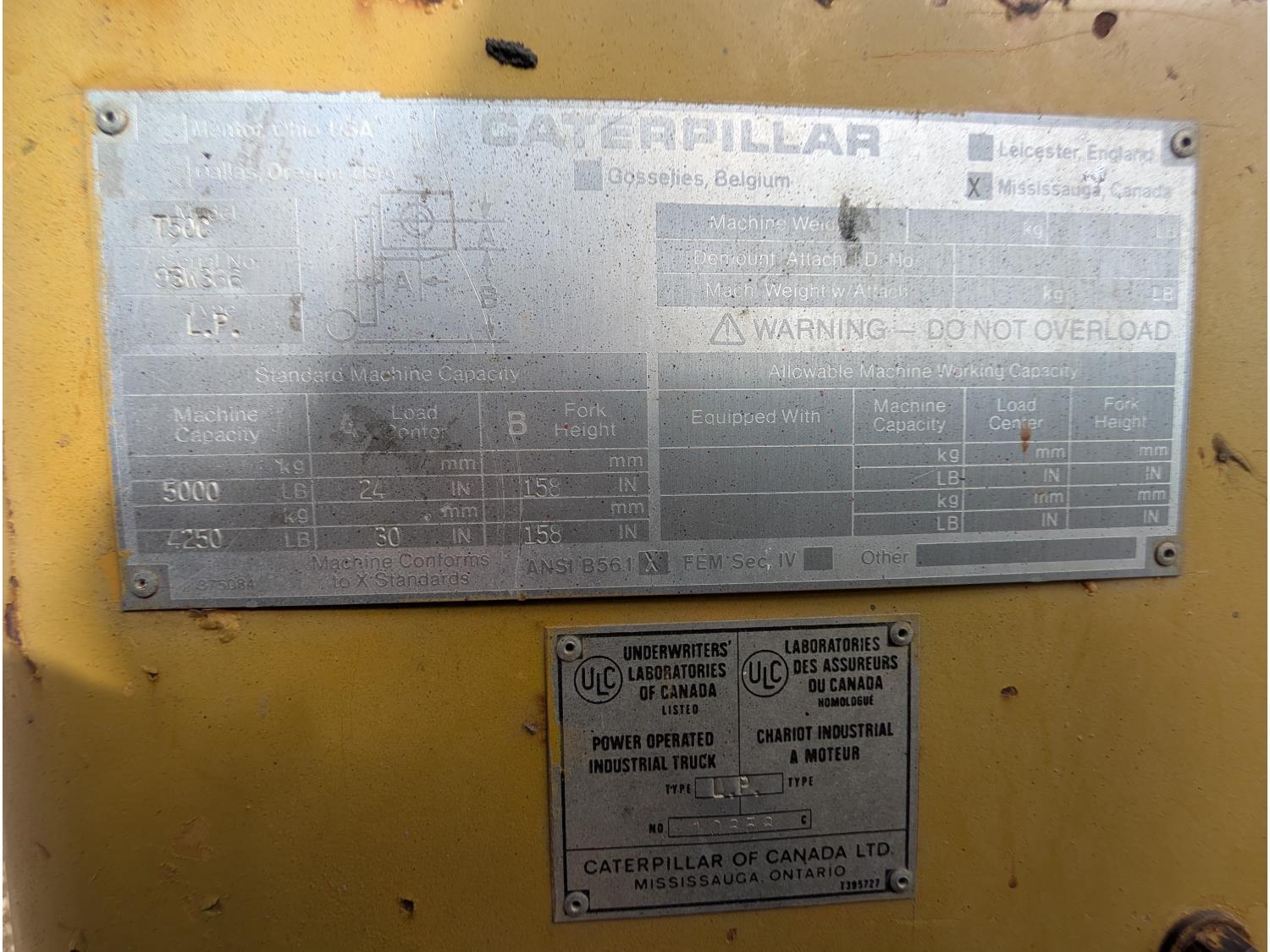 316 1981 Caterpillar T50C 5000 lb Forklift